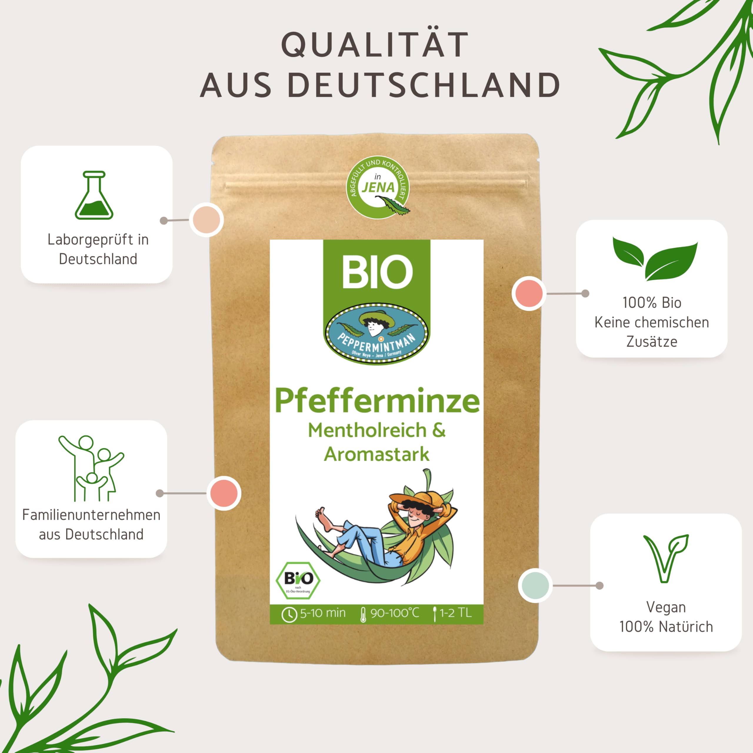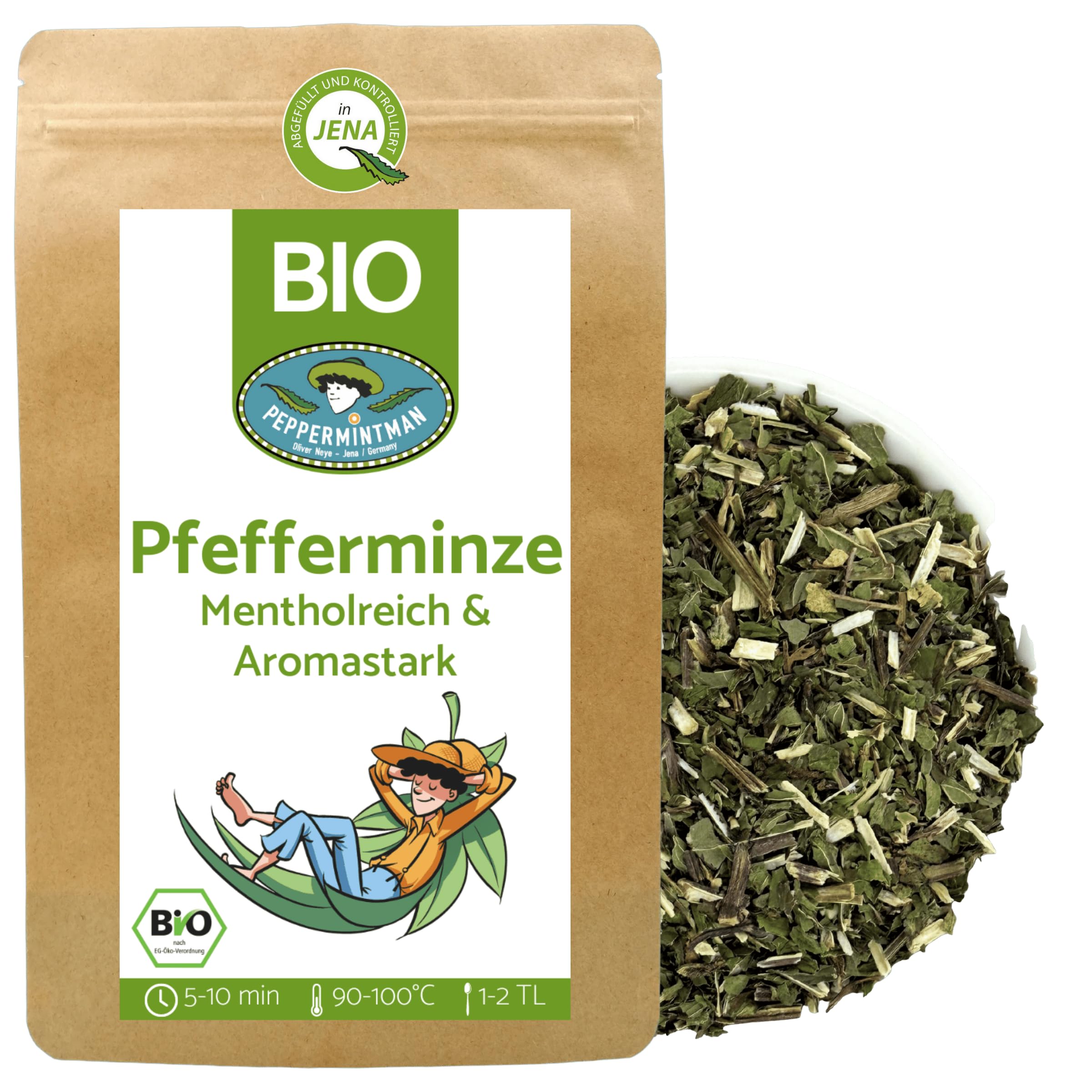Bio Pfefferminztee 250g - mentholreich & aromastark - europäischer Anbau vom Familienbetrieb - lose und getrocknet - PEPPERMINTMAN