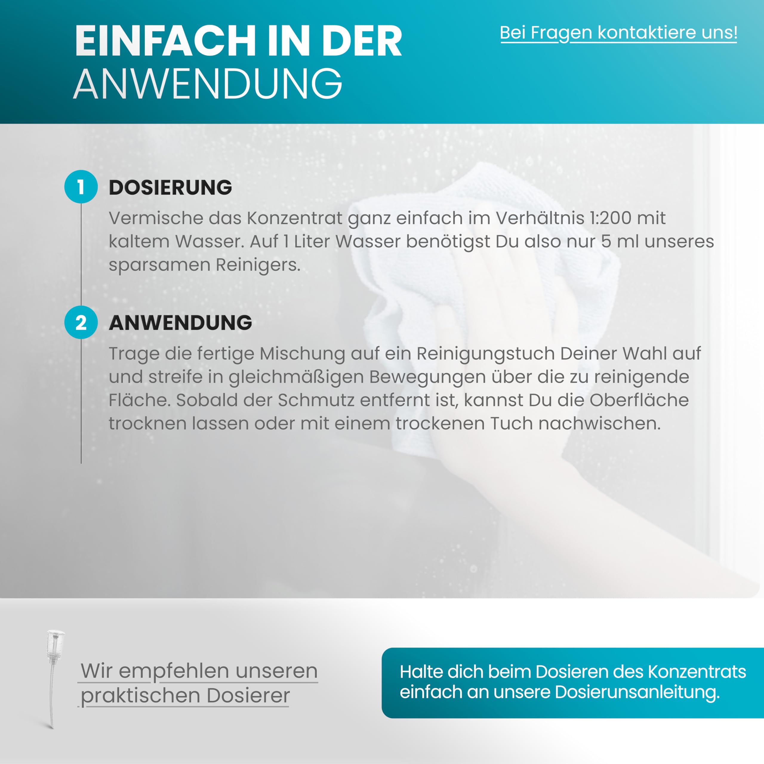 BiOHY Profi Fensterreiniger (6 x 1 Liter) + Dosierer | Glasreiniger Konzentrat | für Fenstersauger geeignet | streifenfreie Reinigung von Glas-, Fenster- & Spiegelflächen | ideal für Haushalt & Auto