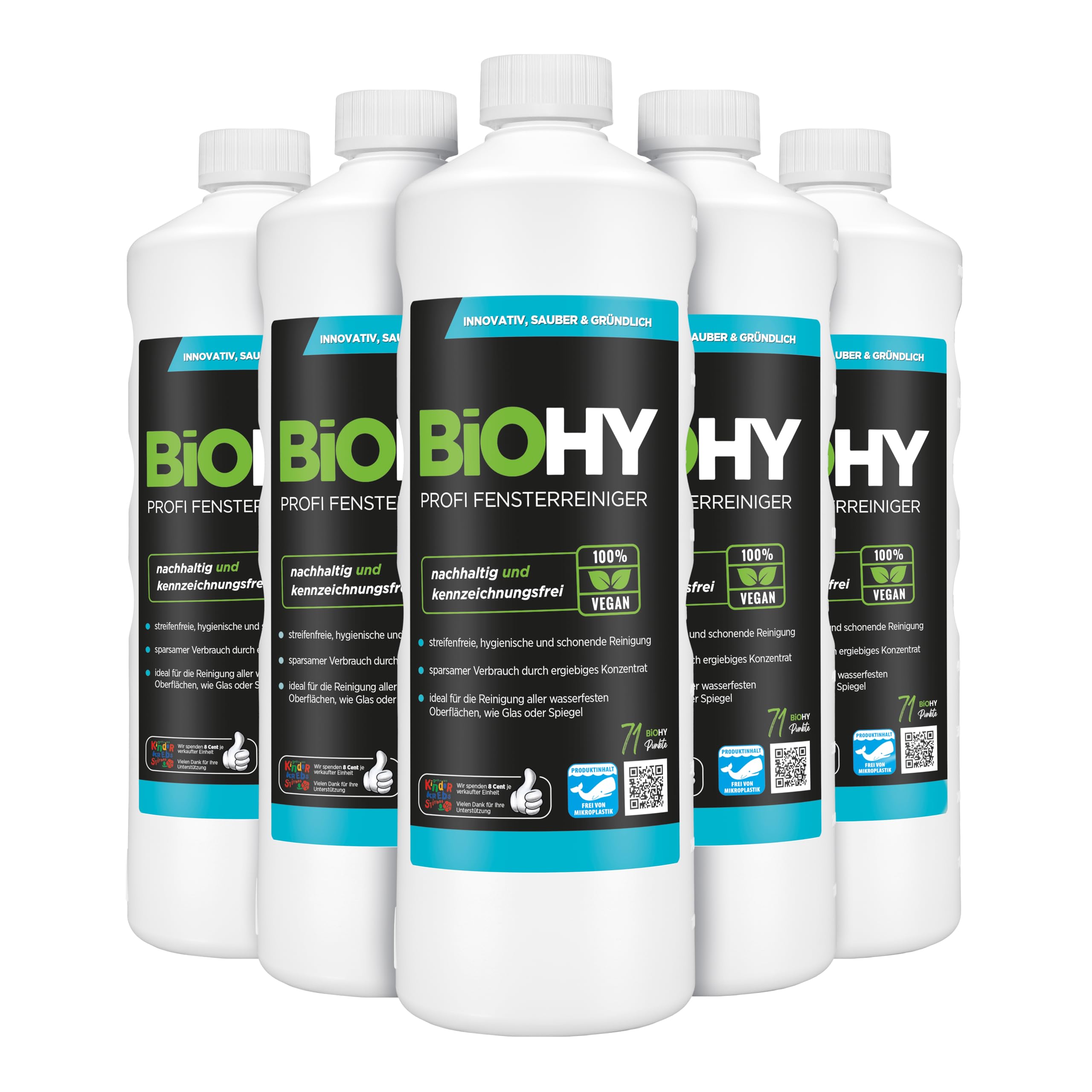 Unser 100% veganer BiOHY Profi-Fensterreiniger ist deshalb so beliebt, weil er nicht nur einen streifenfreien Glanz auf allen Oberflächen garantiert, sondern dazu auch noch äusserst sparsam im Verbrauch ist. Das Konzentrat ist sehr hautfreundlich und eignet sich u. a. für Glas, Spiegelflächen und Chrom.