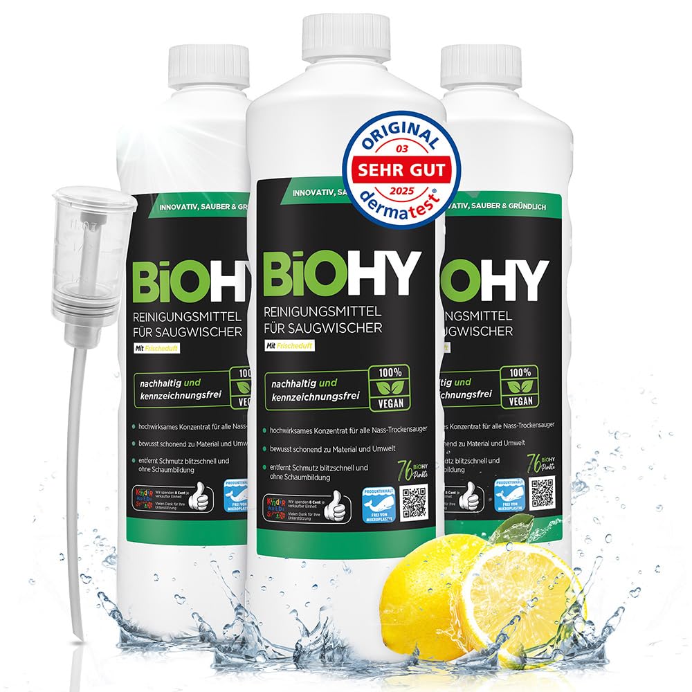 • ???? NATÜRLICH SAUBER: Das BiOHY Reinigungsmittel für Saugwischer entfernt Schmutz, Fett & Alltagsspuren mühelos und sorgt für streifenfreie Frische auf allen Hartböden. Die schaumarme Profi-Formel eignet sich ideal für alle Saugwischer, Nass-Trockensauger & Bodenreiniger.