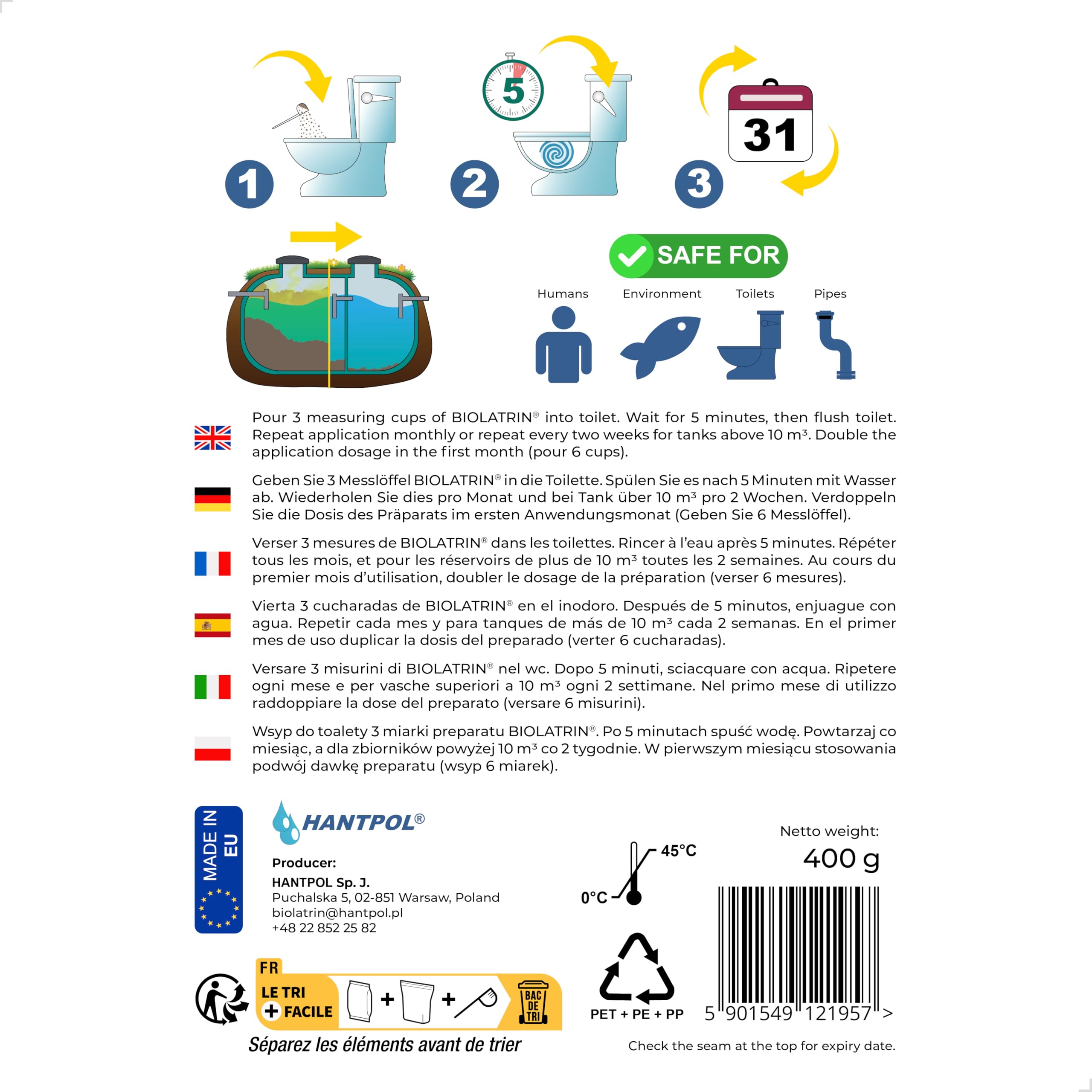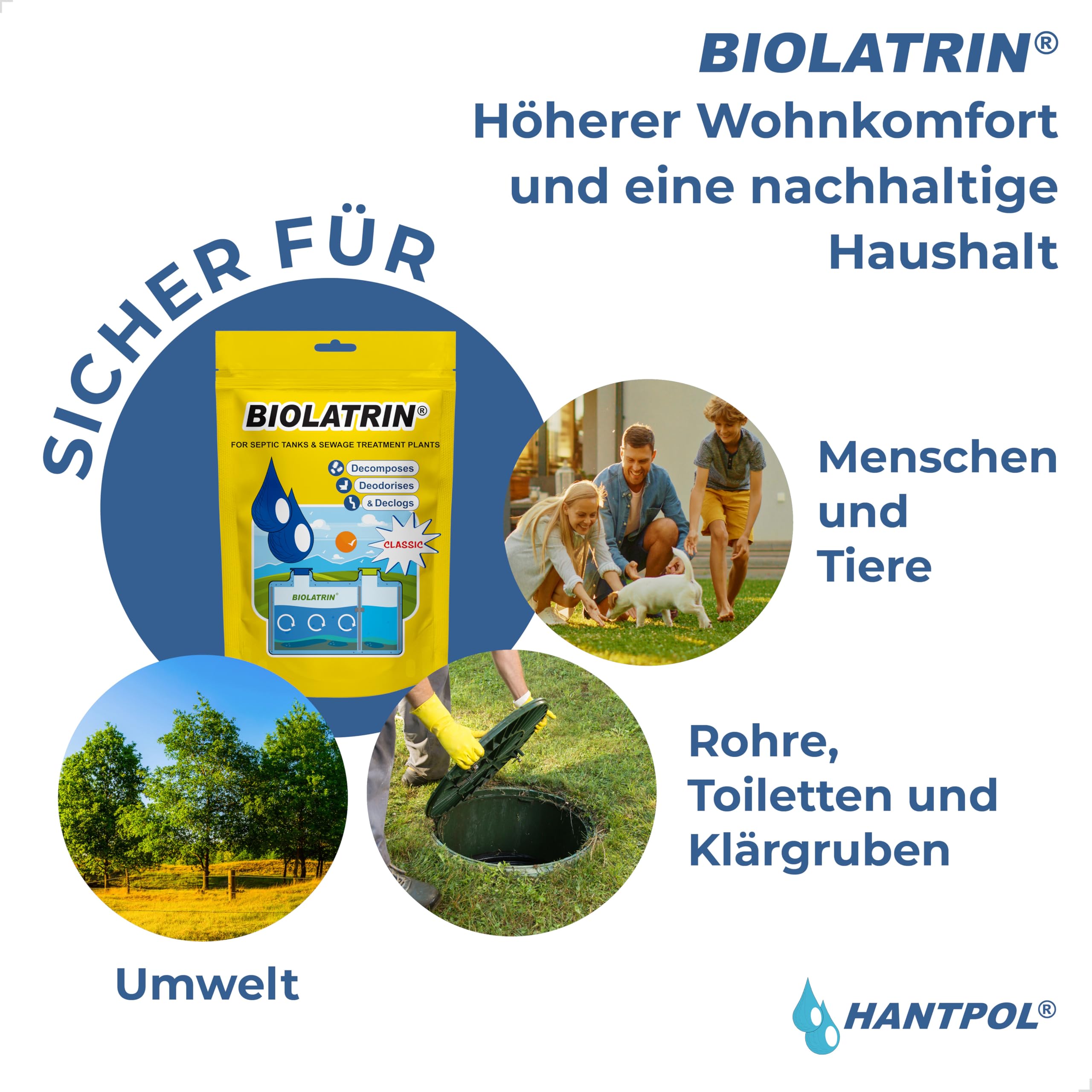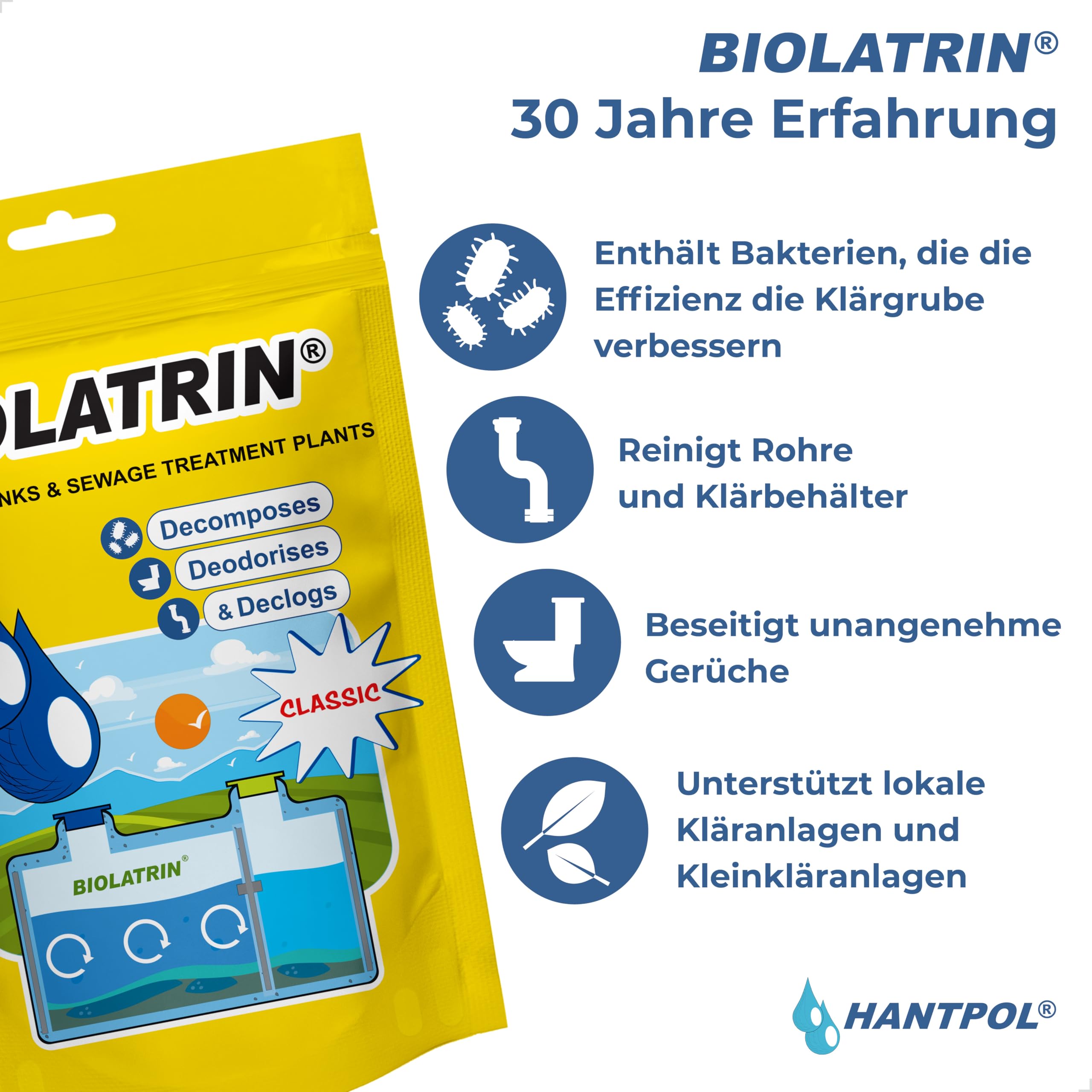 - ✔ BIOLATRIN von HANTPOL: Effektive Abwasserbehandlung mit natürlichen Mikroorganismen. 30 Jahre Erfahrung in schnellem Abbau organischer Stoffe, Geruchsbeseitigung und Beitrag zum Umweltschutz.