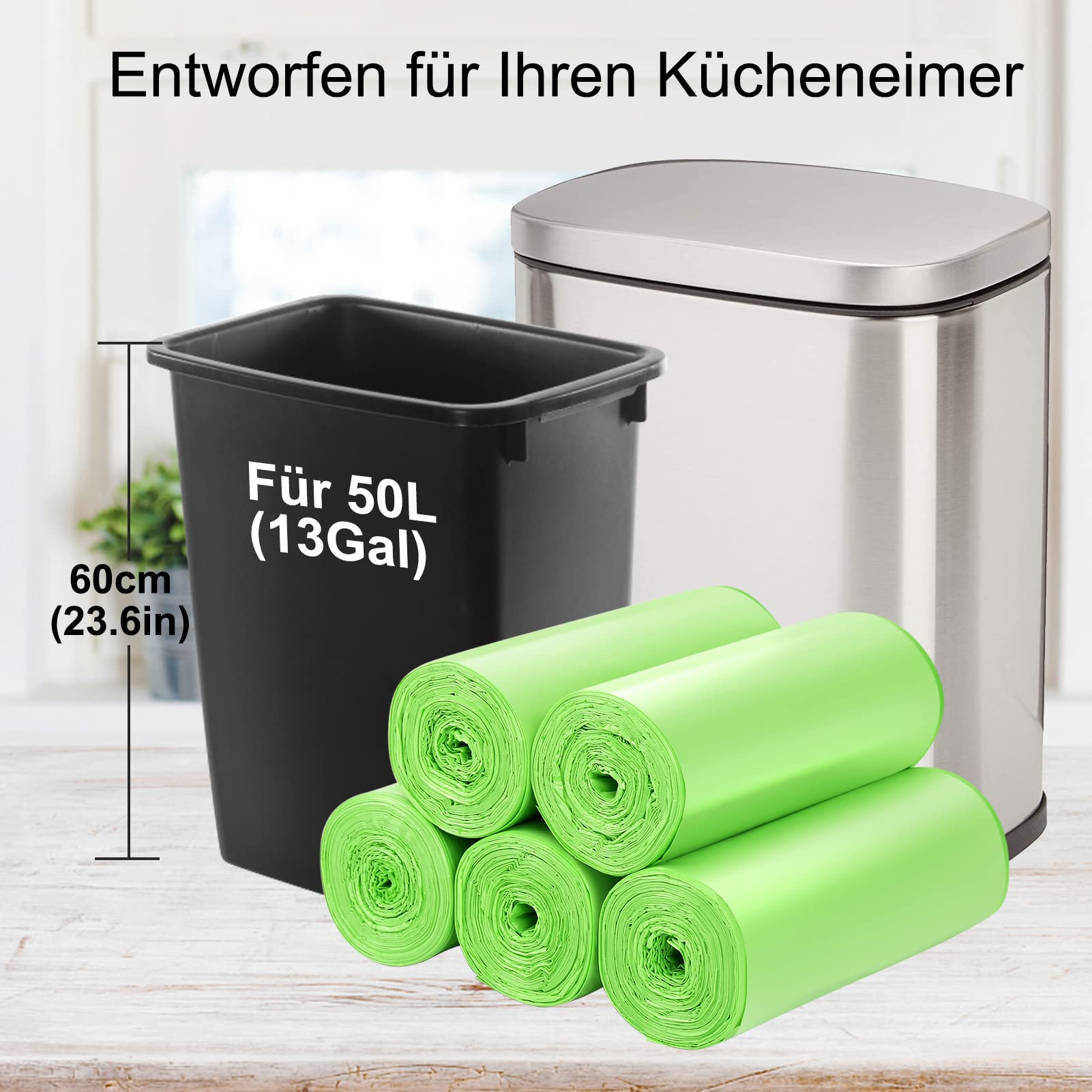 Müllsäcke kompostierbare müllbeutel-50pcs biomülltüten-50L: Aievrgad 13 gallon rubbish bag - 100% recycled, thick, biodegradable, compostable, for kitchen/home/garden green