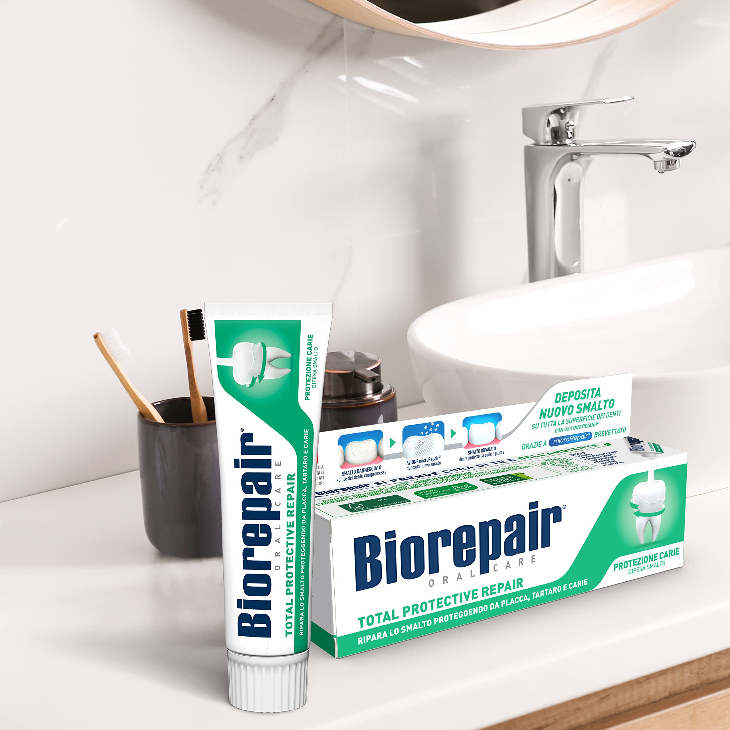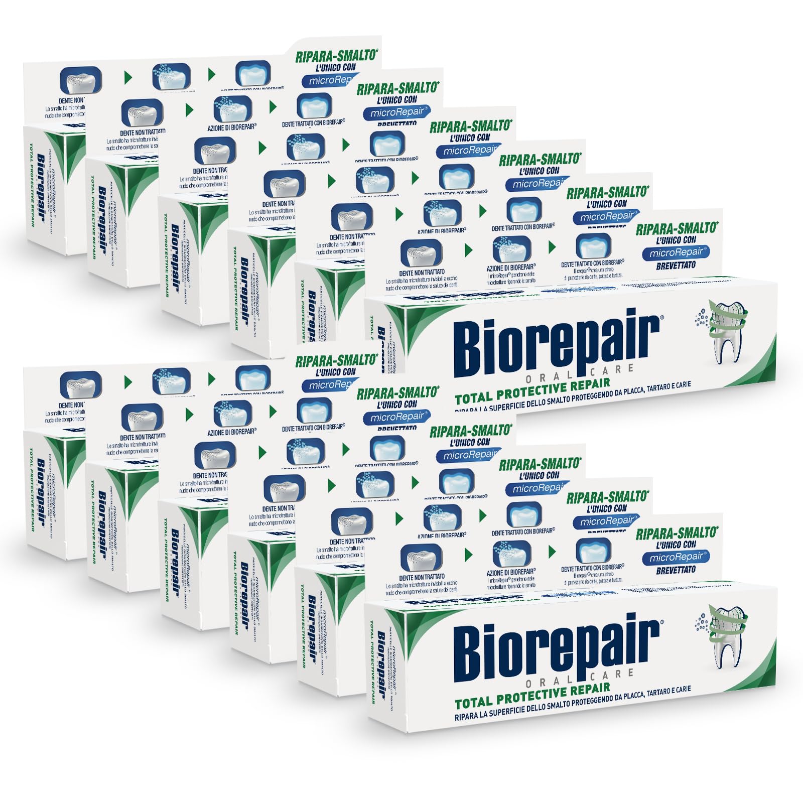 Biorepair, Total Protective Repair Zahnpasta, 12 Packungen à 60 ml, repariert den Nagellack, schützt vor Plaque, Zahnstein und Karies, repariert Nagellack, hält den Atem frisch, Zahnpasta ohne Fluorid