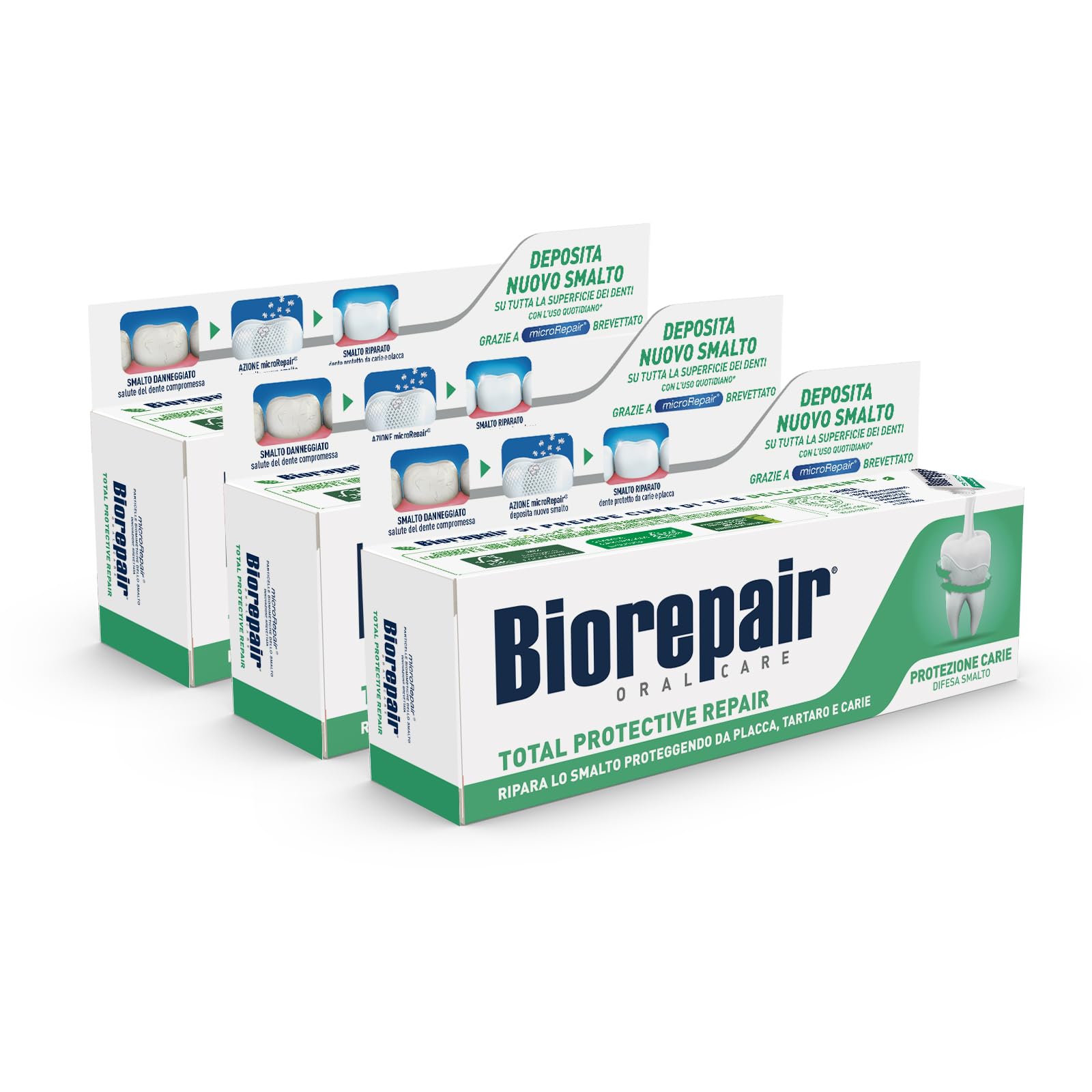 Biorepair, Total Protective Repair Zahnpasta, repariert Nagellack, Antifouling, Anti-Plaque, frischer Atem, ohne Fluor, 3 Packungen à 75 ml