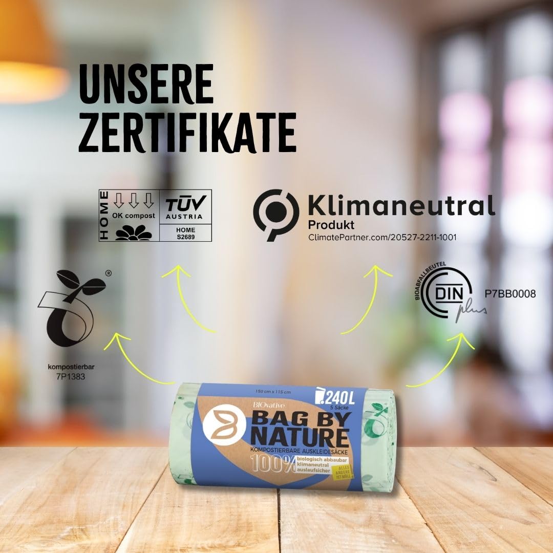 BIOvative PRODUCTS 240L Biomüllsäcke für Biotonne | 15 Müllsäcke, kompostierbar, Made in Germany | Reißfeste Bio-Abfallsäcke, klimaneutralisiert & vegan