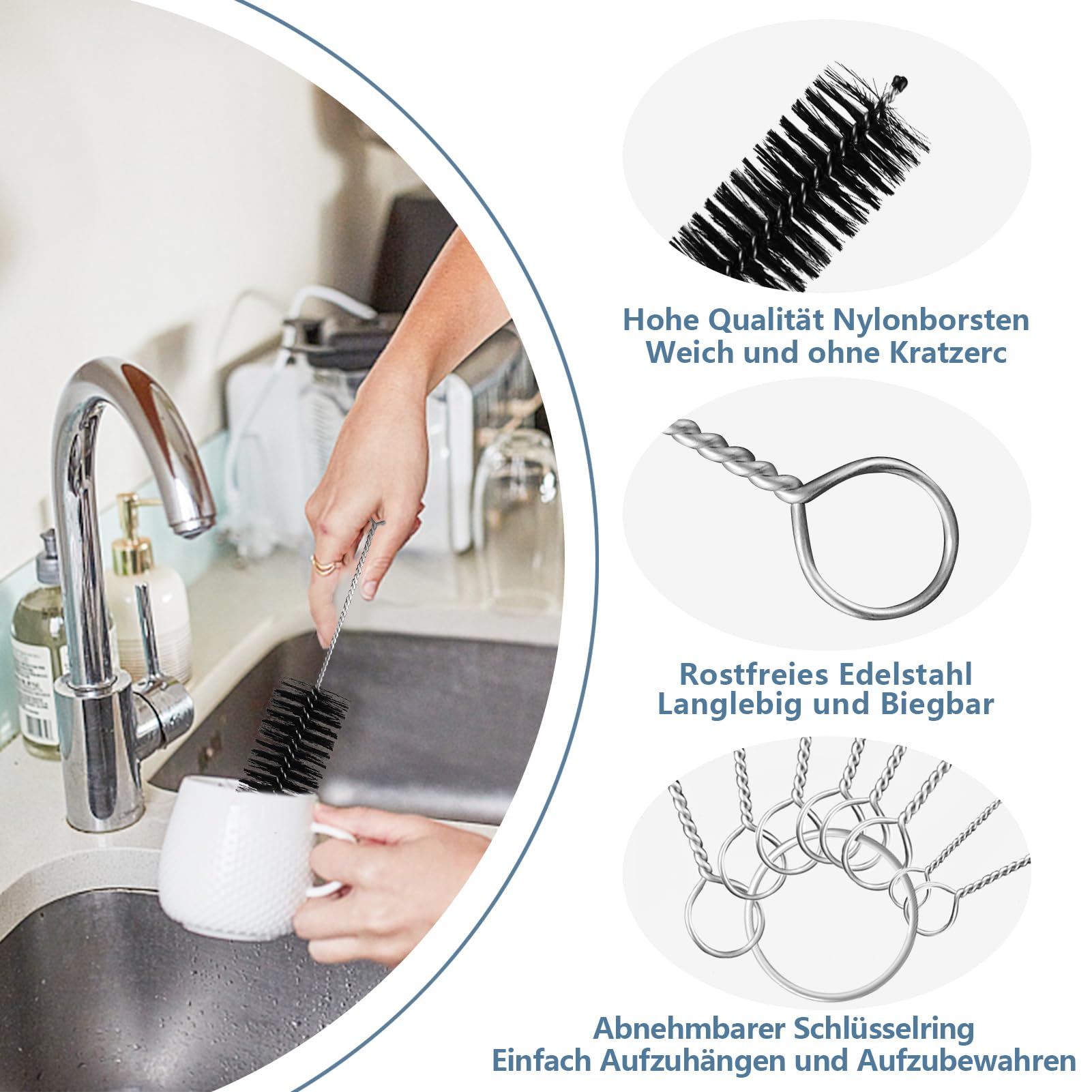 • Mehrere Grössen: Das Paket enthält 8 kleine Reinigungsbürsten, 11" dünne Flaschenbürste; 7.9" Strohhalm Bürste; 3.5" Detailbürste. Verschiedene Grössen und reichliche Mengen können Sie täglichen Gebrauch und Ersatz treffen