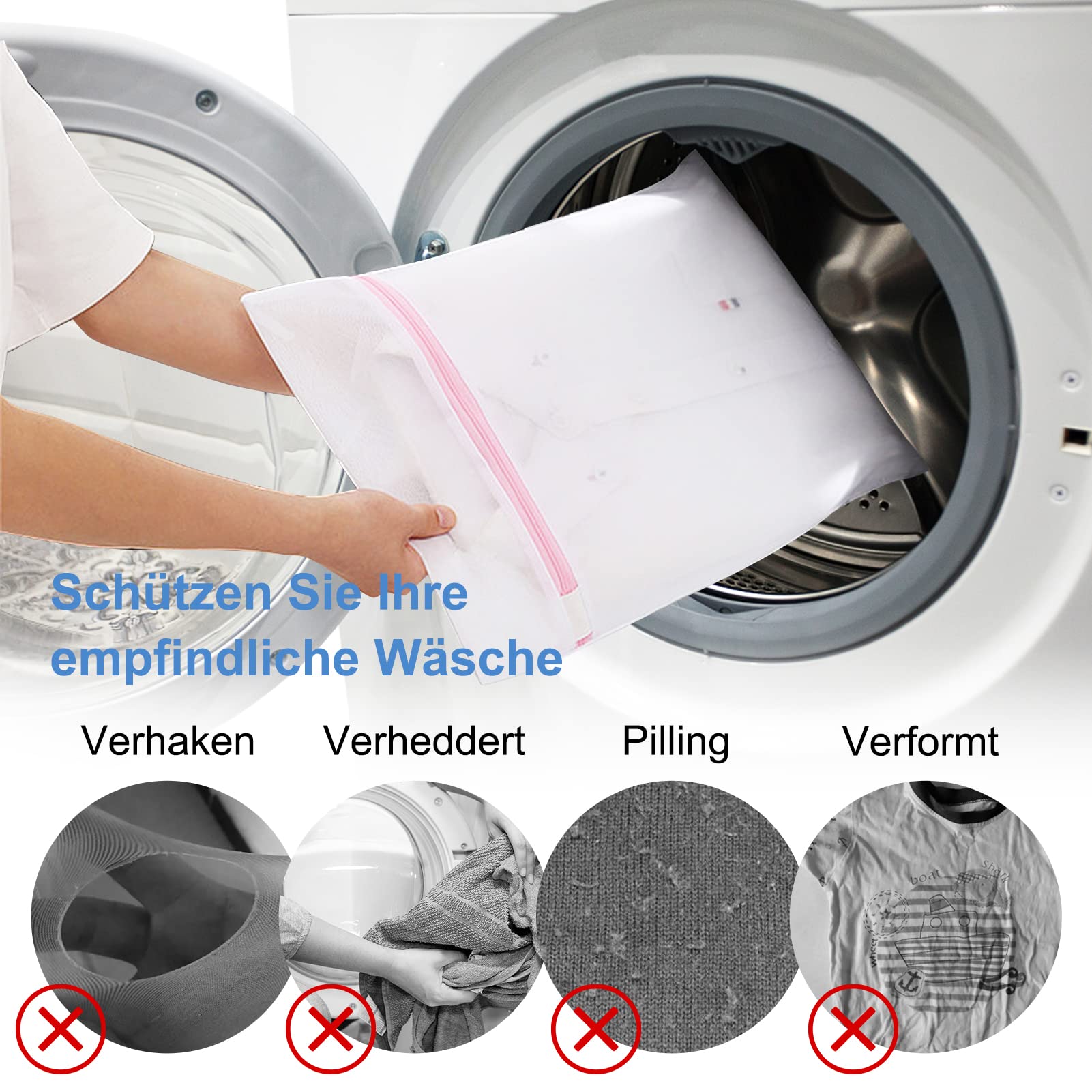 4. Um Beschädigungen des Netzbeutels zu vermeiden, legen Sie keine Kleidung mit scharfem Zubehör zur Reinigung in den Beutel