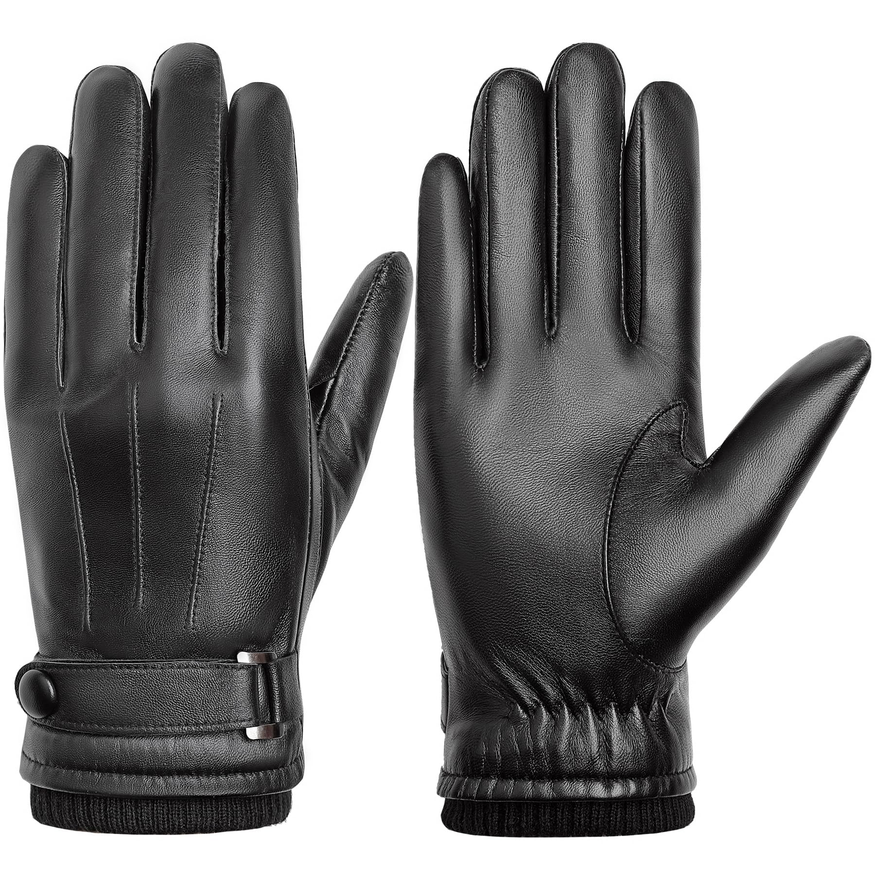 BISON DENIM Herren Thermo Winterhandschuhe Echtleder Handschuhe Touchscreen Lederhandschuhe Warme mit Fleece gefütterte Handschuhe Winddicht Wasserdicht