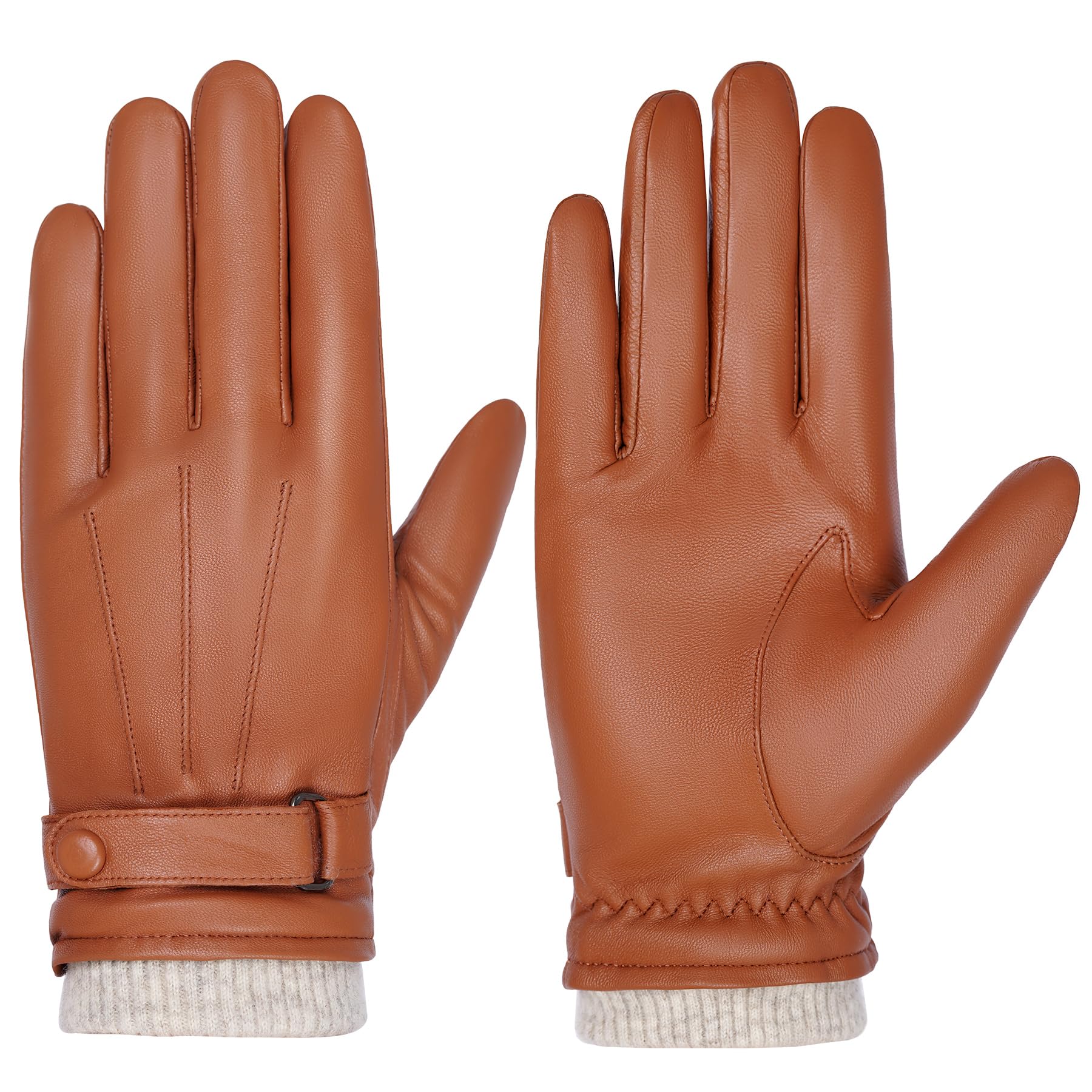 - 2. Warmes fleece futter: Das Innenfutter der Lederhandschuhe besteht aus hochwertigem fleece, das sehr weich und bequem ist, hält Sie Hände warm und bequem an kalten Tagen. Diese Winterhandschuhe werden Ihr perfektes Outfit und ein tolles Geschenk für Ihre Liebsten sein. nachrichten zu senden und zu tippen, ohne ihre touchscreen-handschuhe auszuziehen.