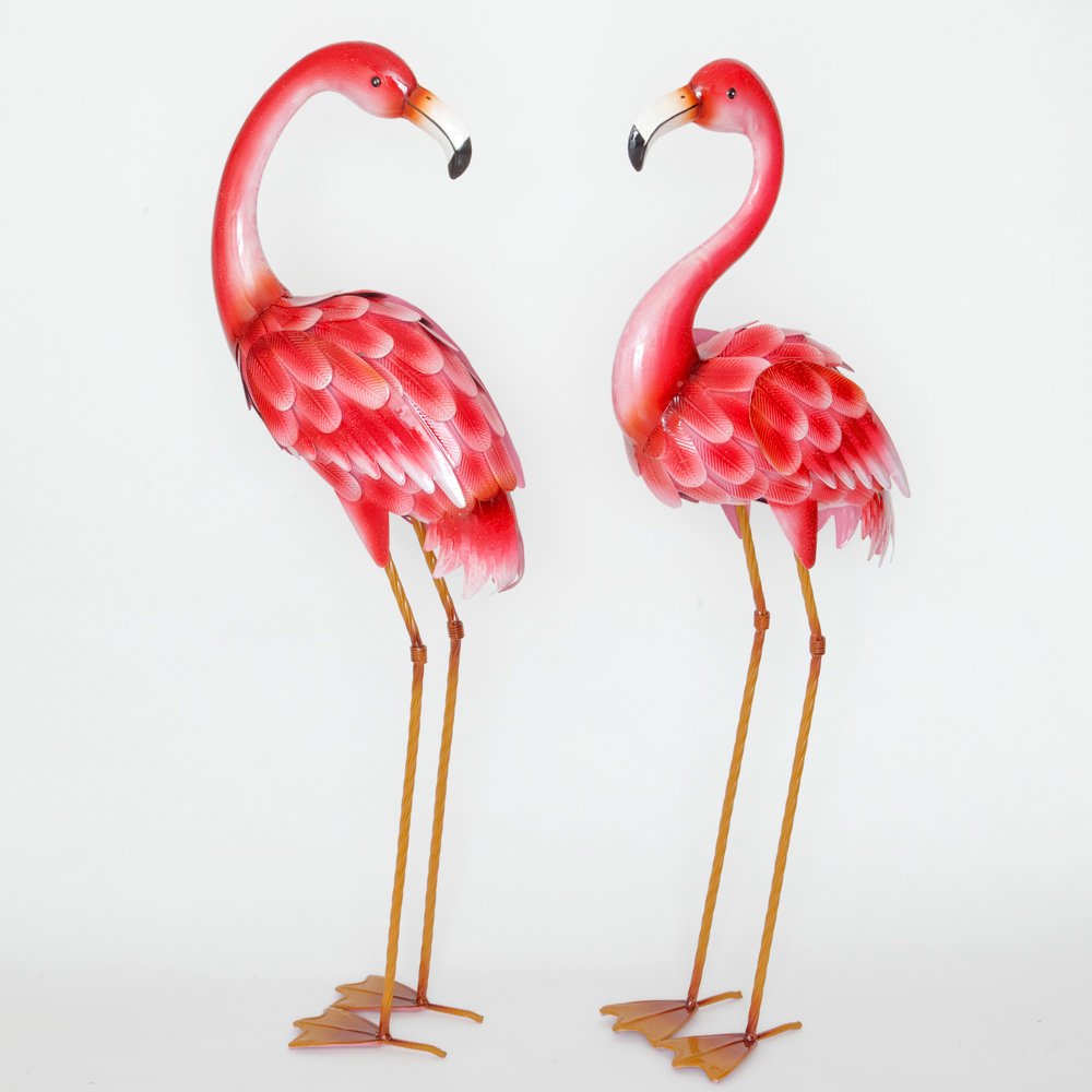 Machen Sie einen bunten Spritzer in Ihrer Veranda, Terrasse oder Garten mit unseren lebensgrossen, extravaganten Paar Flamingo-Garten-Statuen. Ihre Freunde und Familie werden es lieben, von diesem auffälligen Paar begrüsst zu werden. Diese hohen Flamingos aus Metall sind aus robustem Stahl gefertigt und jeder hat eine wetterfeste Hochglanz-Emaillierung, um den Elementen standzuhalten. Sie schaffen dramatische Blickfang in Ihrem Hof oder Zuhause. Unsere Outdoor-Flamingo-Skulpturen haben auf jeder Seite doppelt gewebte Füsse, damit sie stabil auf fast jeder Oberfläche stehen können. Sie sind handbemalt mit einer einzigartigen Kunstveredelung, um ihnen ein realistisches Aussehen zu verleihen. Bits and Pieces Gartenstatuen und Skulpturen werden geschaffen, um Ihre Landschaft, Ihren Garten oder Innenräume künstlerisch zu betonen. Das Set enthält zwei Flamingo-Statuen, die jeweils ca. 80 cm hoch x 31 cm tief x 15 cm breit sind.
