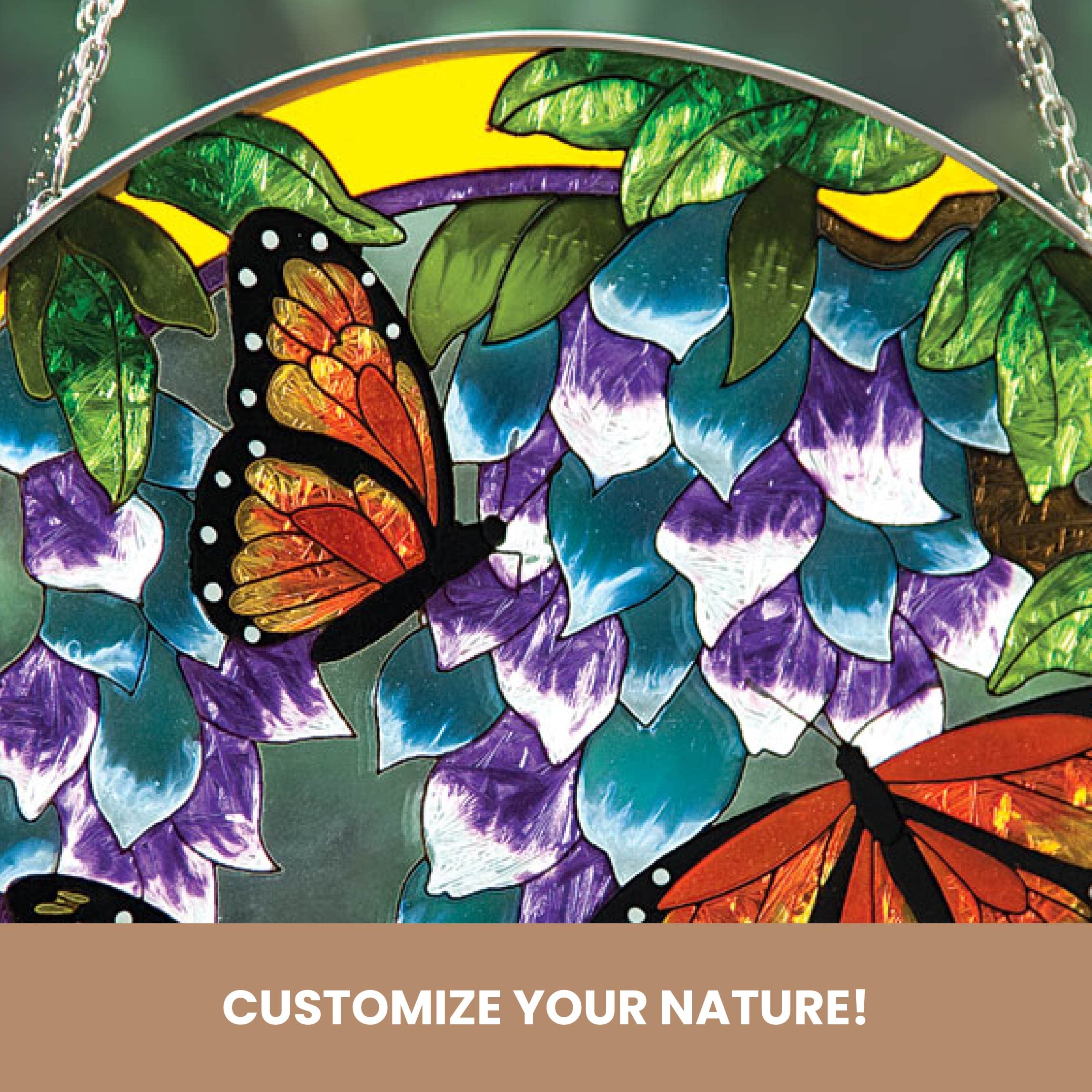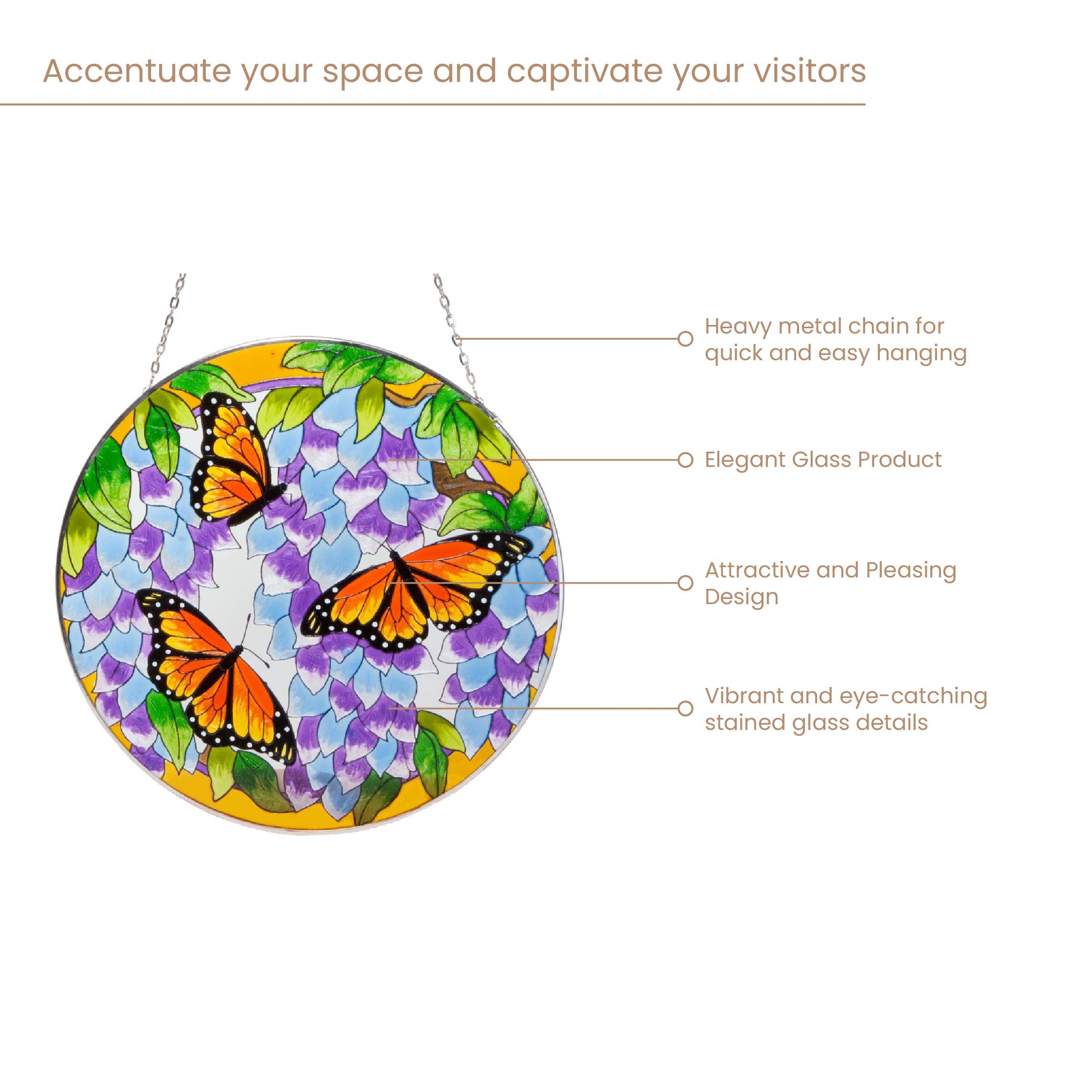 Bits and Pieces - Monarchfalter Schmetterling Sonnenfänger - Handbemaltes Kunstglas - Fenster oder Terrassendeko - 25cm Durchmesser - Glasbild, Fensterbild