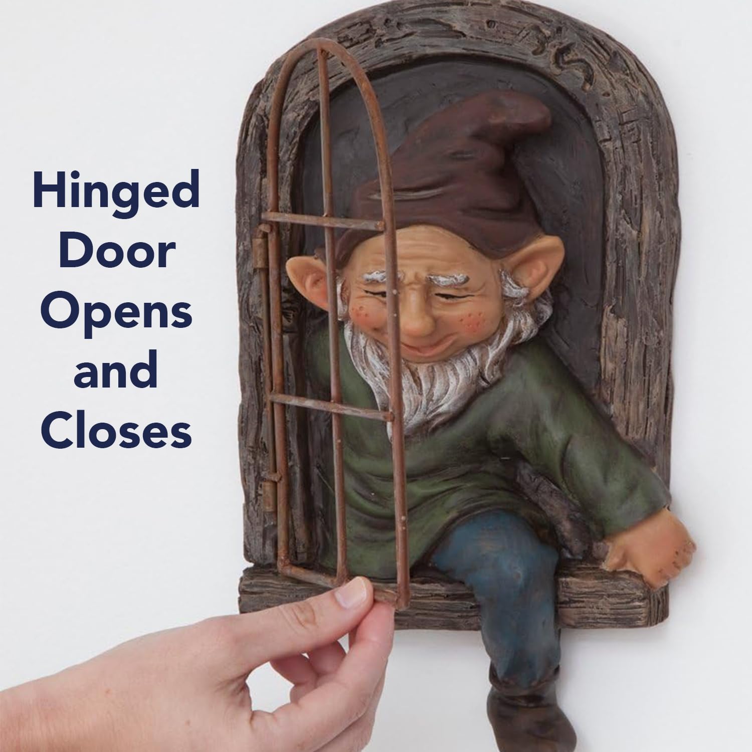 Wenn man diesen netten Zwerg an einem Baum oder Zaun hängt, sieht es aus als ob er aus einem Fenster klettert. Die Illusion wird komplett durch das bewegbare Metallfenster. Aus wetterfestem und bruchsicheren Kunstharz, mit liebevoll bemaltem Details. Der Zwerg hat eine Schlüssellochbefestigung auf der Rückseite, man kann ihm mit einem Nagel oder einer Schraube fast überall aufhängen. Masse: 31cm hoch, 19cm breit, 10cm tief.