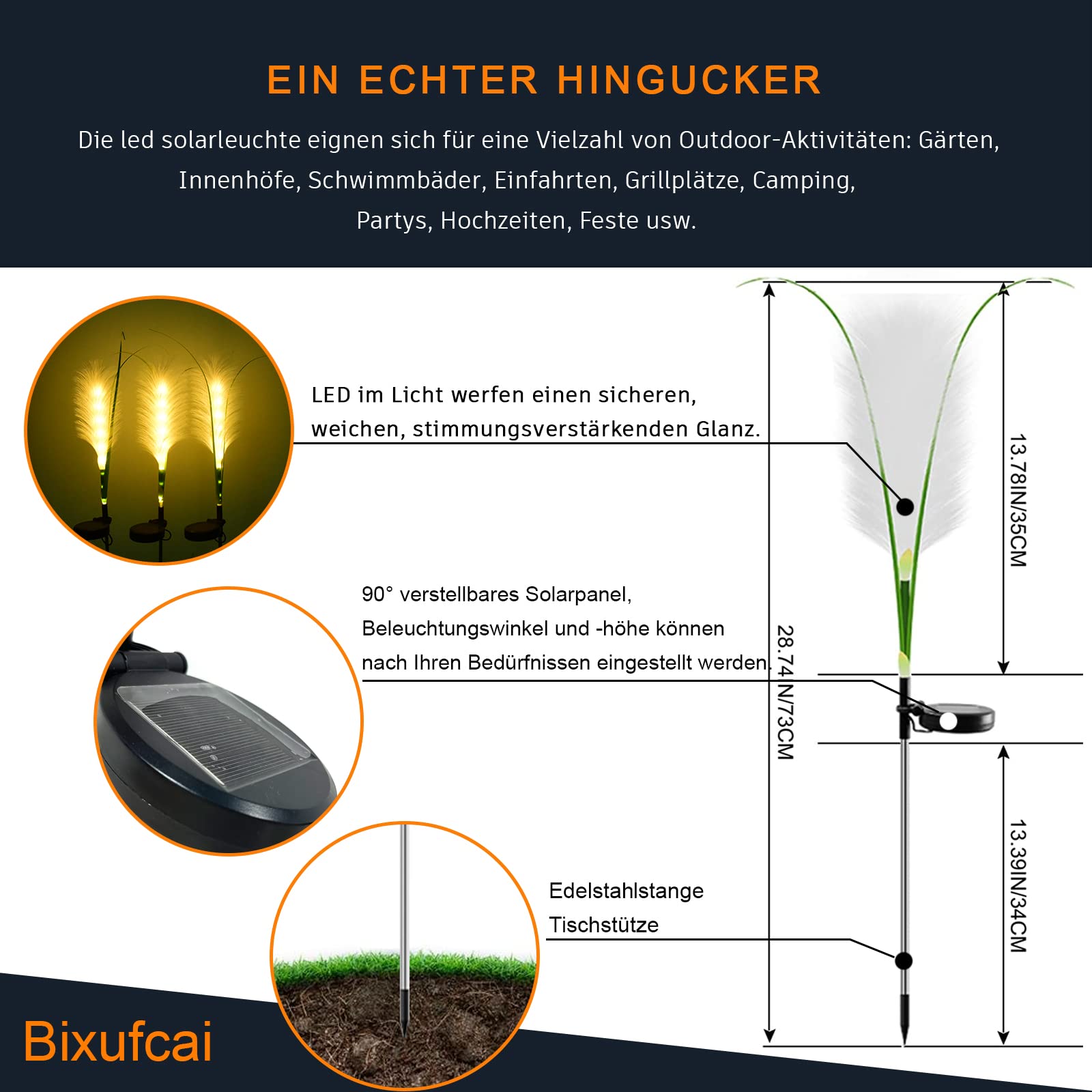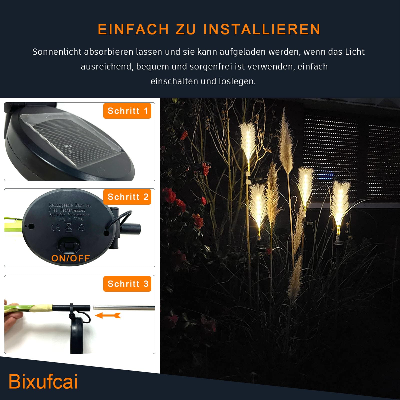Bixufcai Solarlampen für Aussen 4 Stück Solar Gartenleuchten Schilf Solarleuchten LED Dekorative Licht für Draussen IP65 Wasserdichte für Rasen Gehweg Balkon Terrassen Landschaft Wegbeleuchtung