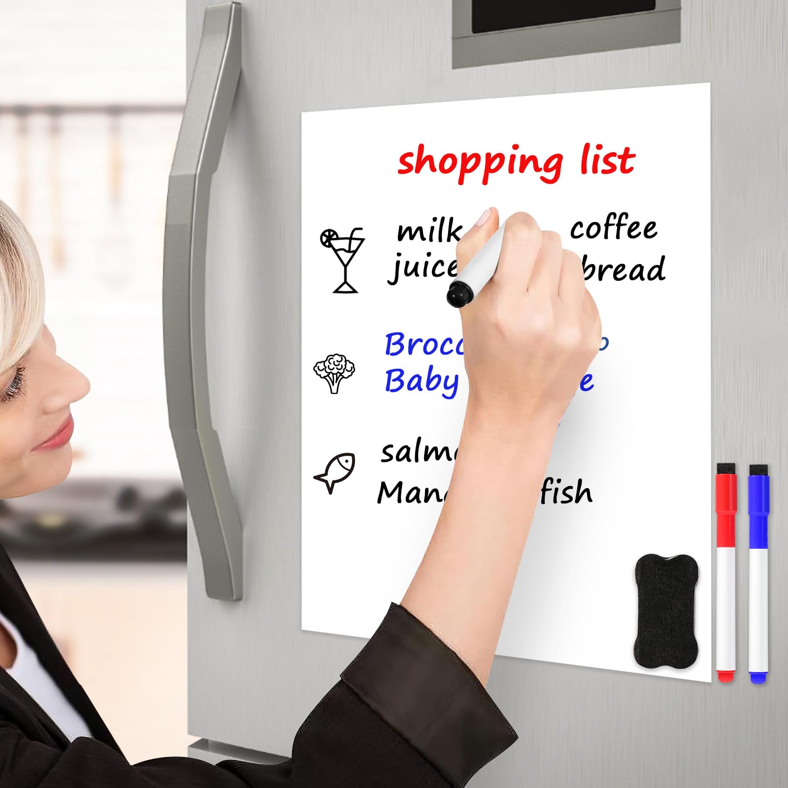 Blendura A3 Magnetische Whiteboard-Folie, Magnettafel Kühlschrank mit 5 Whiteboard-Stiften, Schwamm, DIY Magnetisches Whiteboard für Schule, Büro und Zuhause