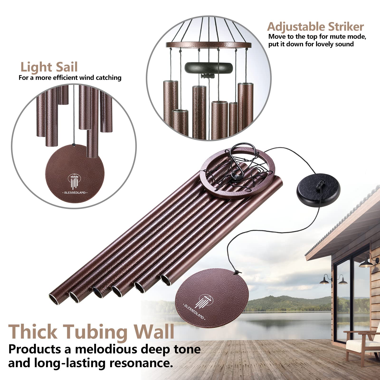 BLESSEDLAND Premium Windspiel 41“, Grosser tiefer Ton,6 Metal Tubes, Outdoor-Dekor für Garten, Hof, Patio und Haus(Kupfervene)