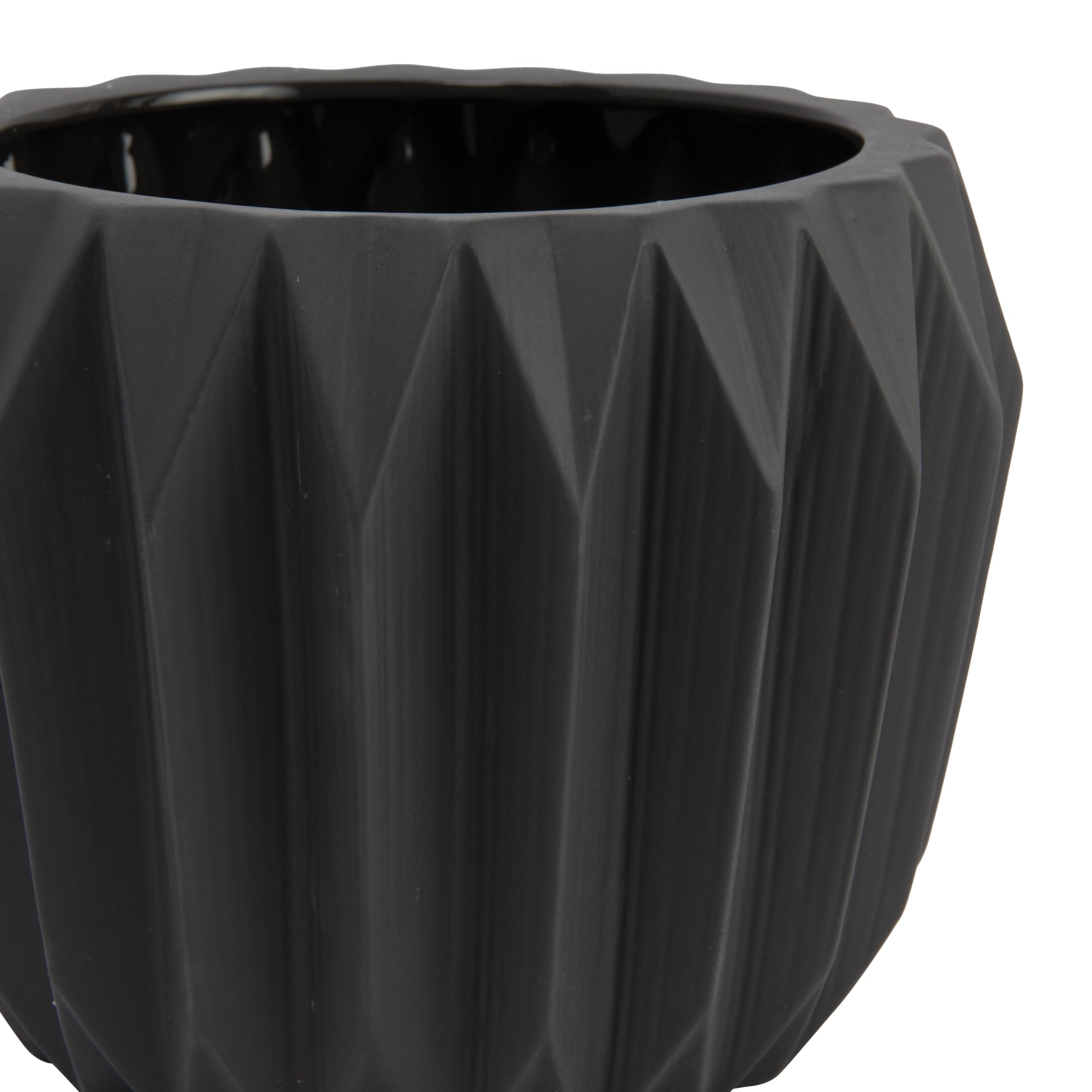 Der Blumentopf ist genauso wichtig wie das, was sich darin befindet. Es verleiht den Pflanzen zusätzliche Schönheit und Charme und zeigt gleichzeitig Ihren Sinn für Stil. Er hat ein dunkelgraues geriffeltes Design und ist 15,2 cm hoch.