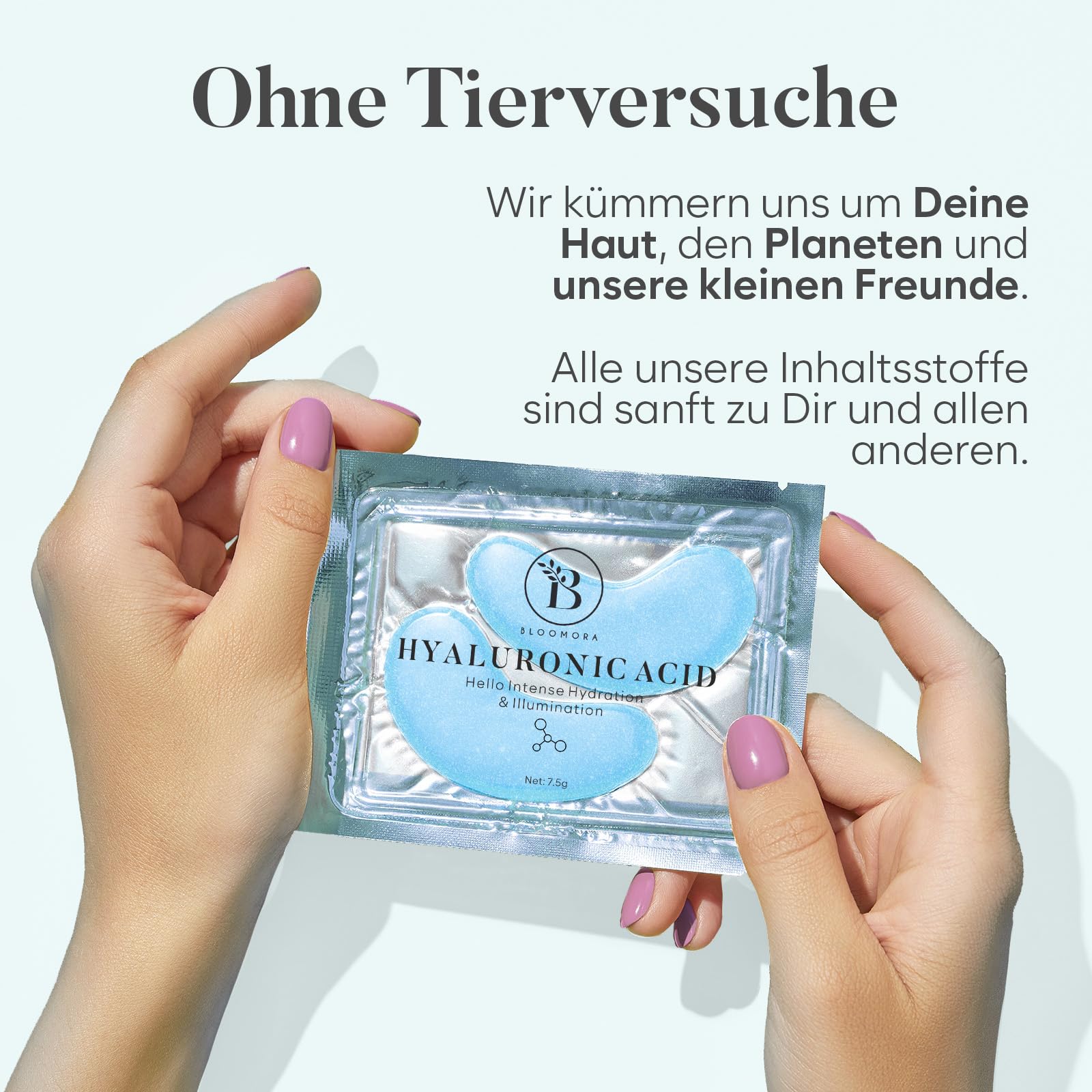 Die BLOOMORA Hyaluronsaeure Augenpads wurden speziell entwickelt, um die empfindliche Augenpartie intensiv zu pflegen und Augenringe, Schwellungen sowie Muedezeichen sichtbar zu reduzieren. Die wirkungsvolle Kombination aus Hyaluronsaeure und Niacinamid versorgt die Haut tiefenwirksam mit Feuchtigkeit und sorgt fuer ein frischeres, glatteres Erscheinungsbild.