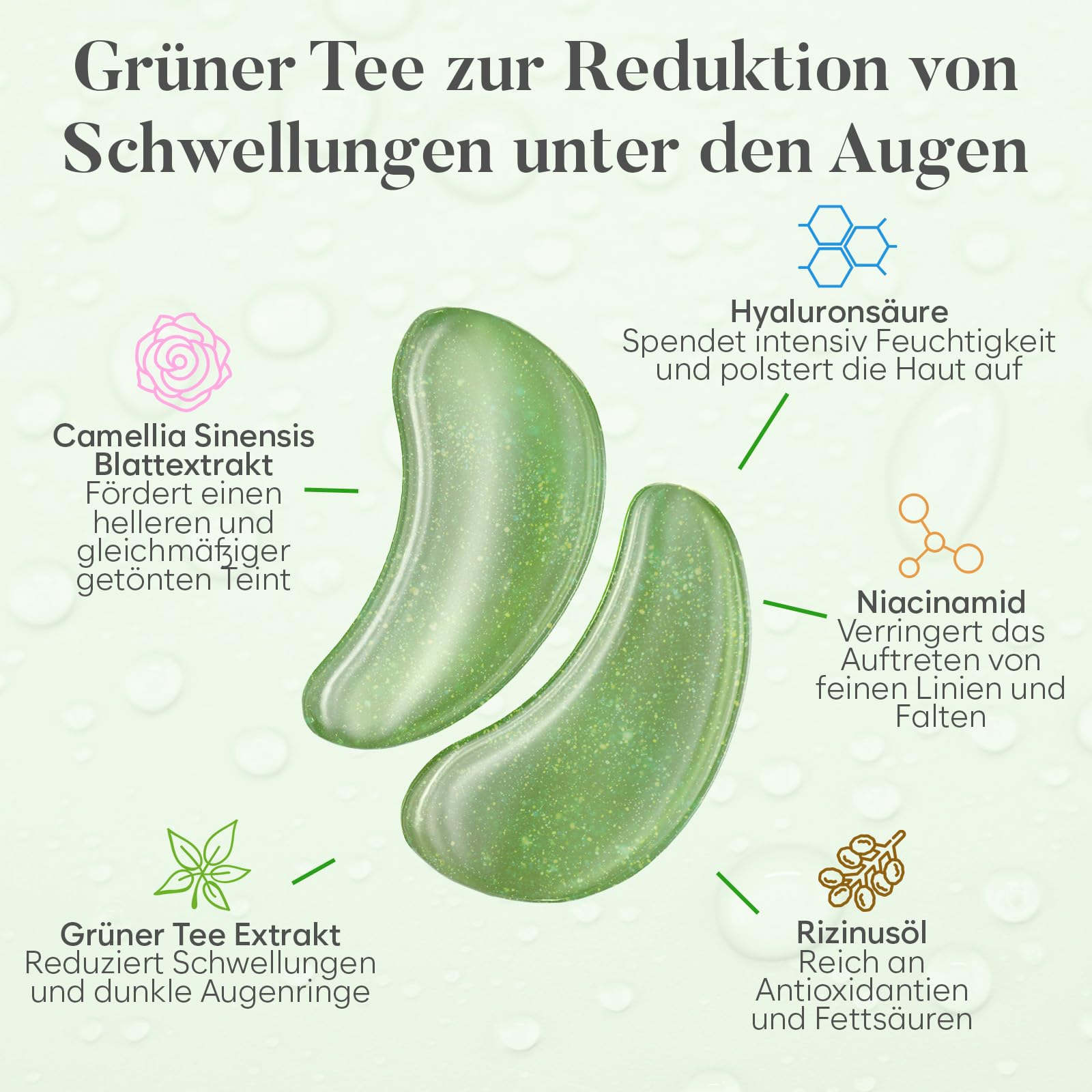 - Wirkstoffe: Gruener Tee, Niacinamid, Hyaluron