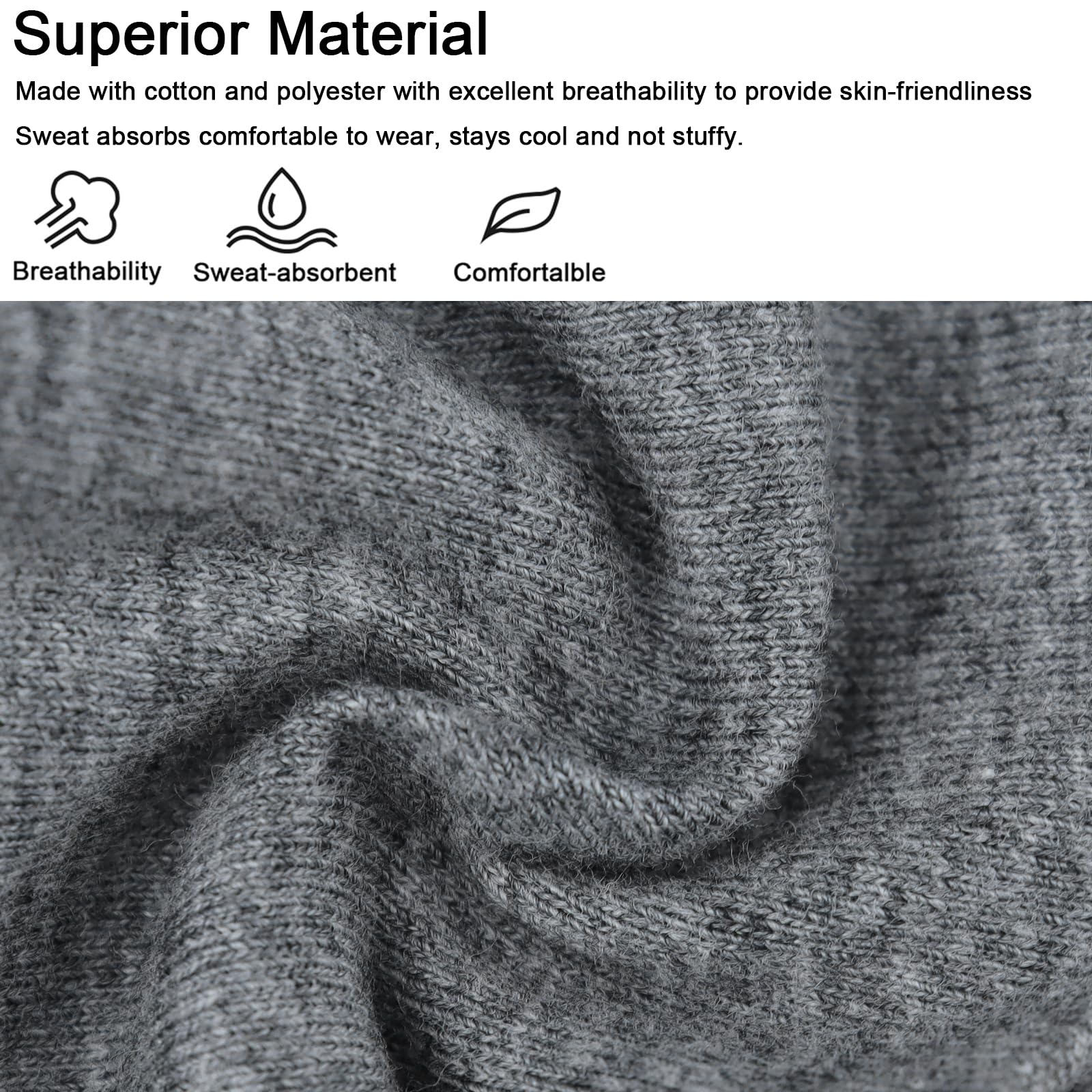 Baumwollmaterial: Baumwolle ist ein Naturfasermaterial mit weichen und atmungsaktiven Eigenschaften. Das Baumwollstirnband schmiegt sich bequem an die Haut des Kopfes an, ohne Beschwerden zu verursachen, und absorbiert gleichzeitig Schweiss, um den Kopf kühl und trocken zu halten.