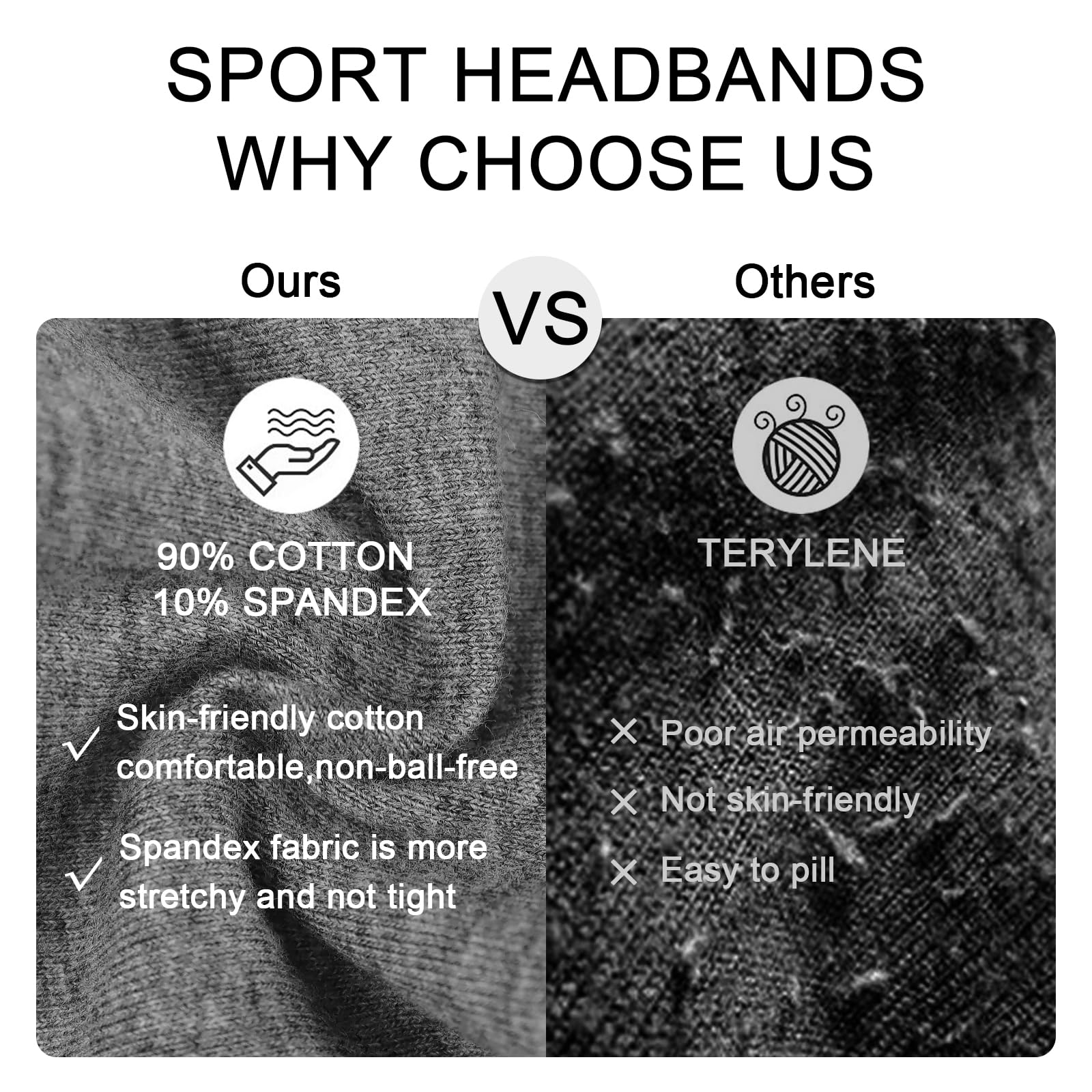 Spandex-Material: Spandex ist ein synthetisches elastisches Fasermaterial mit hervorragenden Elastizitäts- und Dehneigenschaften. Durch den Zusatz von Elasthan verfügt das Headband über eine gute Elastizität und Widerstandsfähigkeit, die eng am Kopf anliegt, Stabilität gewährleistet und nicht leicht abrutscht.