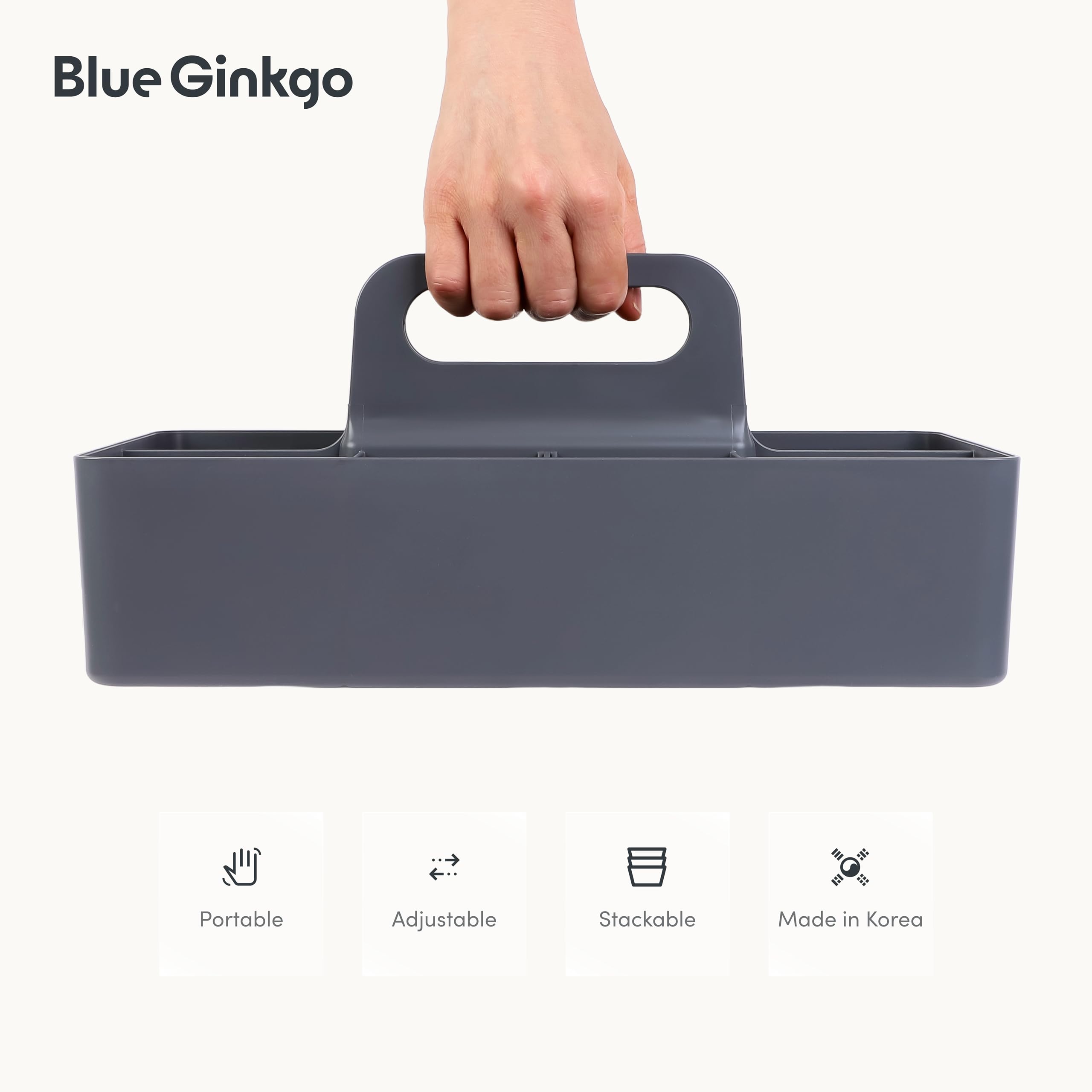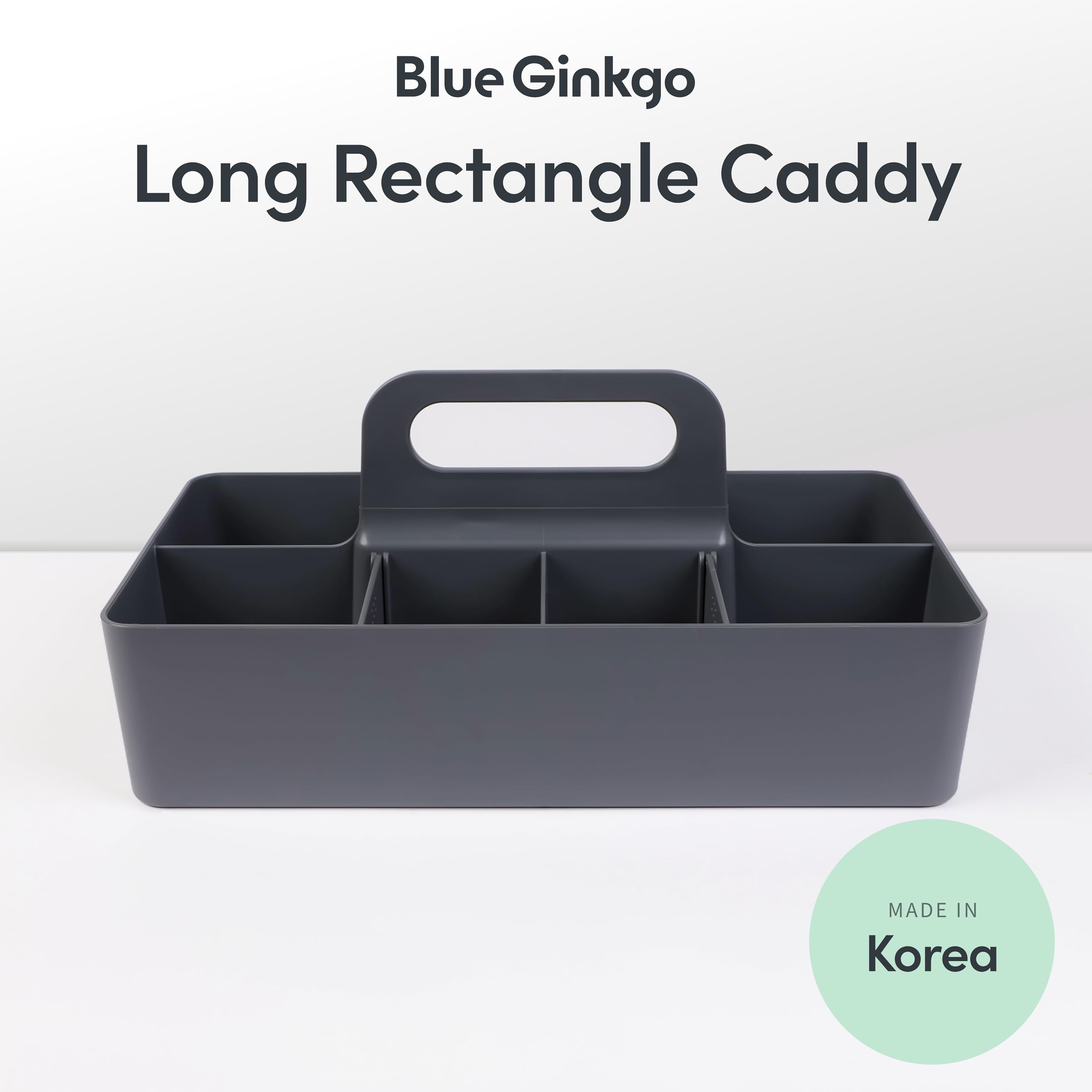 BLUE GINKGO Stapelbarer Organizer-Caddy – Tragbare Aufbewahrung aus Korea für Bad, Büro, Bastel- oder Schulbedarf (Langes Rechteck, Grau)