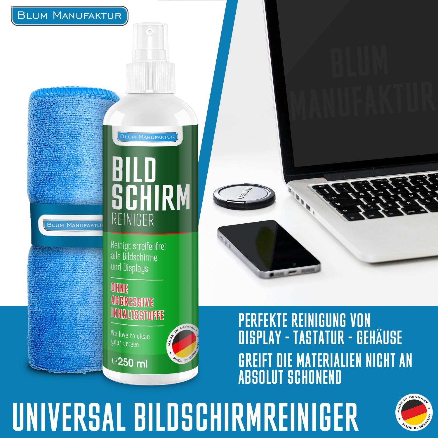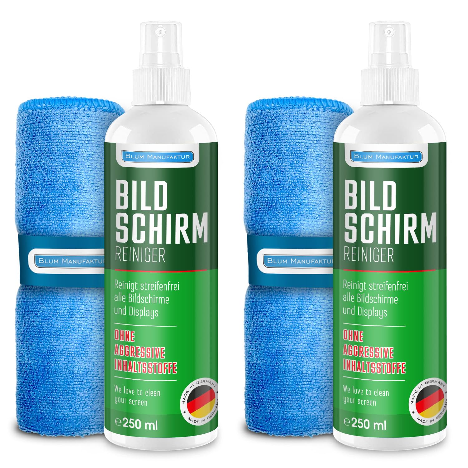 Blum Manufaktur Bildschirmreiniger 2 x 250 ml + 30x30 cm Mikrofasertuch supersoft 365GSM - Screen Cleaner - Display Reiniger