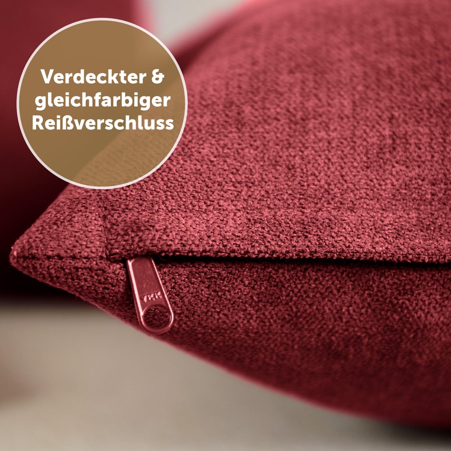 Blumtal 2er Set Kissenbezug 50x50 rot - kuschelige Chenille Kissenbezüge mit verstecktem Reissverschluss, Oekotex Zertifizierte Kissenhülle für Deko-Kissen Sofakissen Polster & Zierkissen