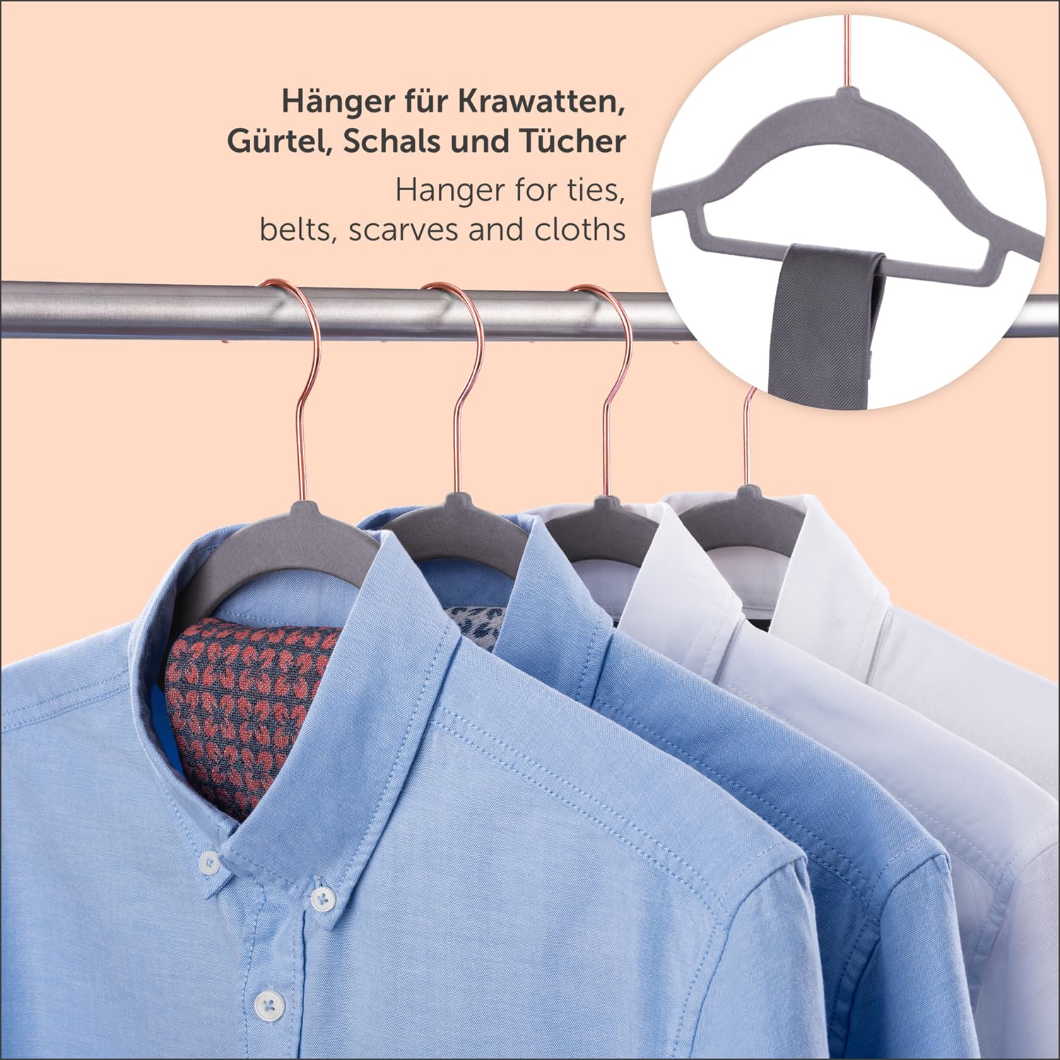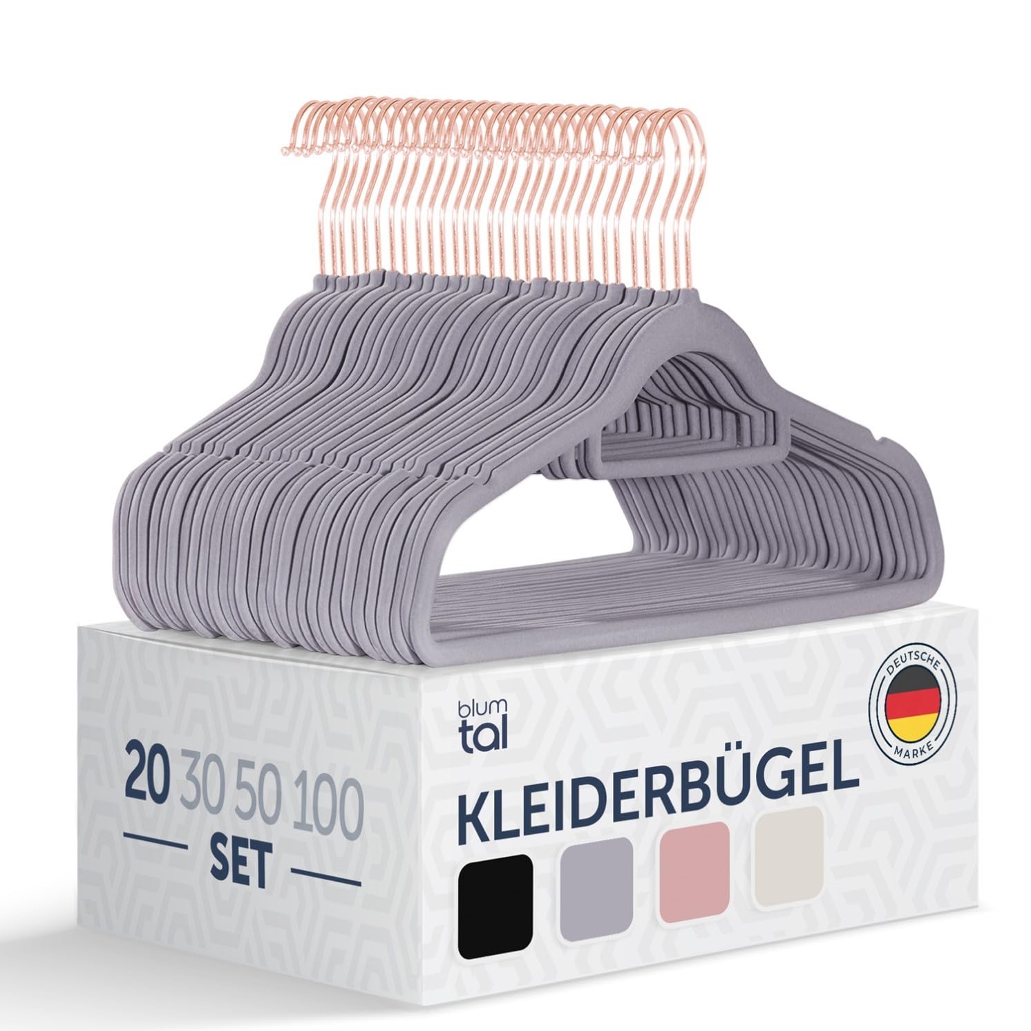 Blumtal Kleiderbügel 20 Stück - Platzsparend und rutschfest - Samtbezug - Grau