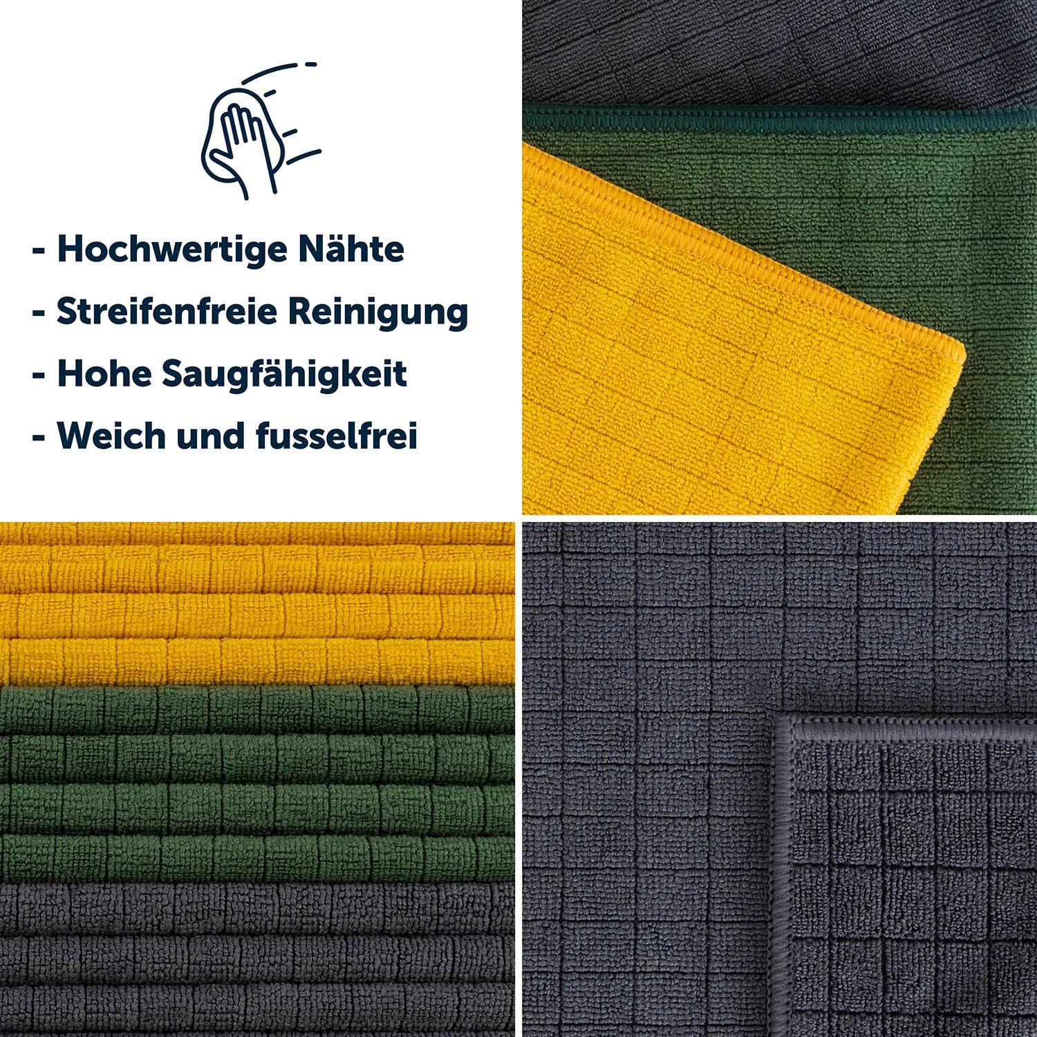 - Überlegene Saugfähigkeit und Trocknungseffizienz: Das XL Microfasertücher Auto 16er Set enthält hochwertige Tücher mit einer Dichte von 355 GSM, die eine beeindruckende Saugkraft aufweisen und Ihr Auto in kürzester Zeit streifenfrei trocknen.