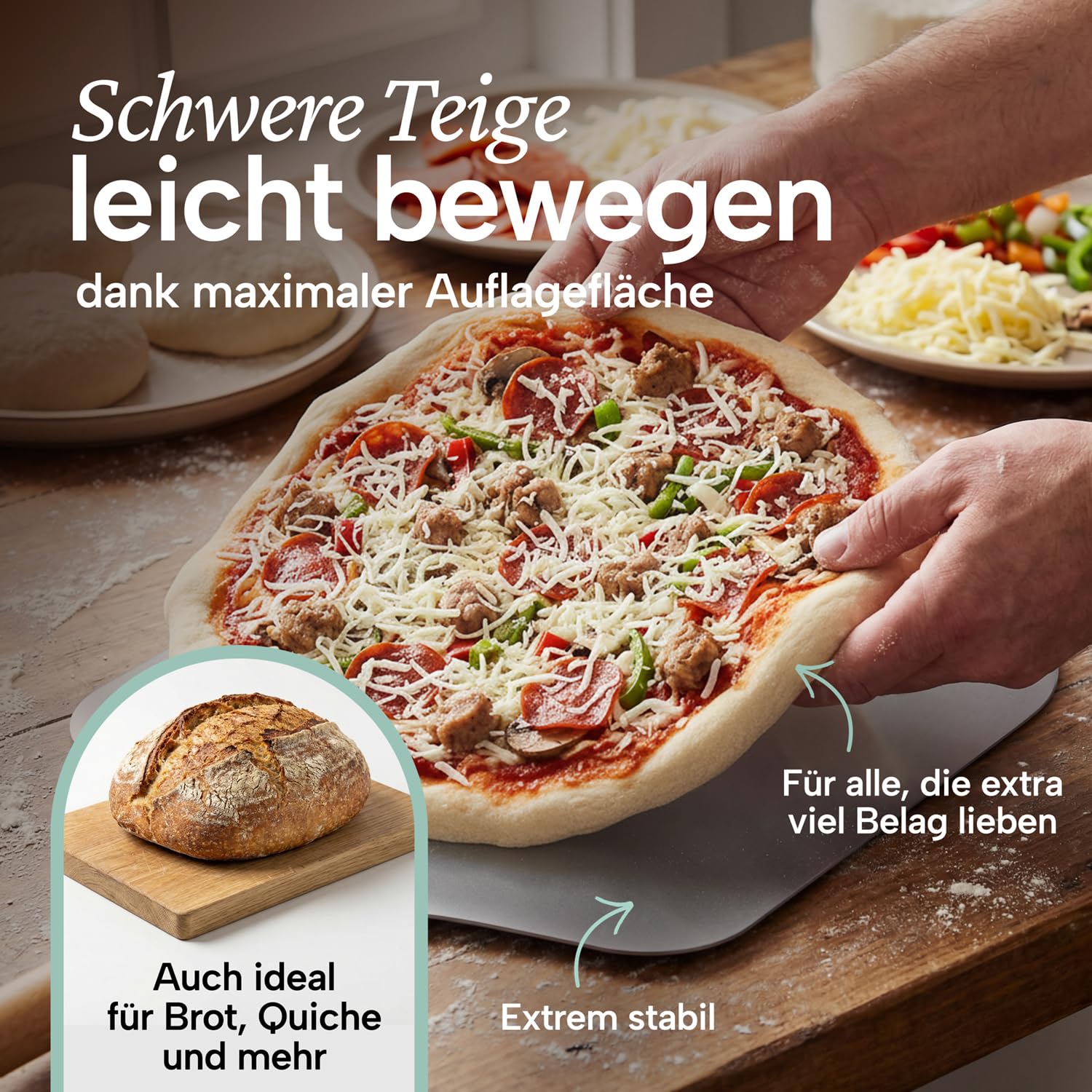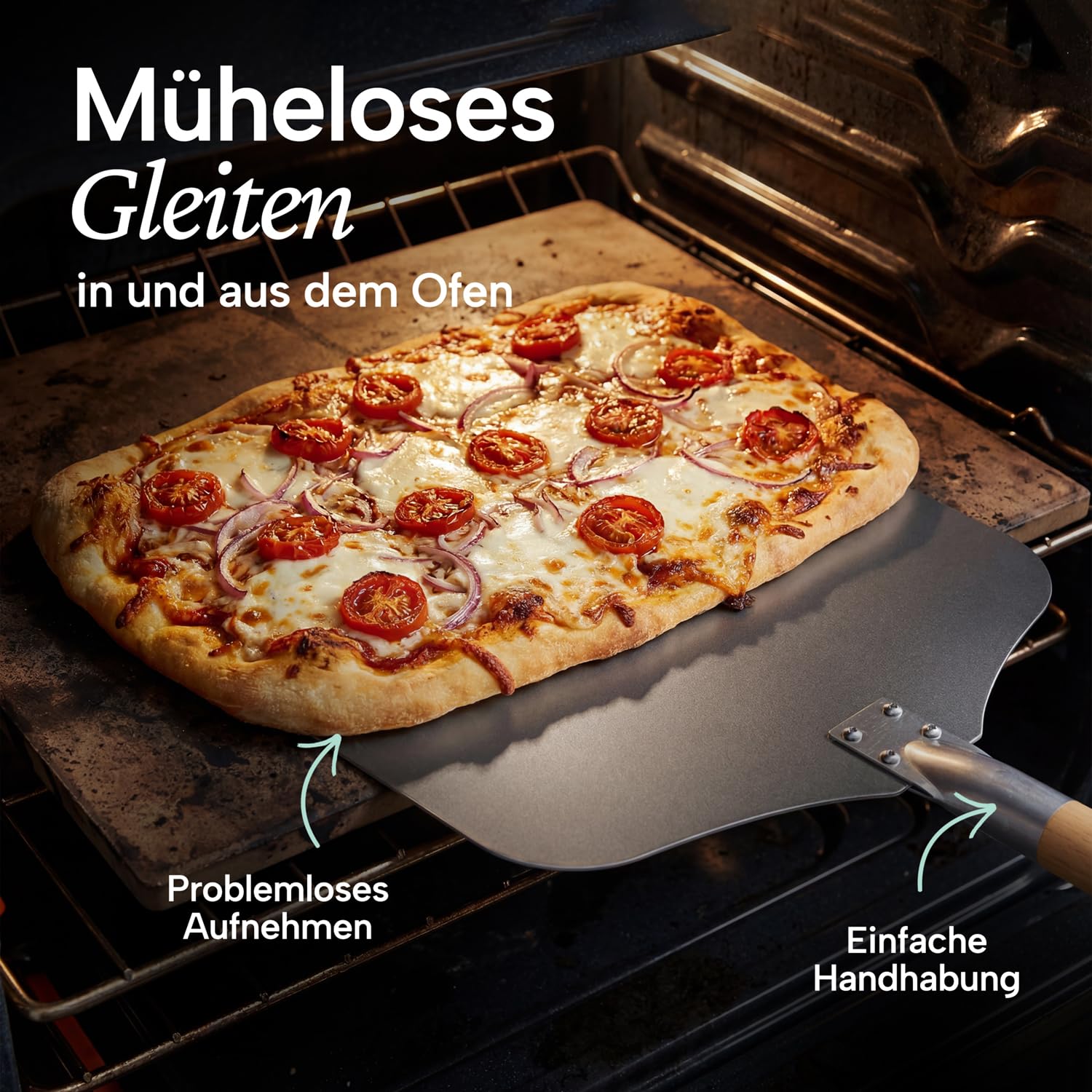Blumtal Pizzaschieber 30,5x30,5 cm Fläche + abnehmbarer Holzgriff 46,5 cm - Pizzaschaufel ultra robust - Pizza Schieber/Brotschieber - Pizza Zubehör Pizzaheber mit Aufhängehook