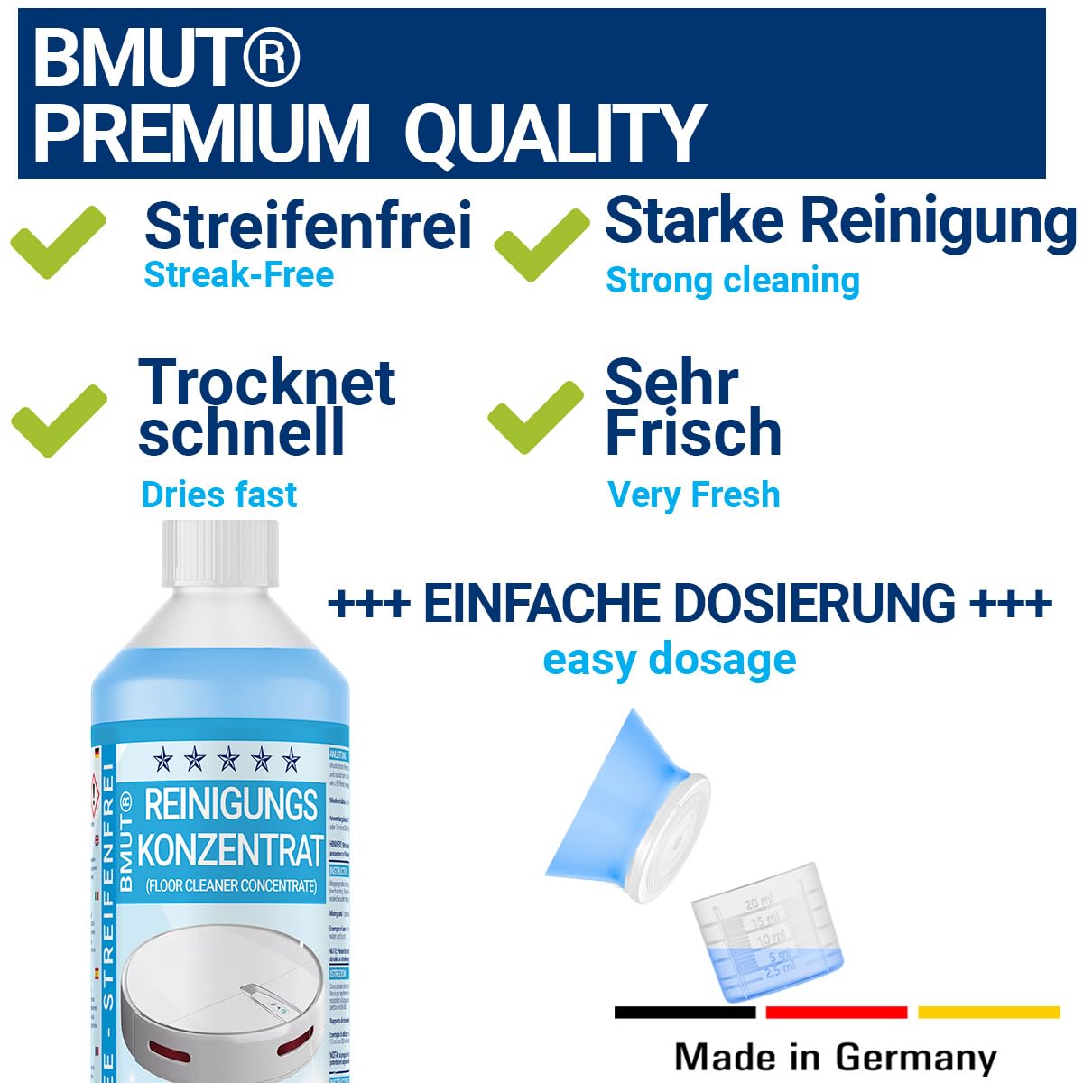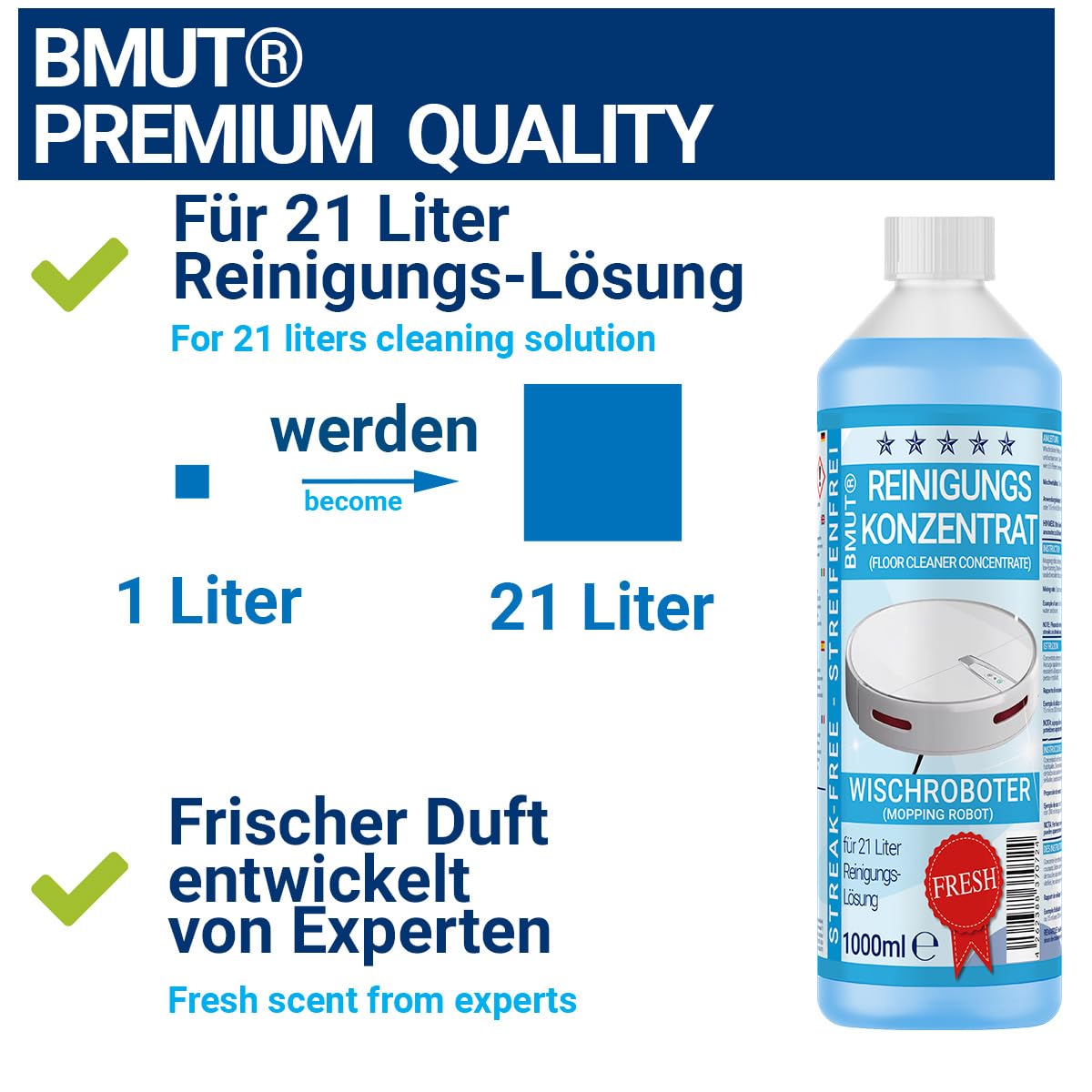 Mindestanzahl für die Bestellung von "BMUT 1x 1000ml Wischroboter Reinigungsmittel Konzentrat mit Frische-Duft & Dosierbecher | Streifenfrei & schaumarm | Saugwischer | Bodenreiniger" ist 1.