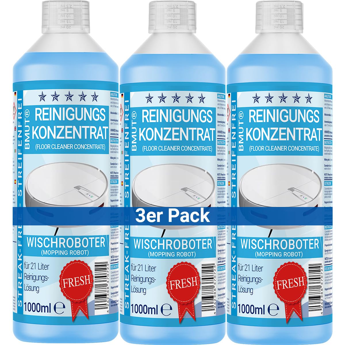 3x 1000ml Wischroboter Reinigungsmittel Konzentrat mit Frische-Duft & Dosierbecher | Streifenfrei & schaumarm | Saugwischer | Bodenreiniger