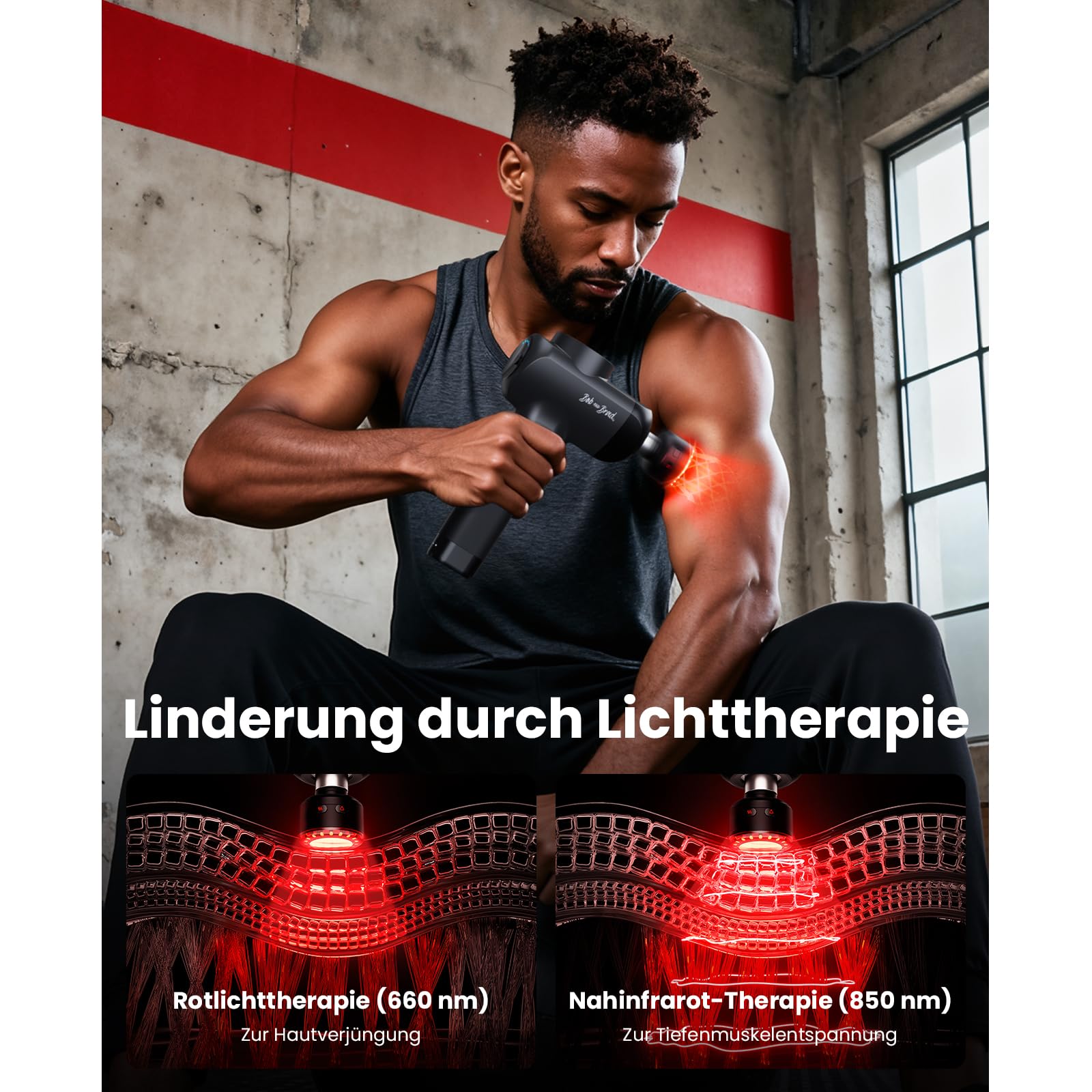 • Leistungsstarke 3-in-1-Technologie für beschleunigte Erholung: Erleben Sie das revolutionäre BOB AND BRAD X6 Ultra massage pistole. Es bietet eine kraftvolle 3-in-1-Behandlung durch gezieltes Nahinfrarotlicht, kontrollierte Wärme und einen exklusiven 100% Titan-Kopf für unübertroffene Tiefengewebe-Penetration. Dieser synergetische Ansatz beschleunigt die Erholung aus mehreren Winkeln und bietet therapeutische Pflege jenseits traditioneller Massagegeräte.