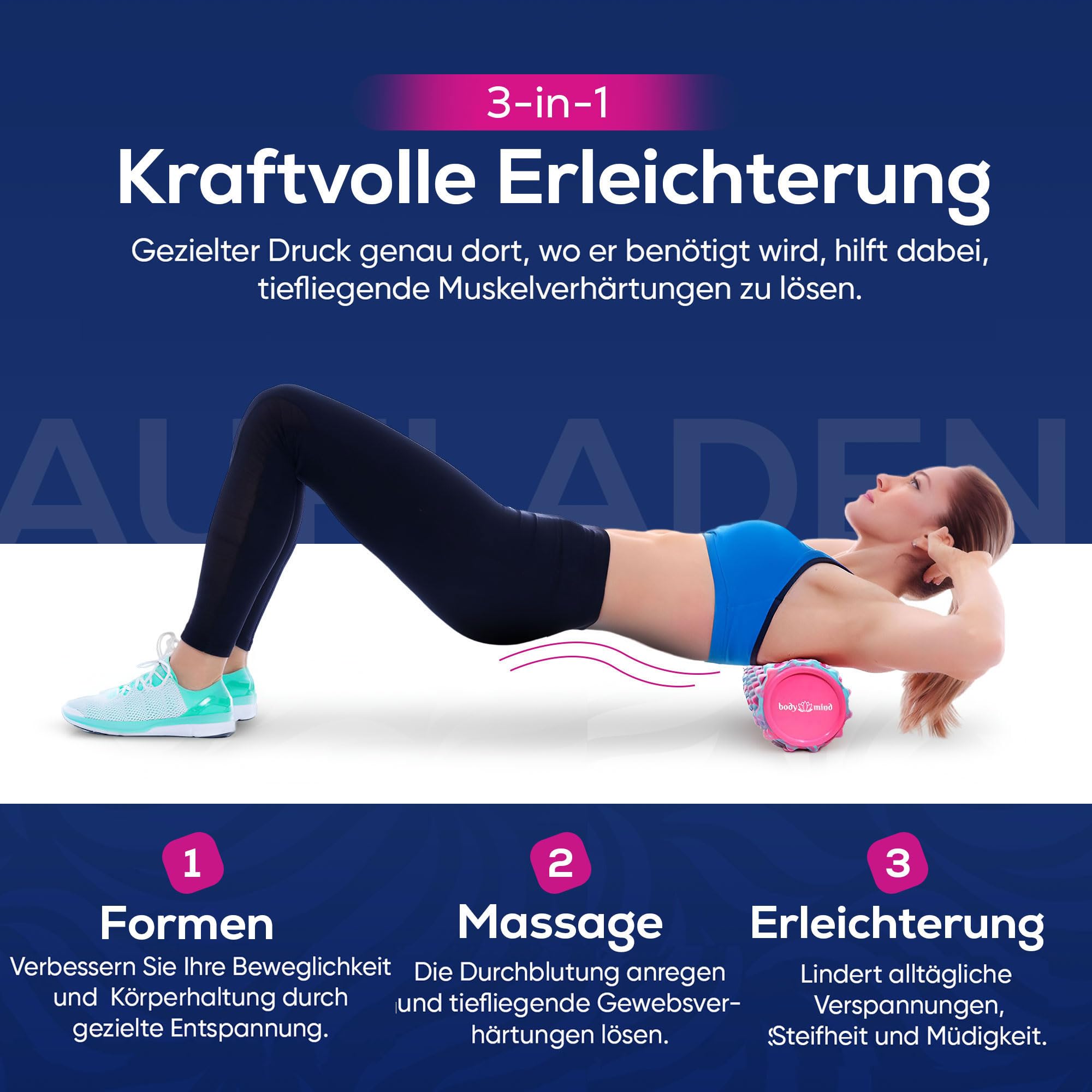 Mindestanzahl für die Bestellung von "Body & Mind® Faszienrolle Massage-Rolle Fitnessrolle Sportrolle Therapierolle; Faszien-Training am Oberkörper, Nacken, Rücken, Beine, Waden & Allen Anderen Muskelgruppen; 33 x 14,5 cm" ist 1.