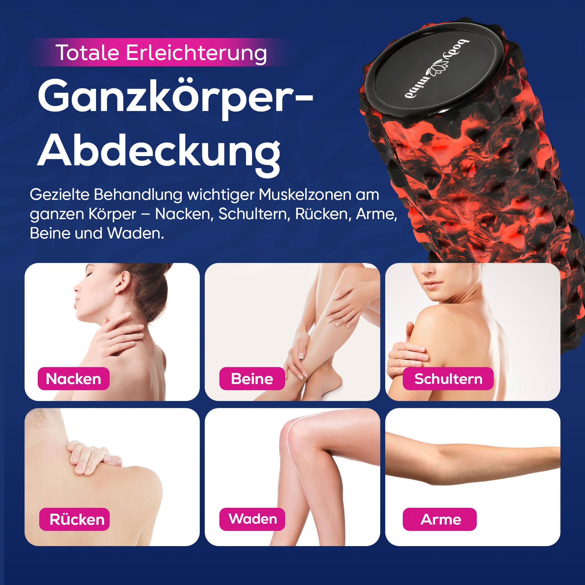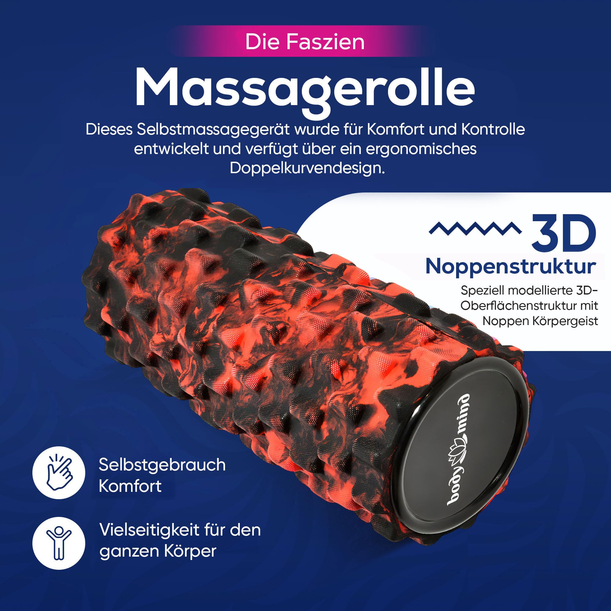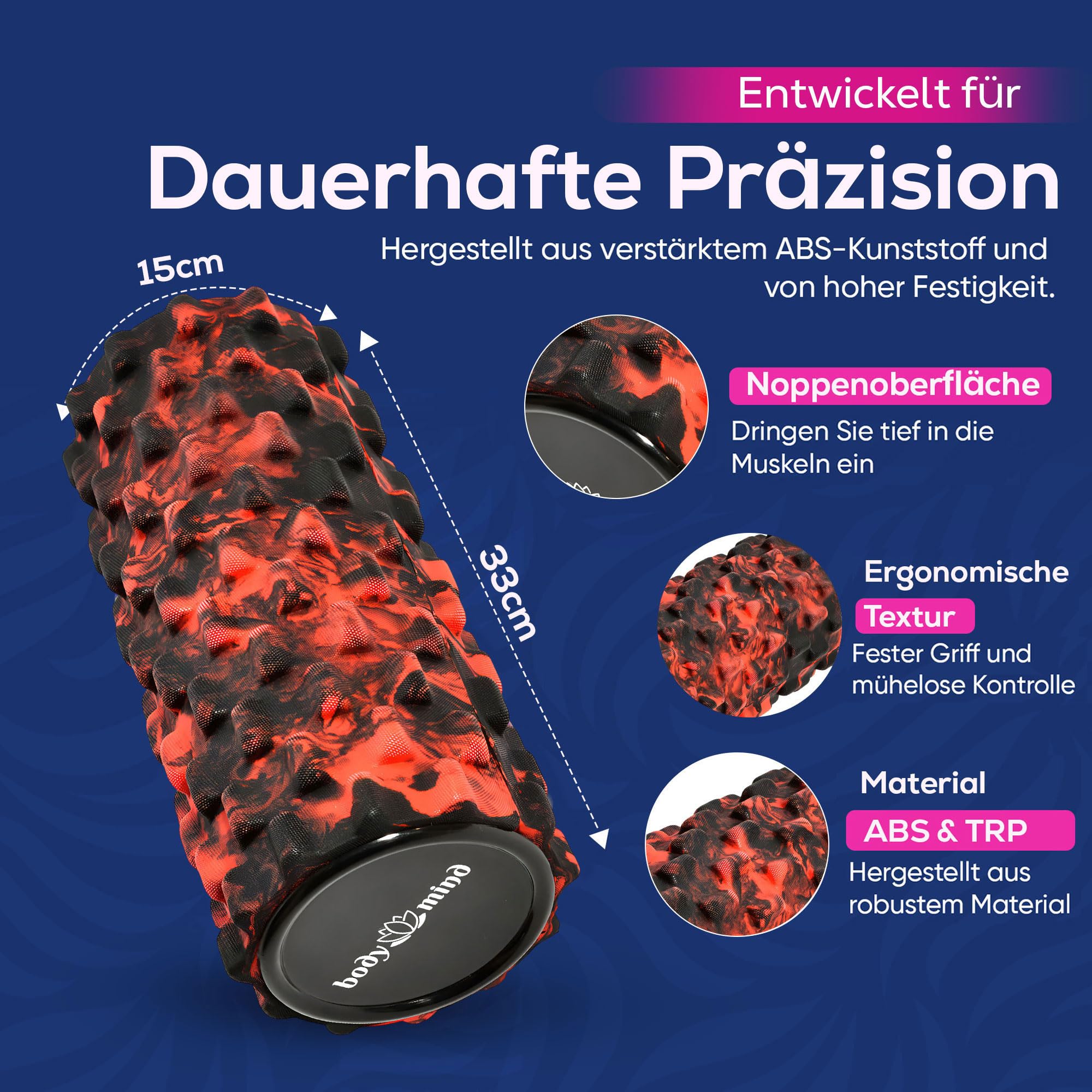 Body & Mind® Faszienrolle Massage-Rolle Fitnessrolle Sportrolle Therapierolle; Faszien-Training am Oberkörper, Nacken, Rücken, Beine, Waden & Allen Anderen Muskelgruppen; 33 x 14,5 cm