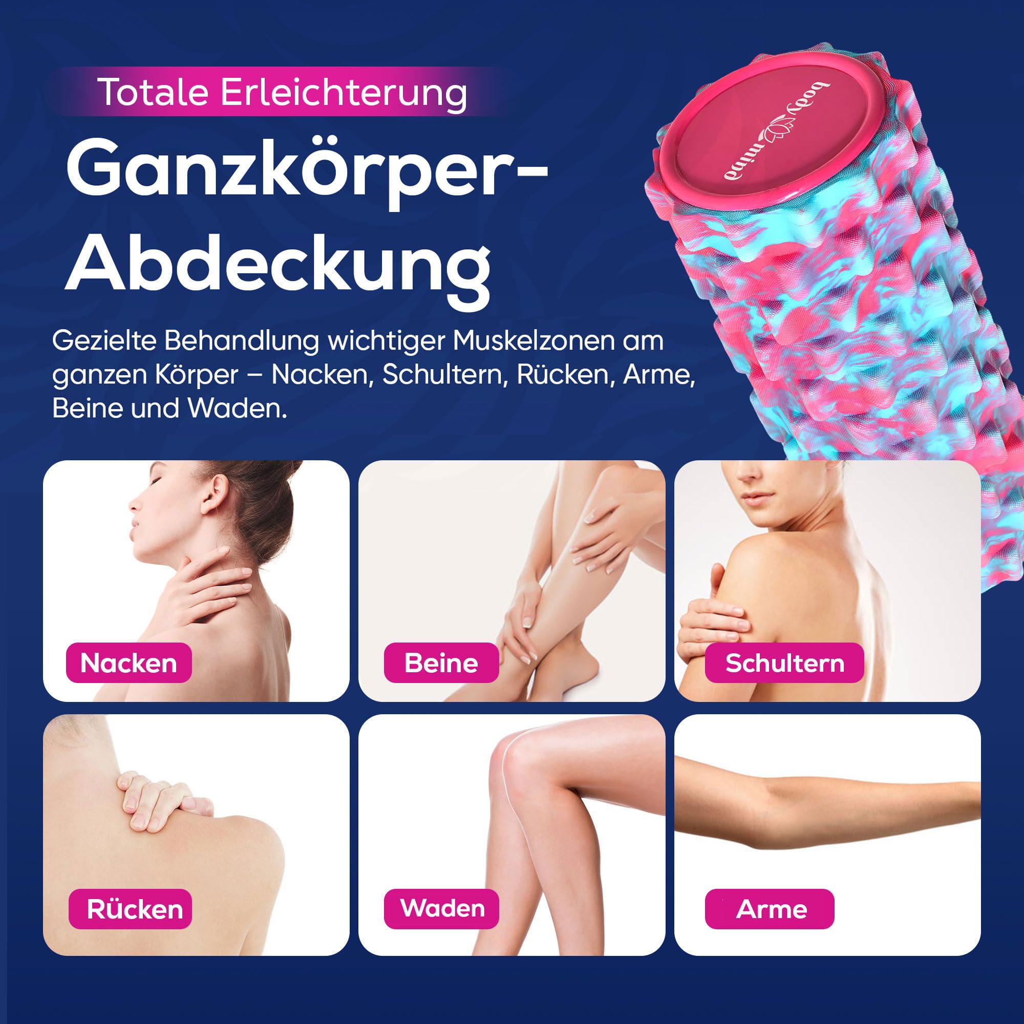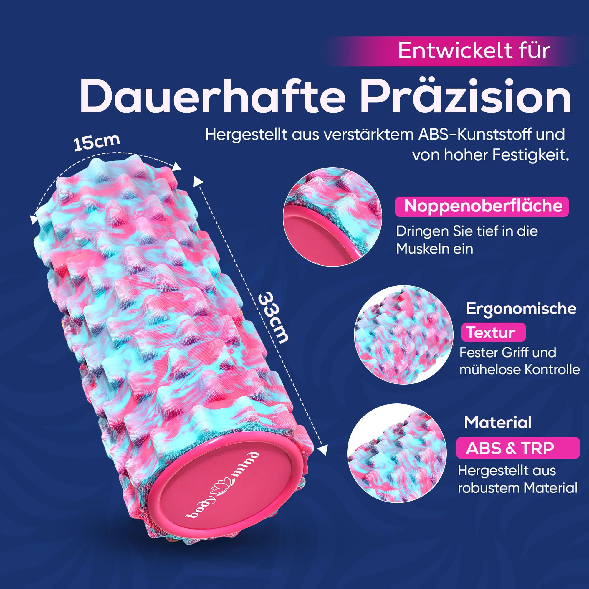 Body & Mind® Faszienrolle Massage-Rolle Fitnessrolle Sportrolle Therapierolle; Faszien-Training am Oberkörper, Nacken, Rücken, Beine, Waden & Allen Anderen Muskelgruppen; 33 x 14,5 cm