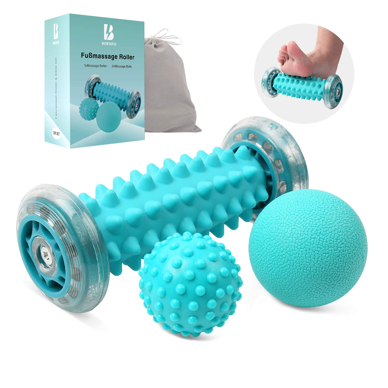 BOENFU Igelball Fussmassage 3er-Set – Fussroller und Faszienbaelle fuer Fuesse, Triggerpunkt- und Reflexzonenmassage