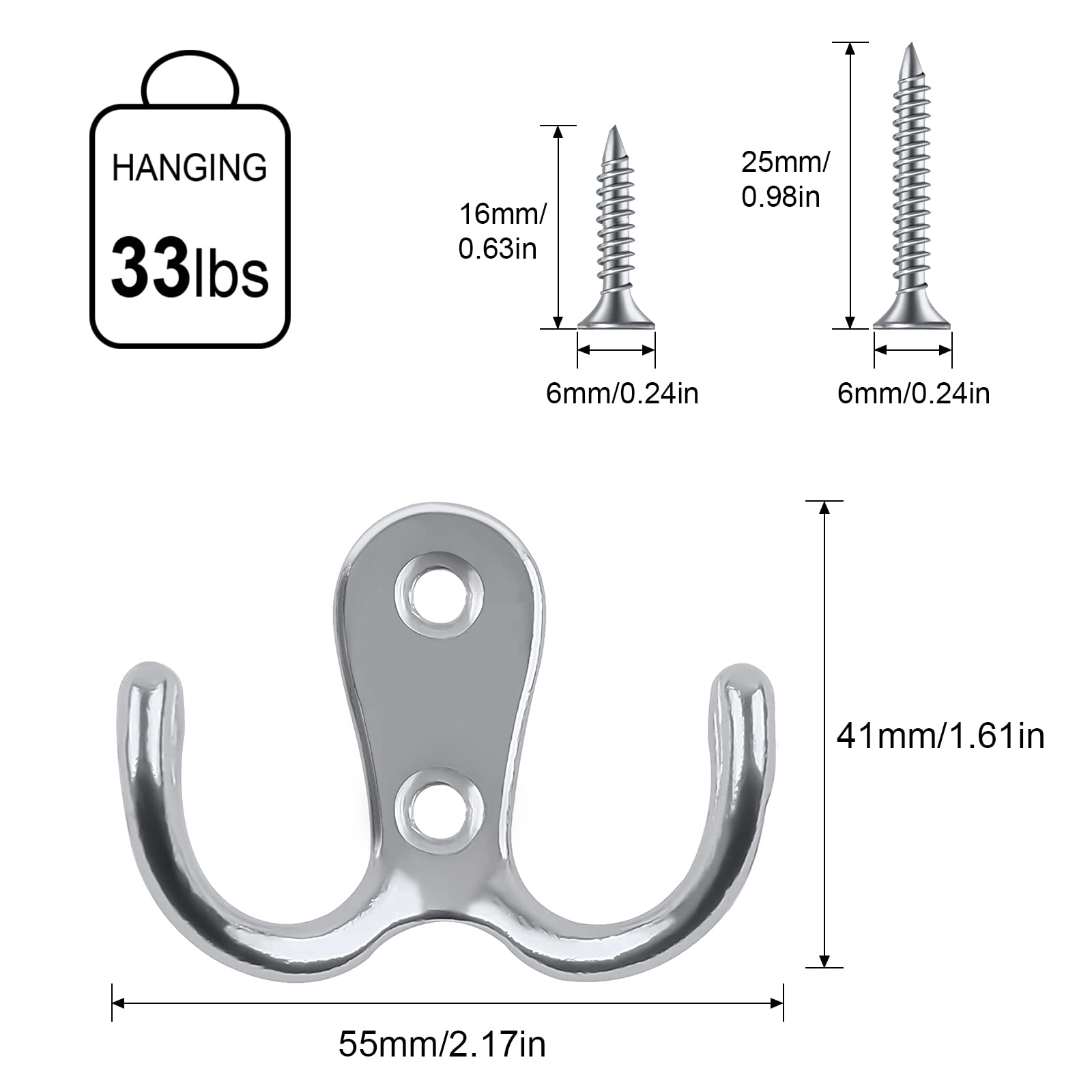 Bolatus Garderobenhaken Vintage Kleiderhaken Silber Doppelt Wandhaken Polieren Retro Haken für Garderobe