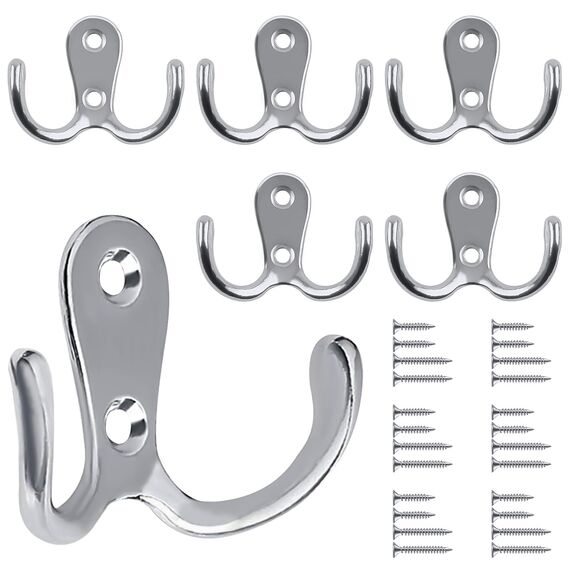 Bolatus 6 Stück Kleiderhaken, Haken Garderobe Doppelt Wandhaken Retro Haken Wand Metall Silber Kleiderhaken Vintage mit 24 Schrauben für Garderobenhaken Badezimmer Küche