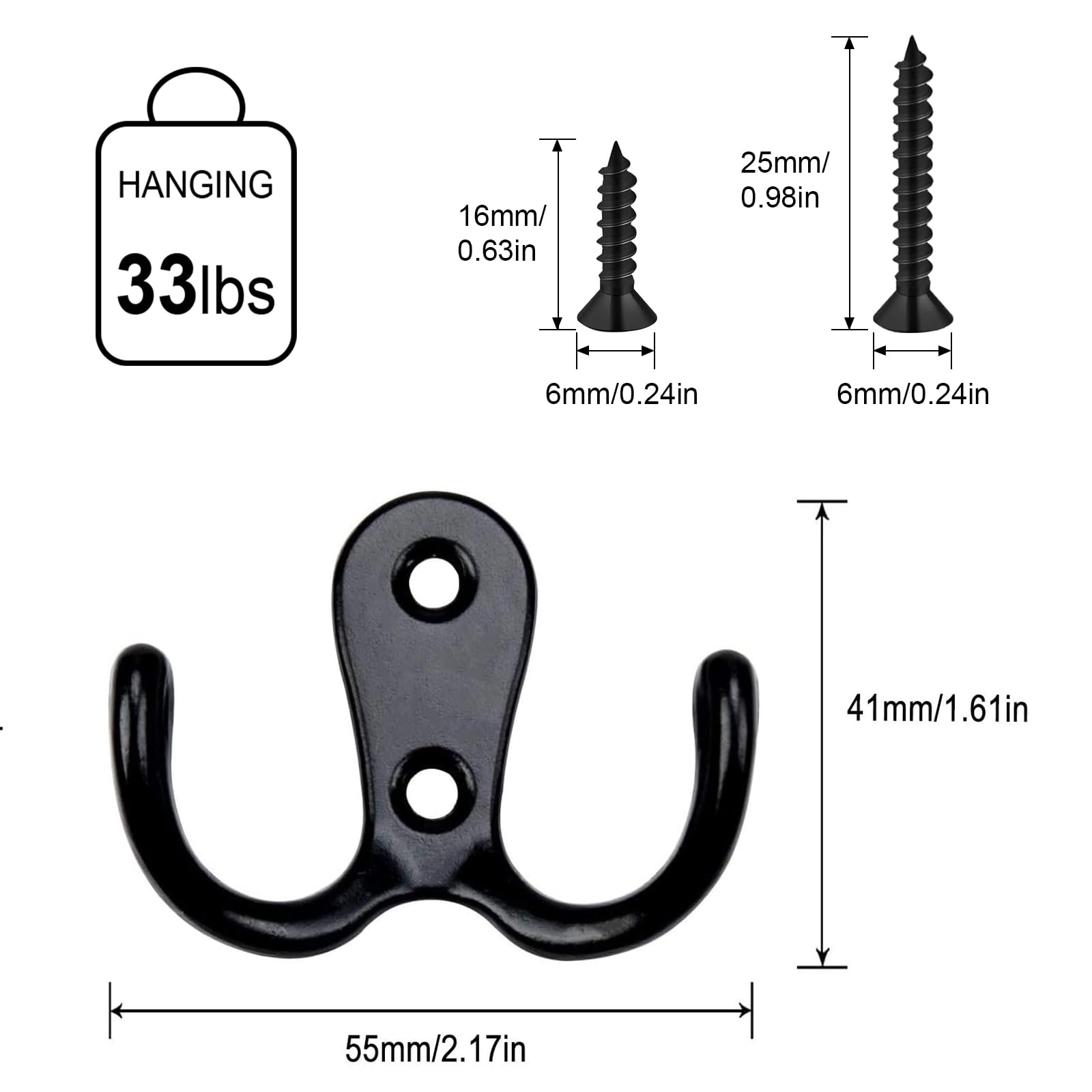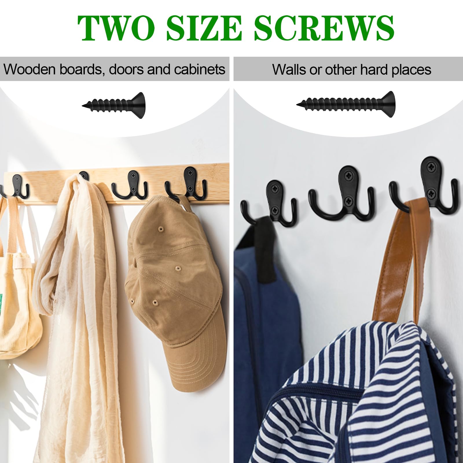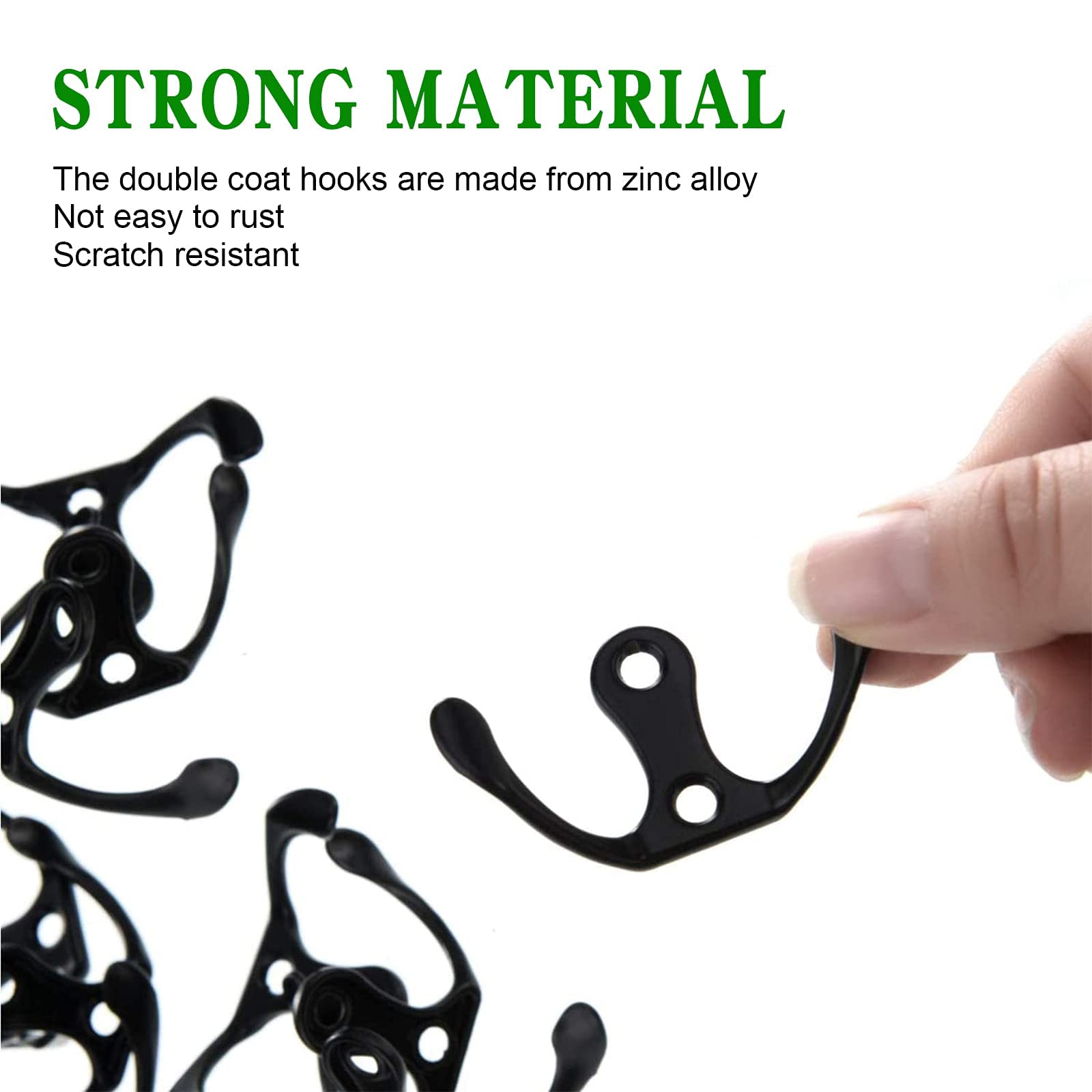 — Jackenhaken aus Zinklegierungsmaterial, kein Rost, kratzfest und langlebig. Empfohlene Montage auf Massivholz oder Holzoberfläche.