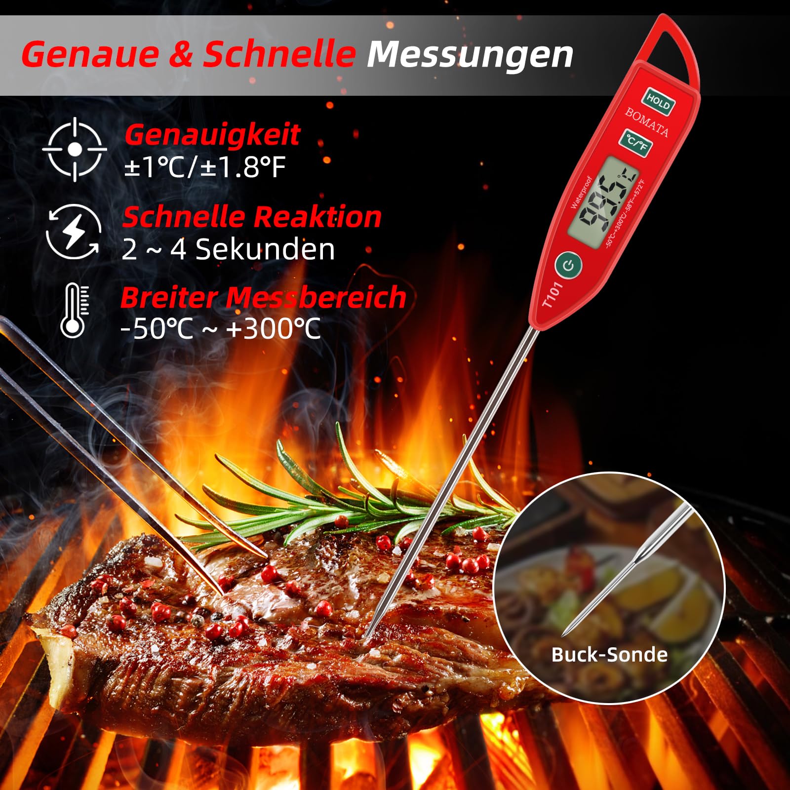 - [0% Kaufrisikogarantie] BOMATA verpflichtet sich, hochwertige Produkte und Dienstleistungen zu liefern. BOMATA Thermometer kommt mit einer einjährigen Garantie. Wenn das Produkt nicht Ihren Erwartungen entspricht, kontaktieren Sie uns jederzeit für eine Rückerstattung oder einen Austausch.