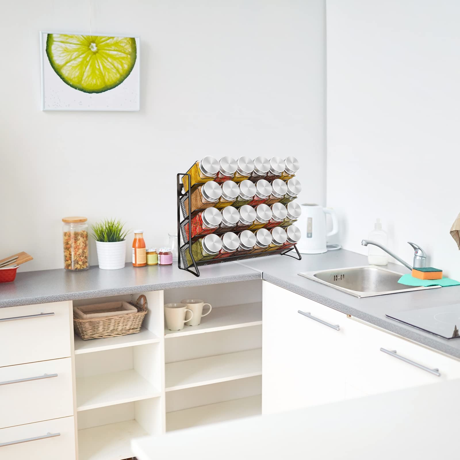 Bomclap Gewürzregal kein Gewürzglas Stehend gewürz regal küchenregal metall Hält viel gewürzgläser Gewürz Organizer für Küchenschrank und Arbeitsfläche, gewürzgläser nicht enthalten, Schwarz