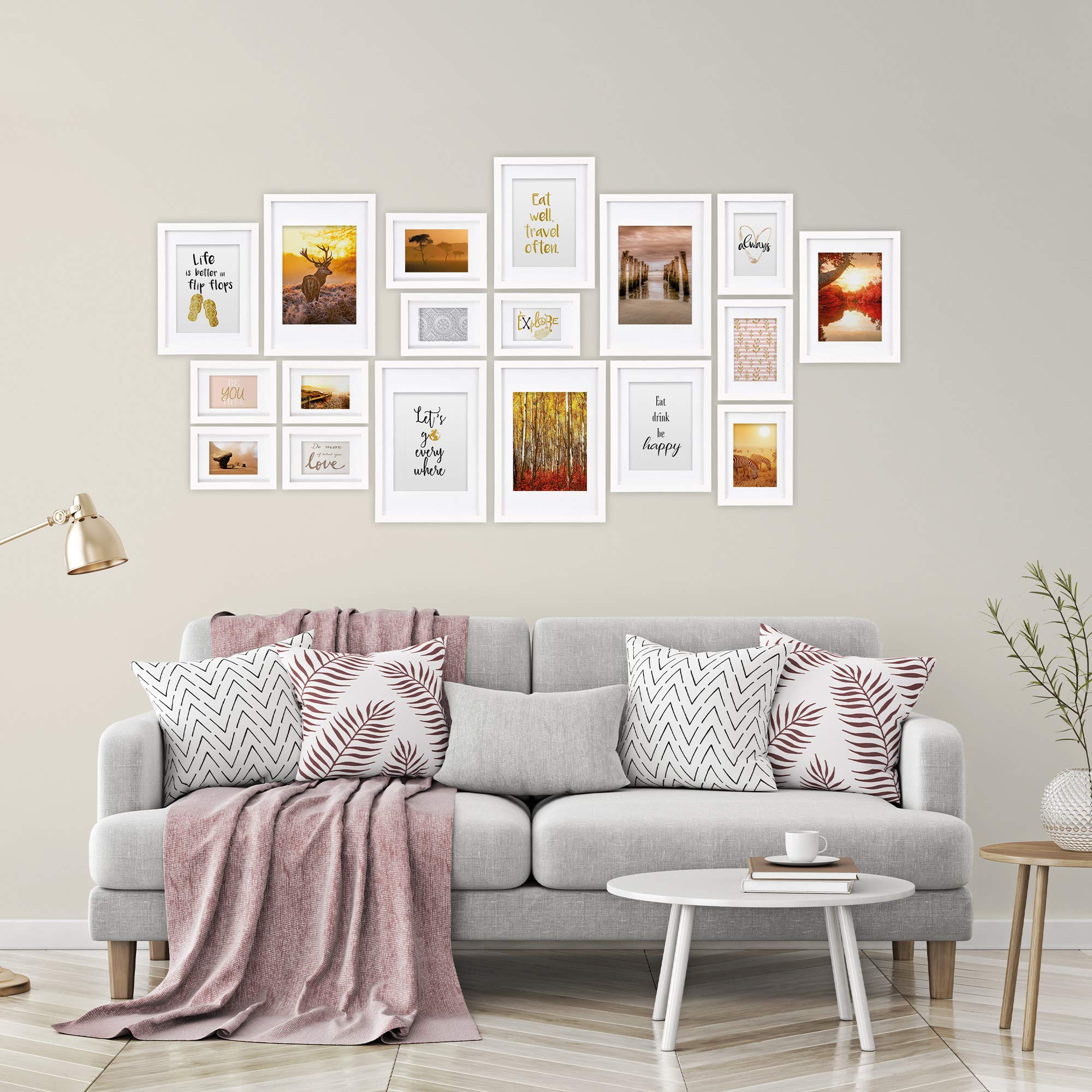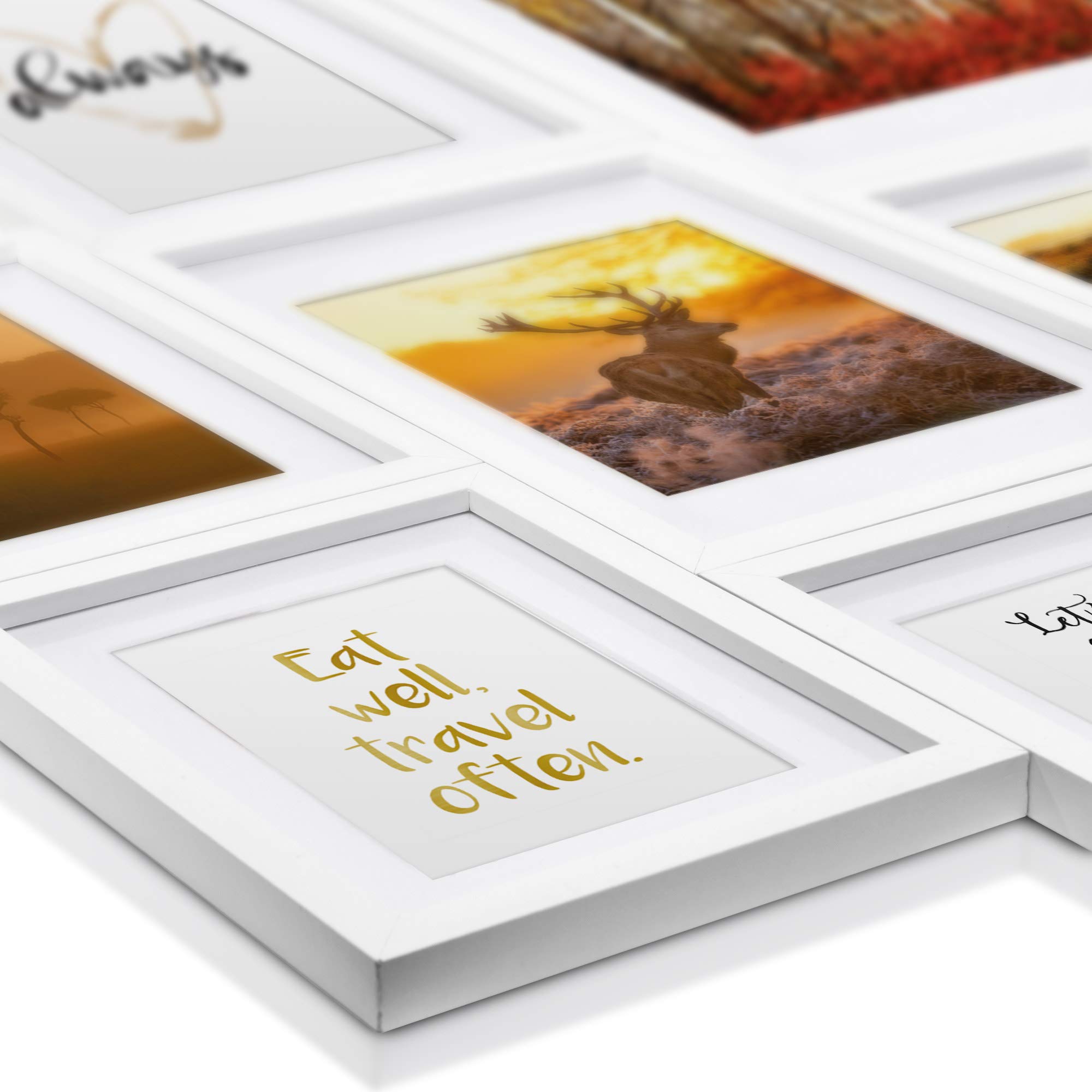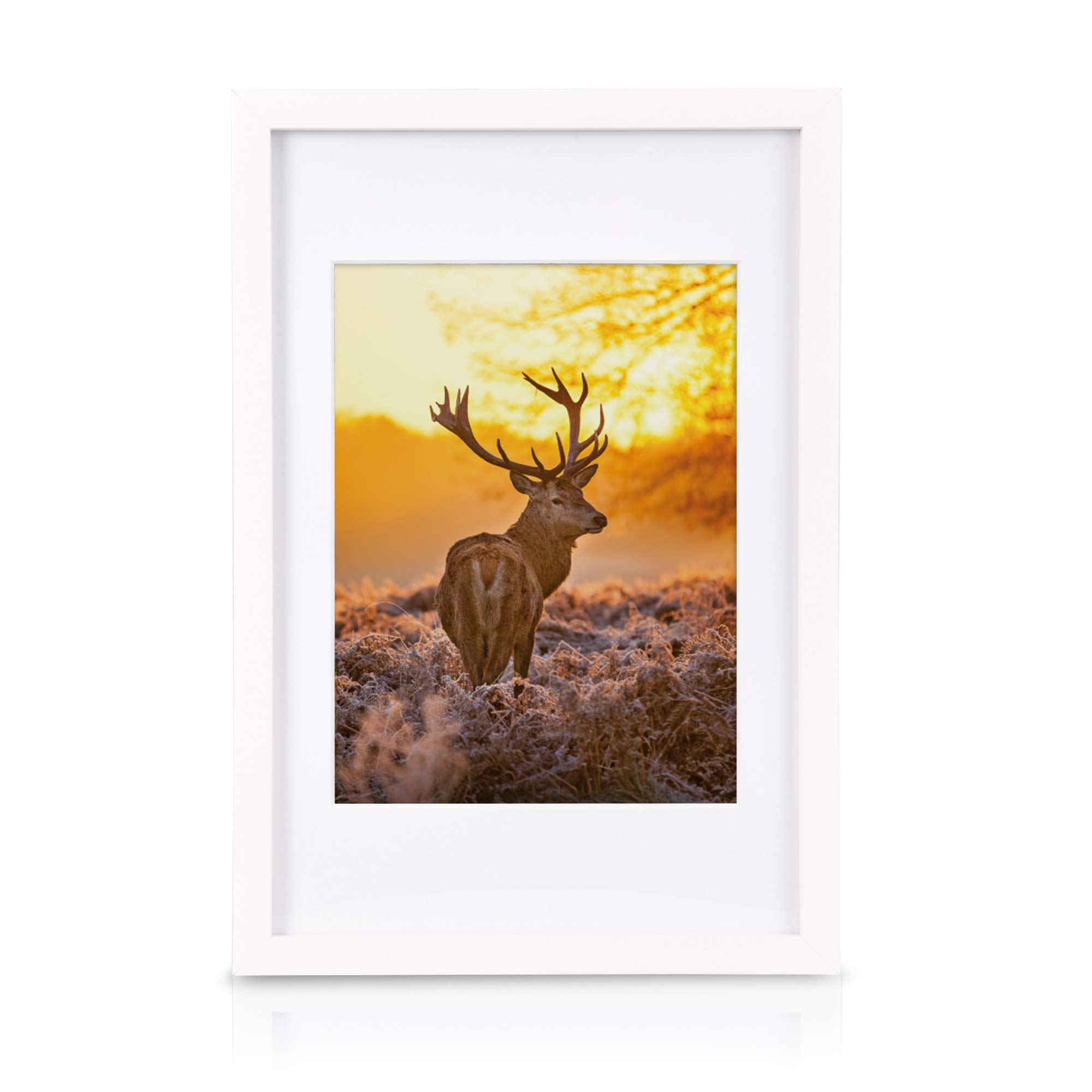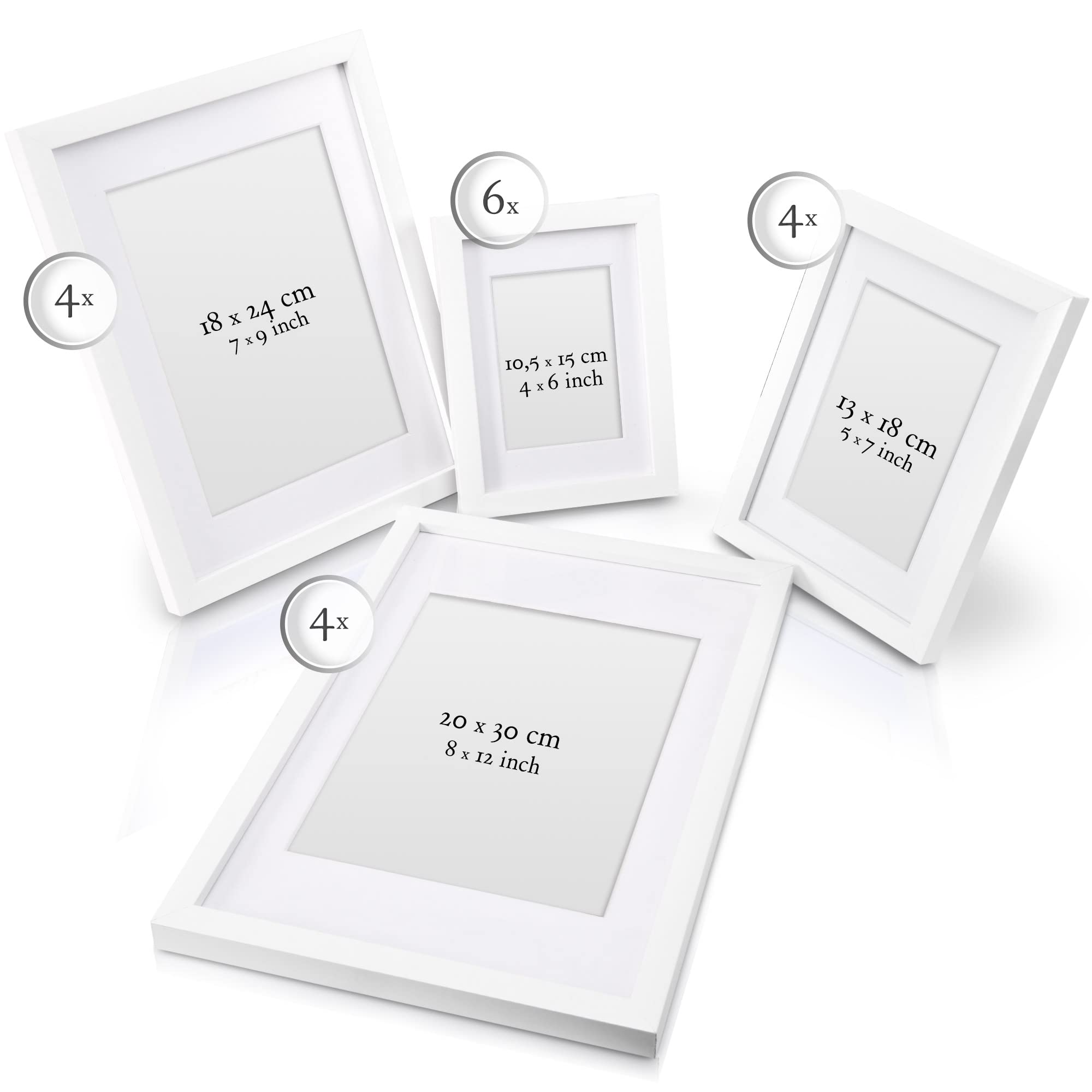 bomoe 18er Bilderrahmen Set – 6x 10x15 cm, 4x 13x18 cm, 4x 18x24 cm, 4x 20x30 cm Fotowand Bilder Set Holz & Kunststoffglas Holzbilderrahmen mit Passepartout Weiss