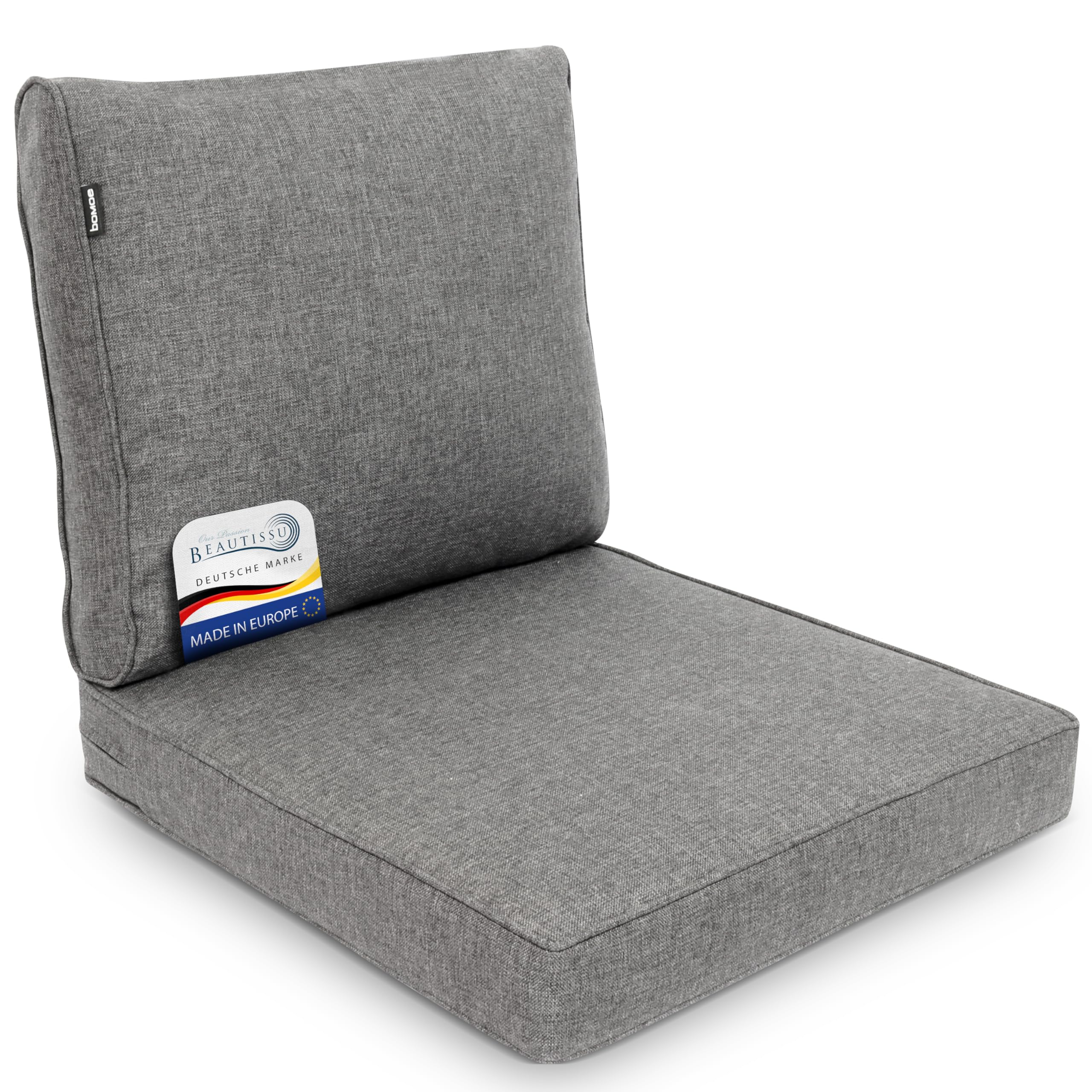 bomoe 2er Set Loungekissen Sitzkissen Outdoor 50x50 cm & Rückenkissen 50x40 cm – Hochwertige Polsterauflagen für Gartenmöbel Bezug Waschbar Lounge Kissen Outdoor Hellgrau UV-Schutz – ilano