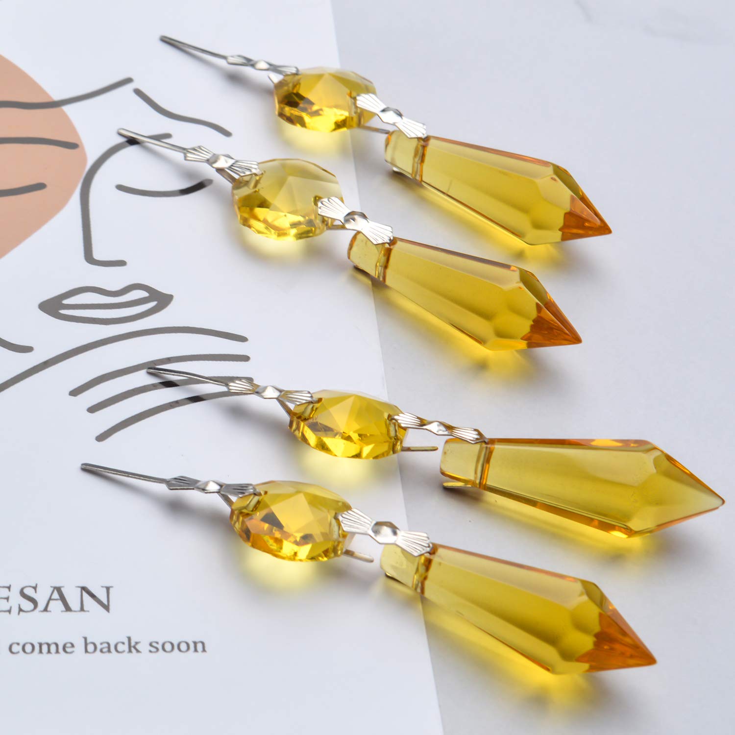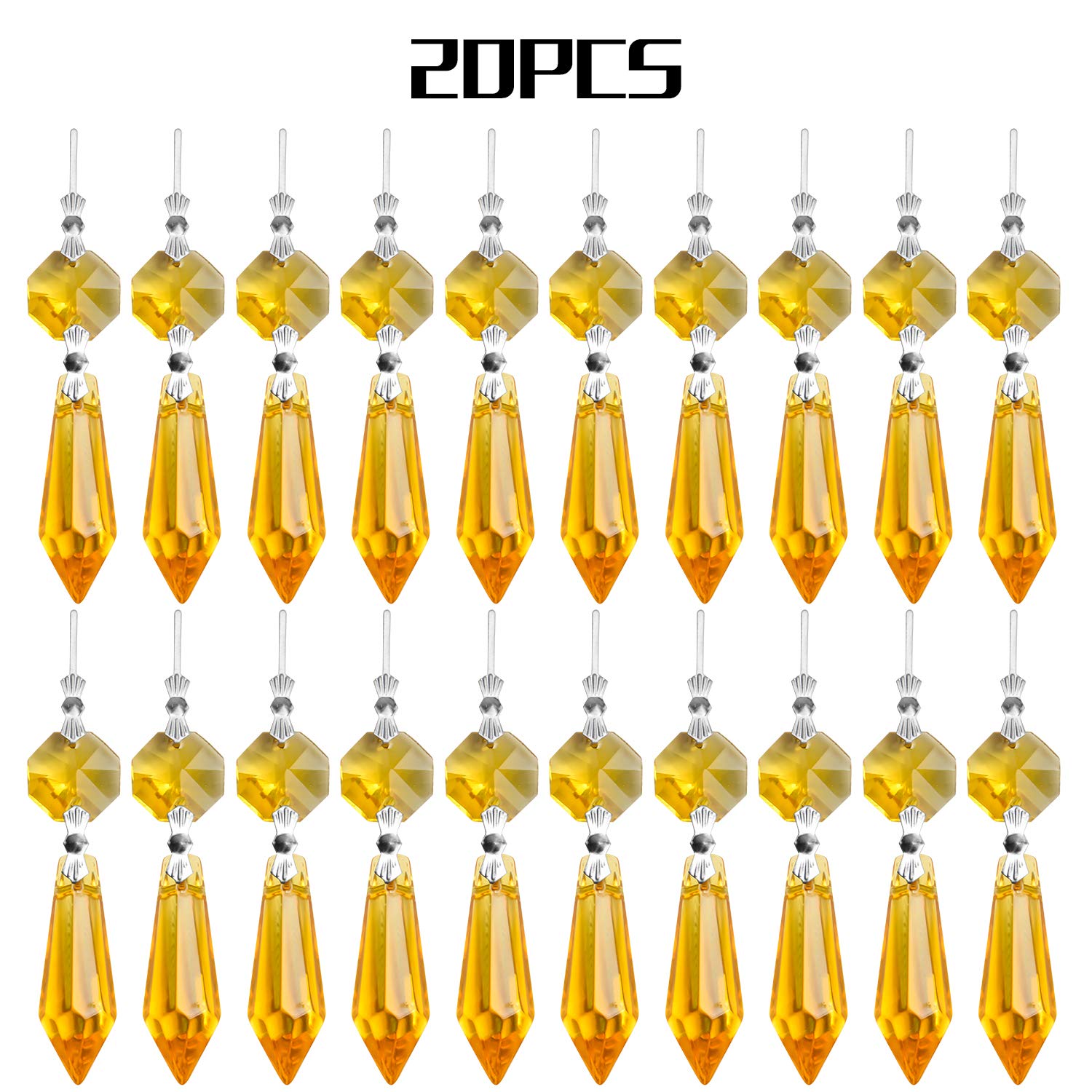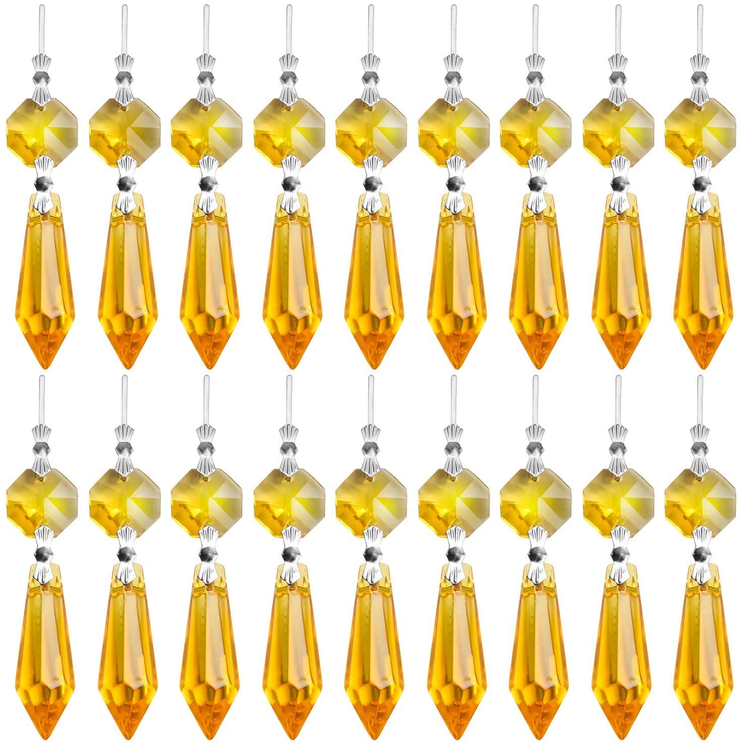 20 Stück Kronleuchter Eiszapfen Kristall U-Tropfen Prismen Lampenteile Glasanhänger Perlen für Hochzeit, Party oder Urlaubsdekoration, 37 mm, Gelb