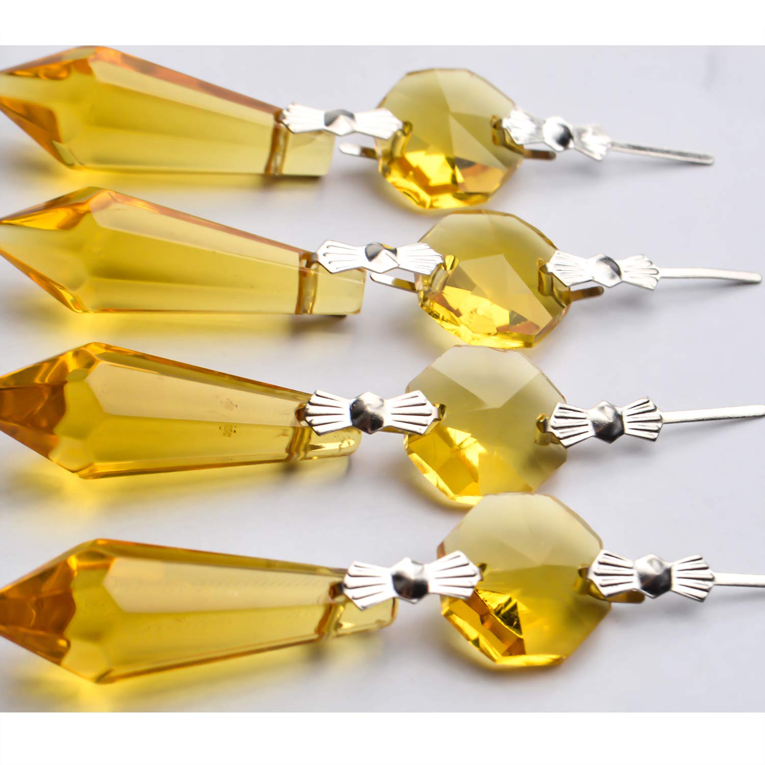 20 Stück Ersatz gelbe Kronleuchter Eiszapfen Kristall Prismen Octogan Kristall Perlen für Lampendekoration, 37 mm, Silber Fliege Verbinder