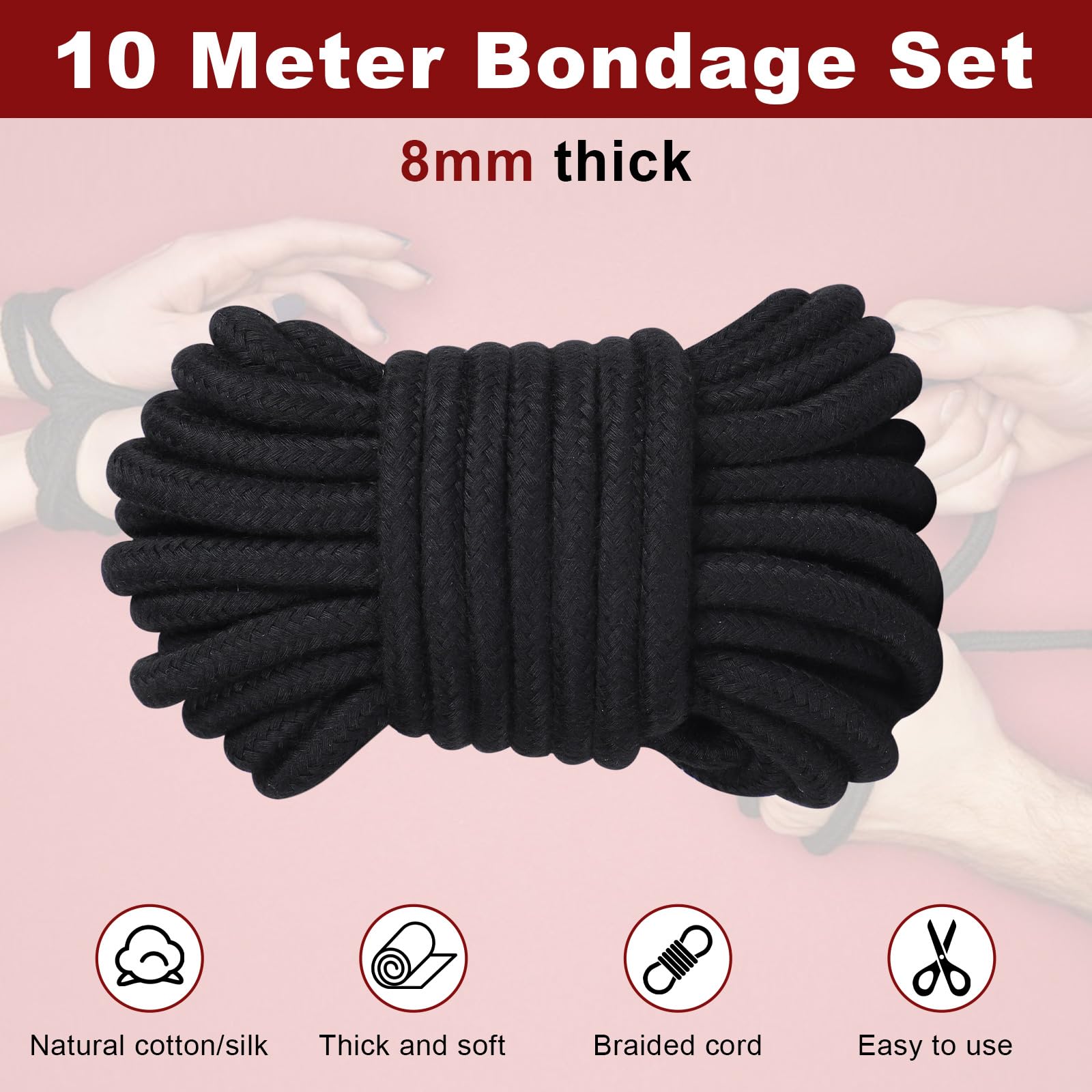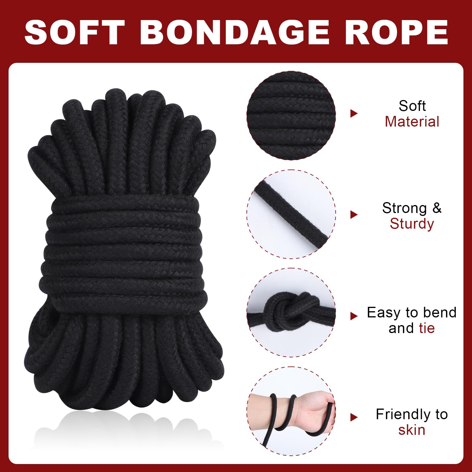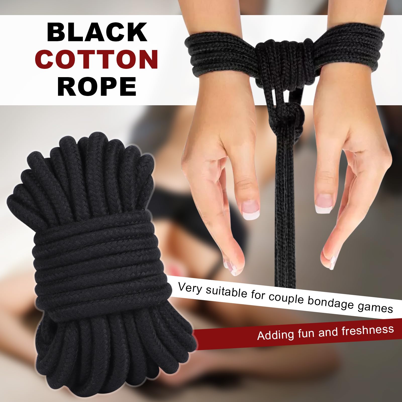 Bondage Seil, Weiches Bondageset BDSM Fesseln Rope, Schwarz Baumwollseil Fesseln Sexspielzeug für Paare Anfänger (Mattschwarz (Baumwolle))