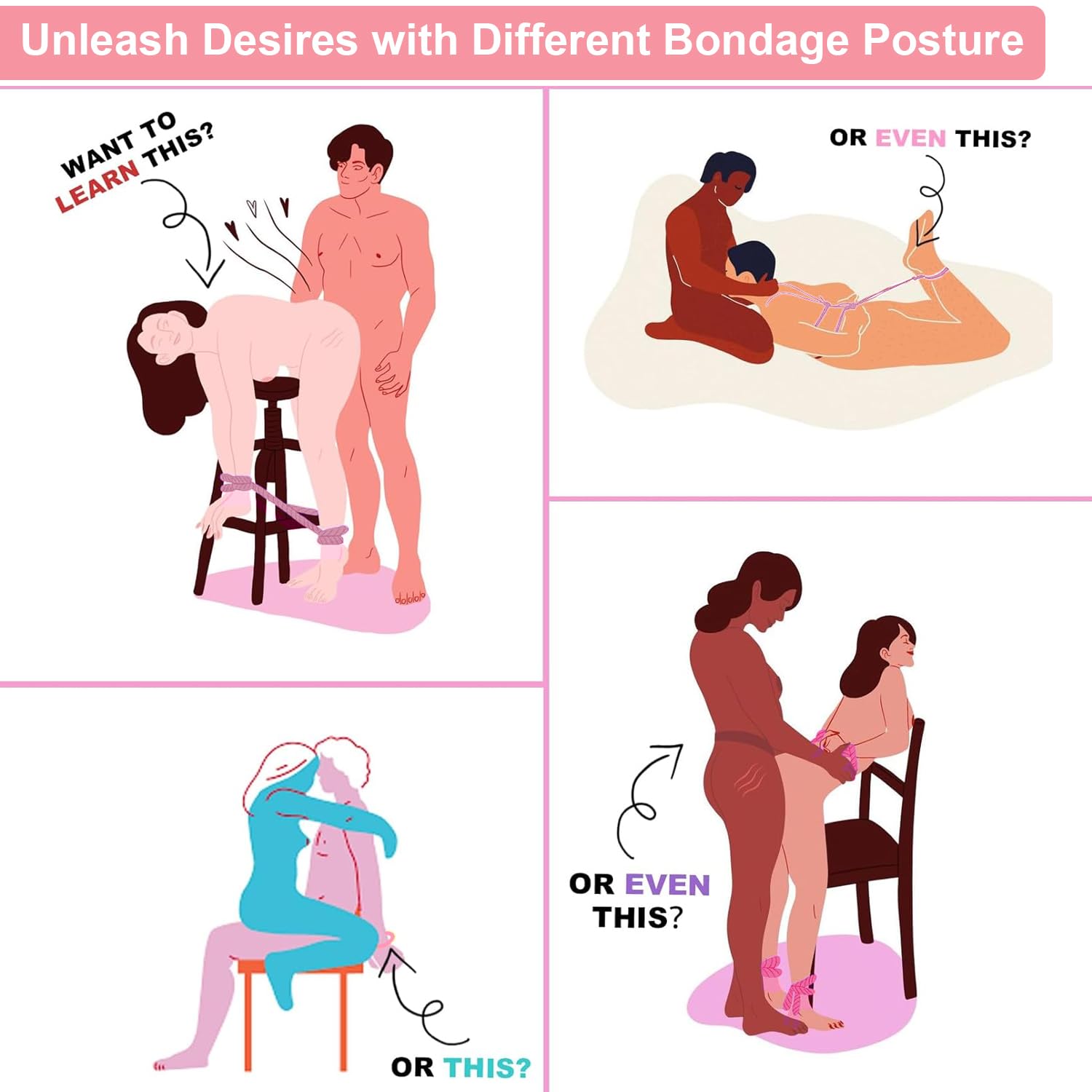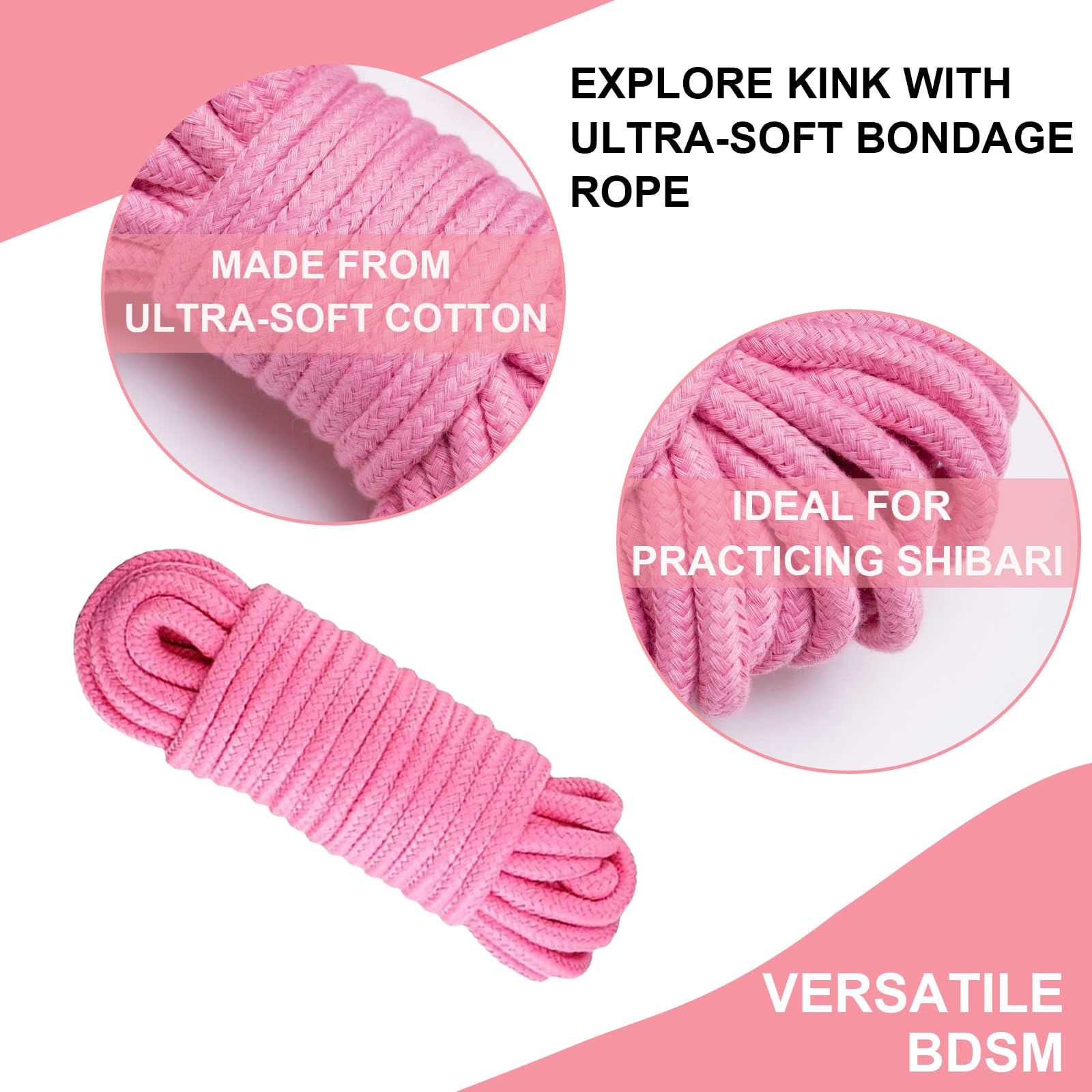 Bondageset Seil Baumwollseil-Bondageseil BDSM Fesseln Baumwollkordel 8mm Bett Fesseln für Sex Seile-Selfbondage 3x5M Shibari Rope Fetish Paar Sex Spielzeug für Paare Anfänger, Männer und Frau (Rosa)