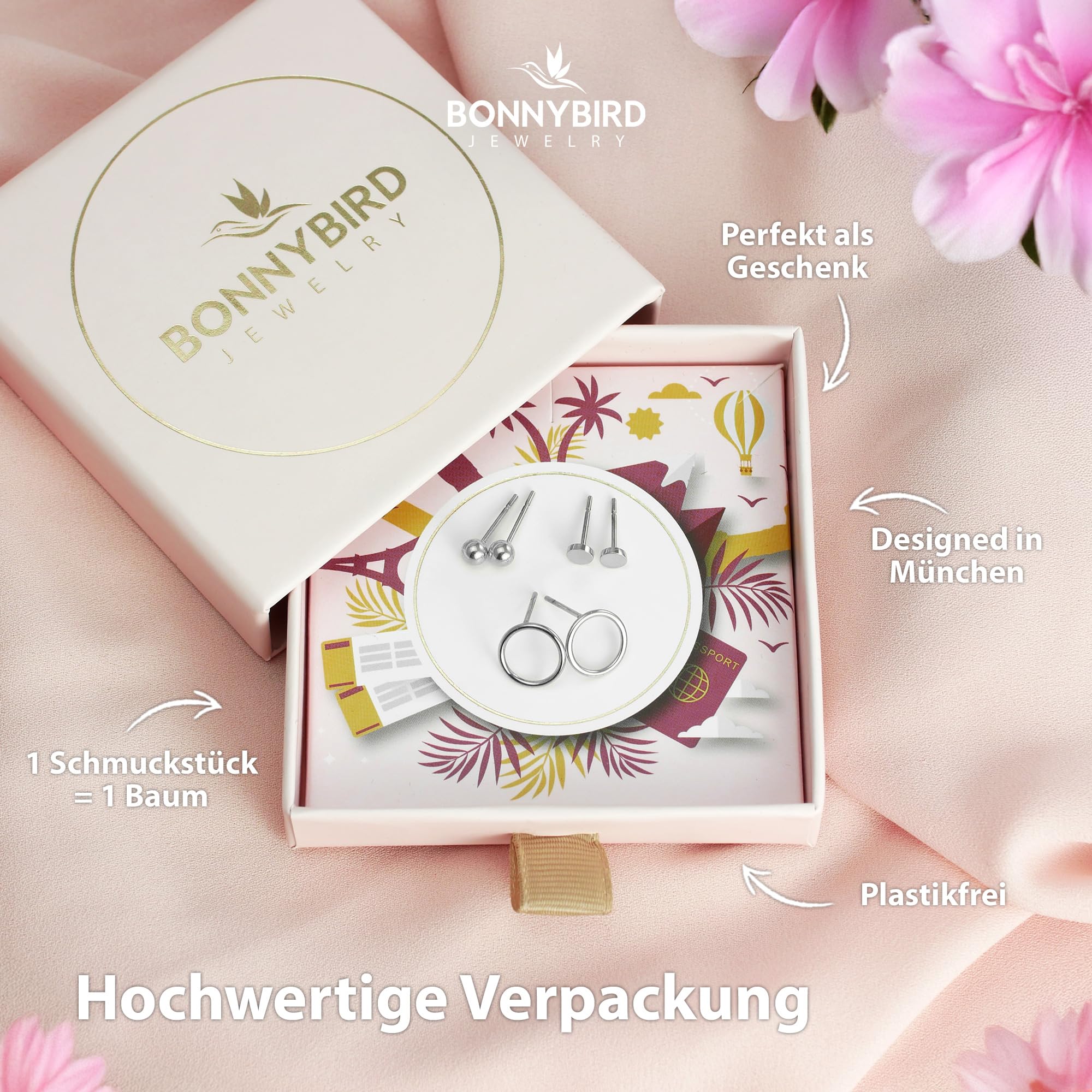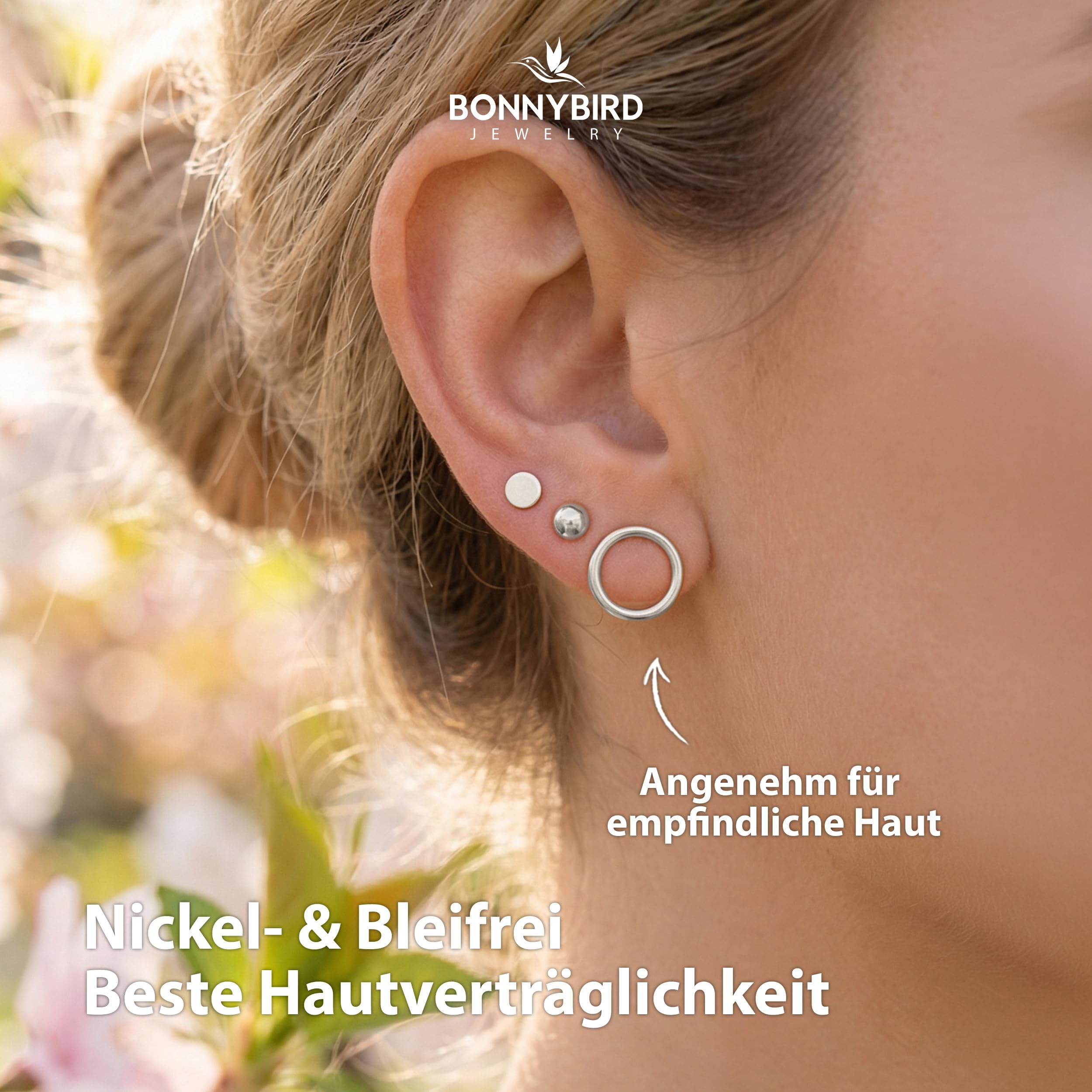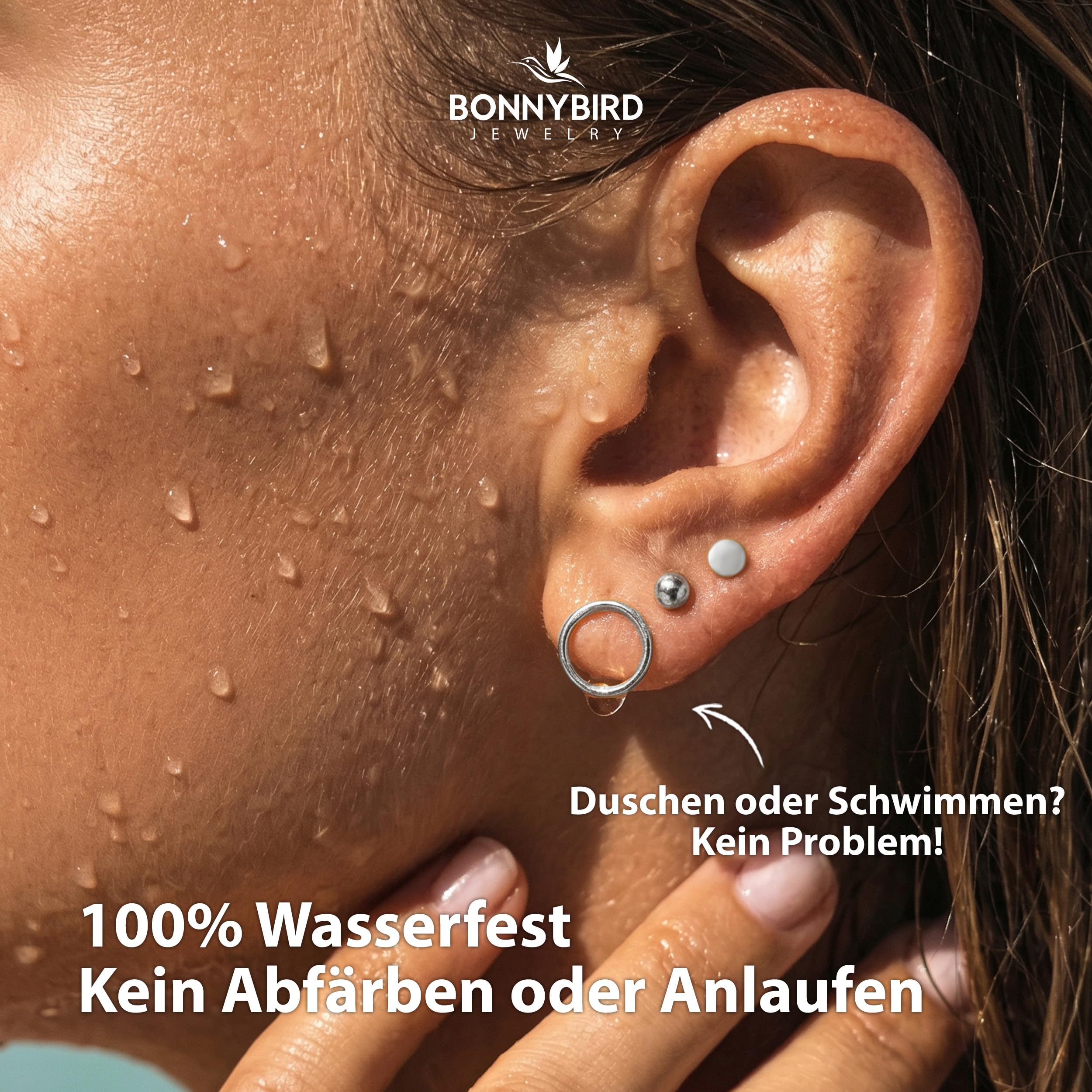 BONNYBIRD® Wasserfeste Edelstahl Ohrringe Damen in Silber, Gold & Roségold, Hypoallergen dank medizinischem Chirurgenstahl, Extra Leicht