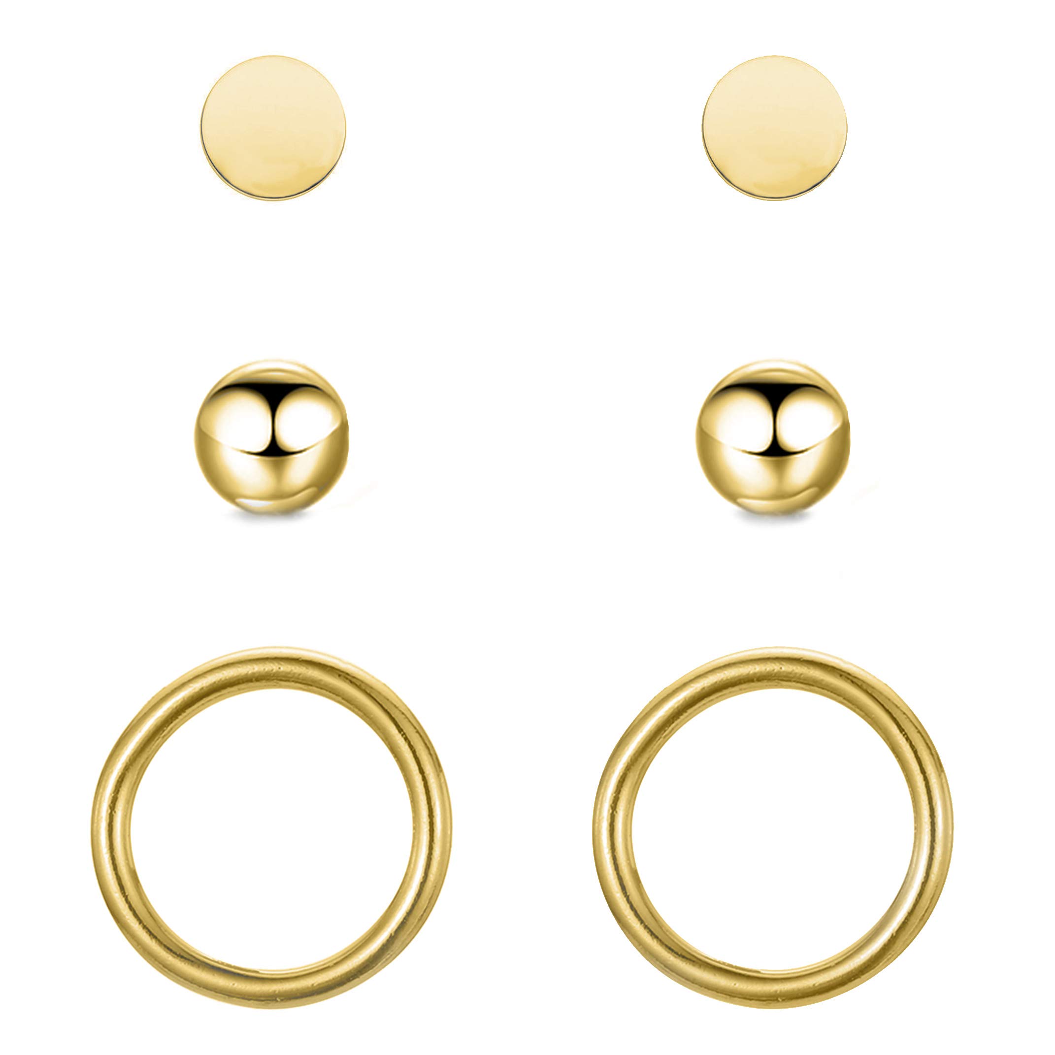 Das Ohrringe Set Gold von BONNYBIRD ist aus hochwertigem Edelstahl gefertigt. Die Chirurgenstahl Ohrringe Edelstahl Damen sind somit sehr langlebig und widerstandsfähig. Medizinische Ohrringe für mehrere Ohrlöcher haben den Vorteil, dass sie von jedem Hauttyp sehr gut vertragen werden. So sind die Ohrstecker Chirurgenstahl echte Gesundheitsstecker Ohrringe, die Rötungen und allergische Reaktionen verhindern. Edelstahl Ohrringe Damen sind aufgrund der besonderen Eigenschaften aber für jeden Träger die optimale Wahl. Im Vergleich zu Ohrstecker Gold 333 ist Edelstahl härter und läuft nicht an. Ein Ohrstecker Gold 585 hat eine ähnliche Farbe und Glanz wie Ohrstecker Edelstahl, aber echtes Silber-Material ist deutlich weicher und somit nicht so widerstandsfähig. Zudem handelt es sich bei den BonnyClassics um Nickelfreie Ohrringe. Ob Sie nun also ein Ohrstecker Silber 925 Set oder medizinische ohrringe damen aus Edelstahl kaufen, macht in der Optik keinen grossen Unterschied. Die Material Beschaffenheiten und Eigenschaften unterscheiden sich aber recht deutlich. Sie sind auf der Suche nach Ohrringe Klein? Dann sind diese Mini Ohrstecker genau das richtige für Sie. Das Ohrring Set für mehrere Ohrlöcher besteht aus Ohrstecker Kugel, Ohrstecker Plättchen und Kreis Ohrringe. Die Ohrstecker rund sind nur 4 mm in der Grösse. Das ist ein optimaler Durchmesser für Edelstahl Ohrstecker. Es sind folglich Ohrstecker klein, die in jedes Ohrloch passen. Für das Ohrringe Stecker Set verwenden wir nur die besten Rückstecker, sodass du die Ohrstecker Edelstahl Damen nicht verlierst. Die Ohrring Stecker werden also einen guten Halt haben. Die Ohrringe Plättchen lassen sich besonders gut mit mit den Ohrringe Kreis kombinieren. Auch die Ohrstecker Gold Kugel passen perfekte dazu. Alles in allem sind die goldenen Ohrringe Damen das perfekte Basic Set, das jede Frau zu Hause haben sollte. Nicht nur weil die Ohrstecker Kreis gerade voll im Trend liegen, sondern auch weil dieses Ohrstecker Set E
